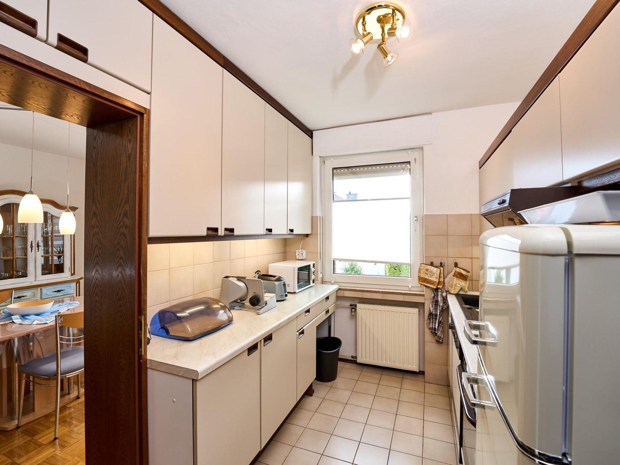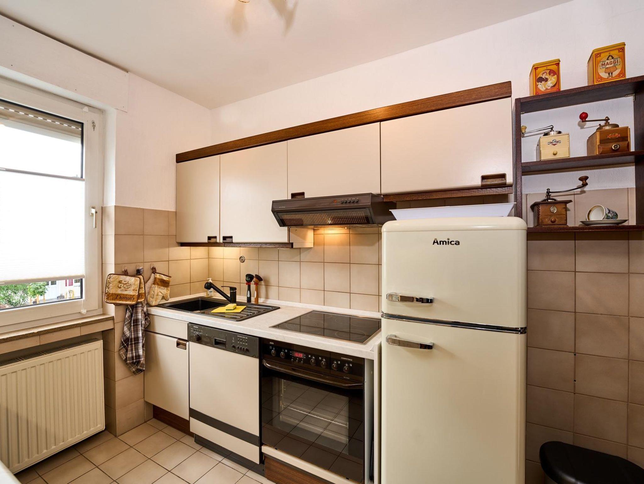 In der Küche stehen Ihnen ein großer Kühlschrank mit separatem Gefrierfach, ein Cerankochfeld und Backofen, eine Geschirrspülmaschine, eine Mikrowelle, Brotmaschine, Toaster, Wasserkocher, Handmixer, Eierkocher und eine Heißluftfritteuse zur Verfügung, sowie entsprechendes Geschirr.