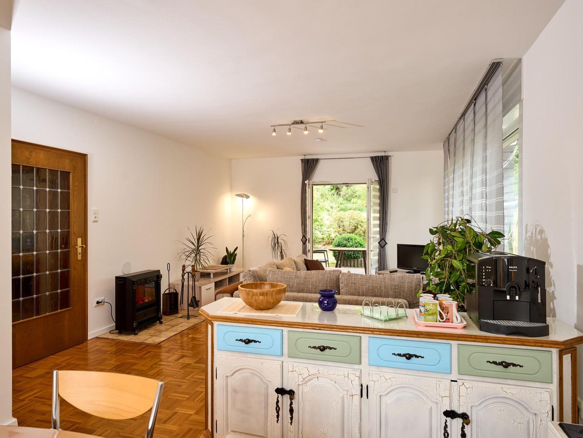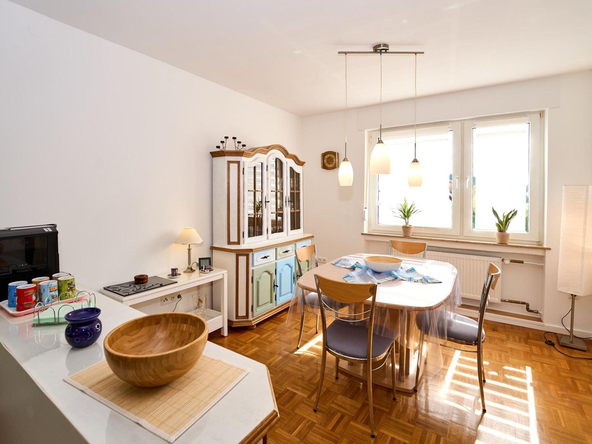 Am Esstisch finden 4 Personen gemütlich Platz. Außerdem steht Ihnen im Essbereich ein Kaffeeautomat zur Verfügung.