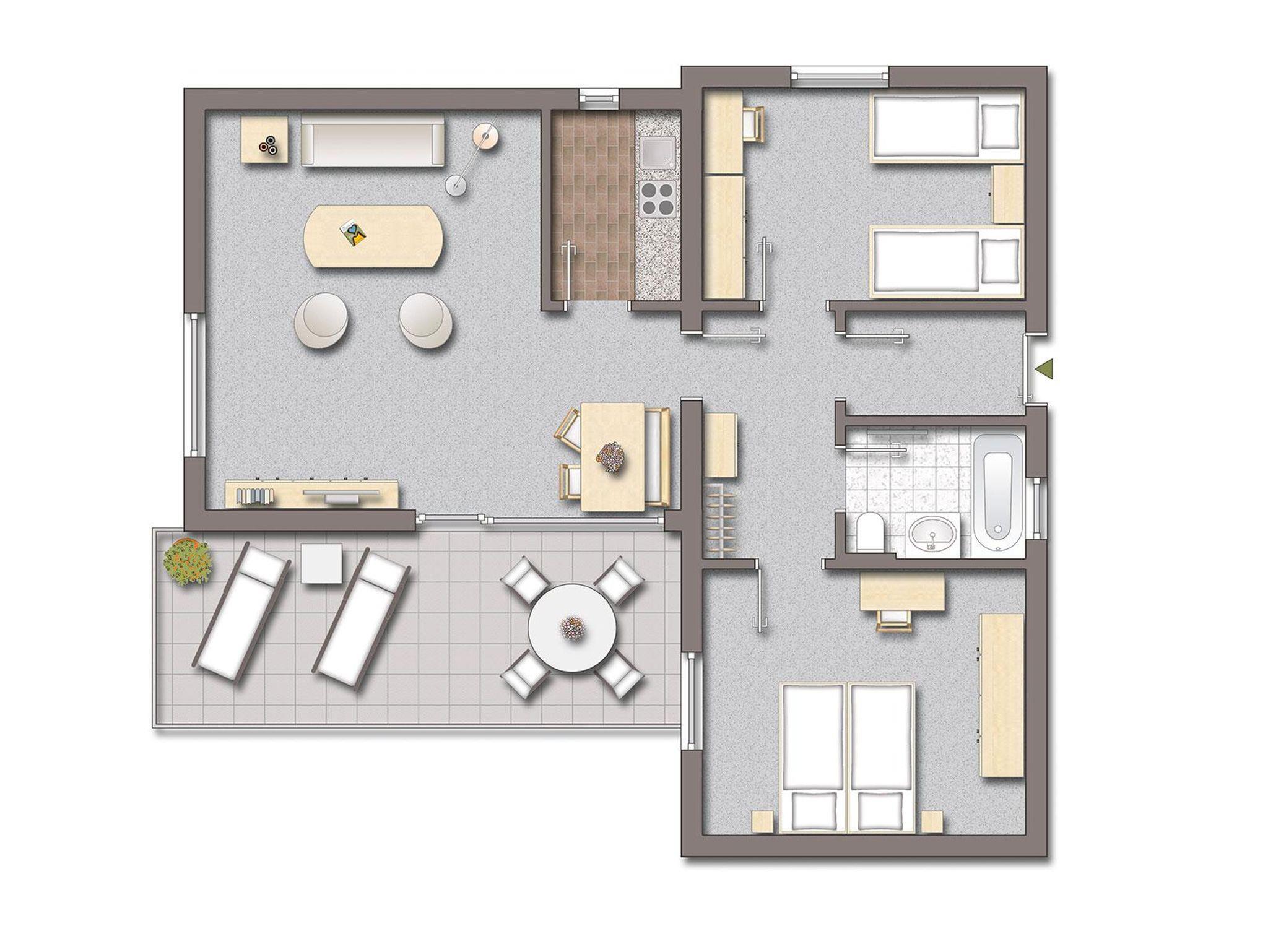 Gerade für Familien oder bei einem längeren Aufenthalt sind die geräumigen Ferienhäuser mit bis zu drei Schlafzimmern (max. 7 Pers.), Wohnzimmer, Küche, Balkon oder Terrasse eine ideale Wahl.