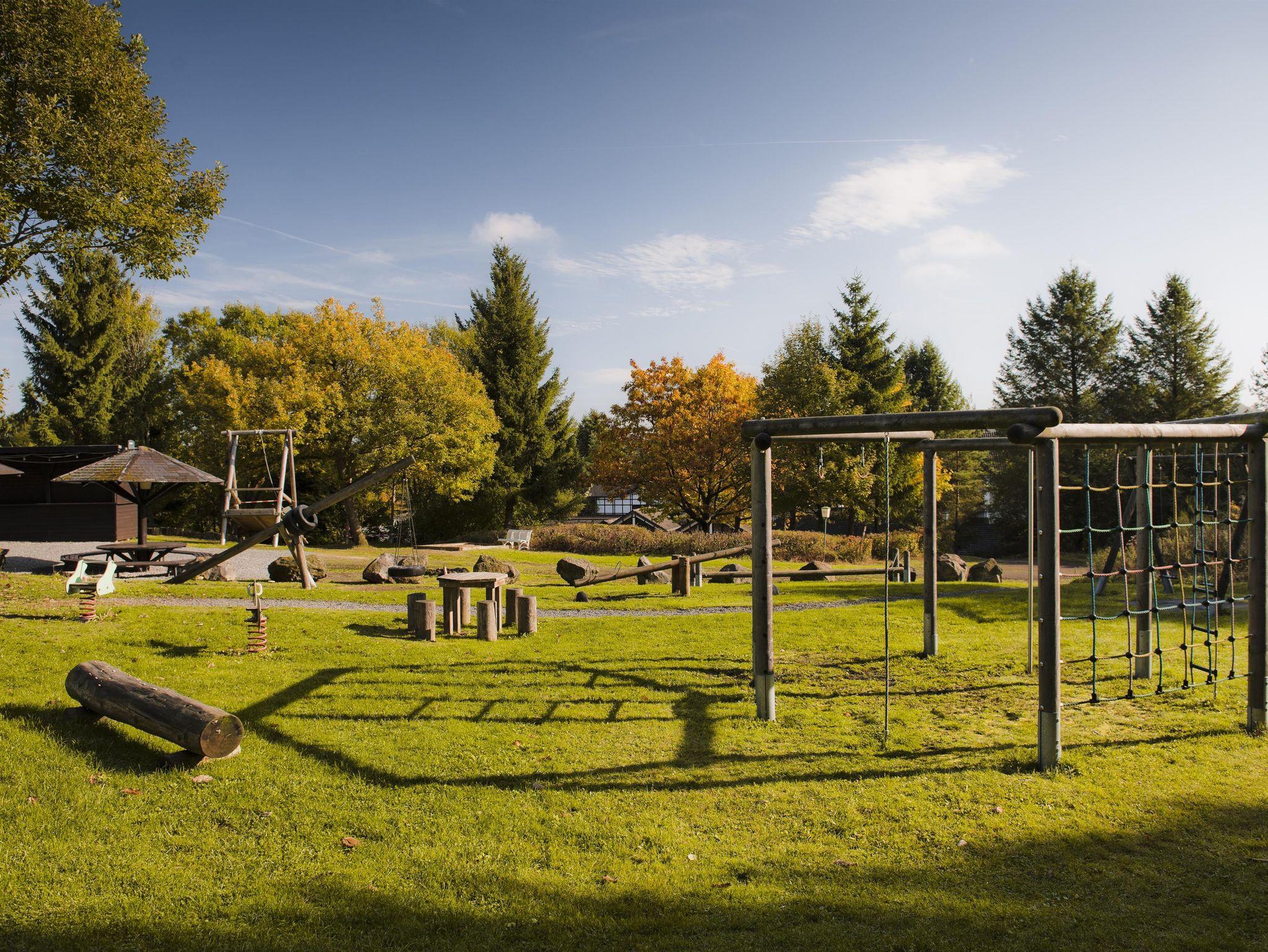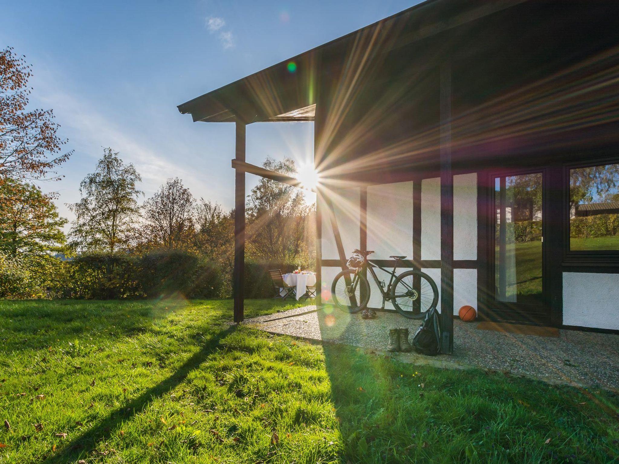 Ferienhaus mit 1 Schlafzimmer (Doppelbett), 1 Schlafzimmer (2 Einzelbetten), 1 Wohnzimmer, 1 Essecke, 1 Küche komplett ausgestattet mit Töpfen, Geschirr, Besteck, Mikrowelle, Kaffeemaschine, Spülmaschine, Elektroherd und Kühlschrank) mit Terrasse. Nutzung Schwimmbad und Fitnessstudio kostenfrei, Sauna teilweise gegen Gebühr. (Das Spa Grafenwald befindet sich im Haupthaus des Hotels.)