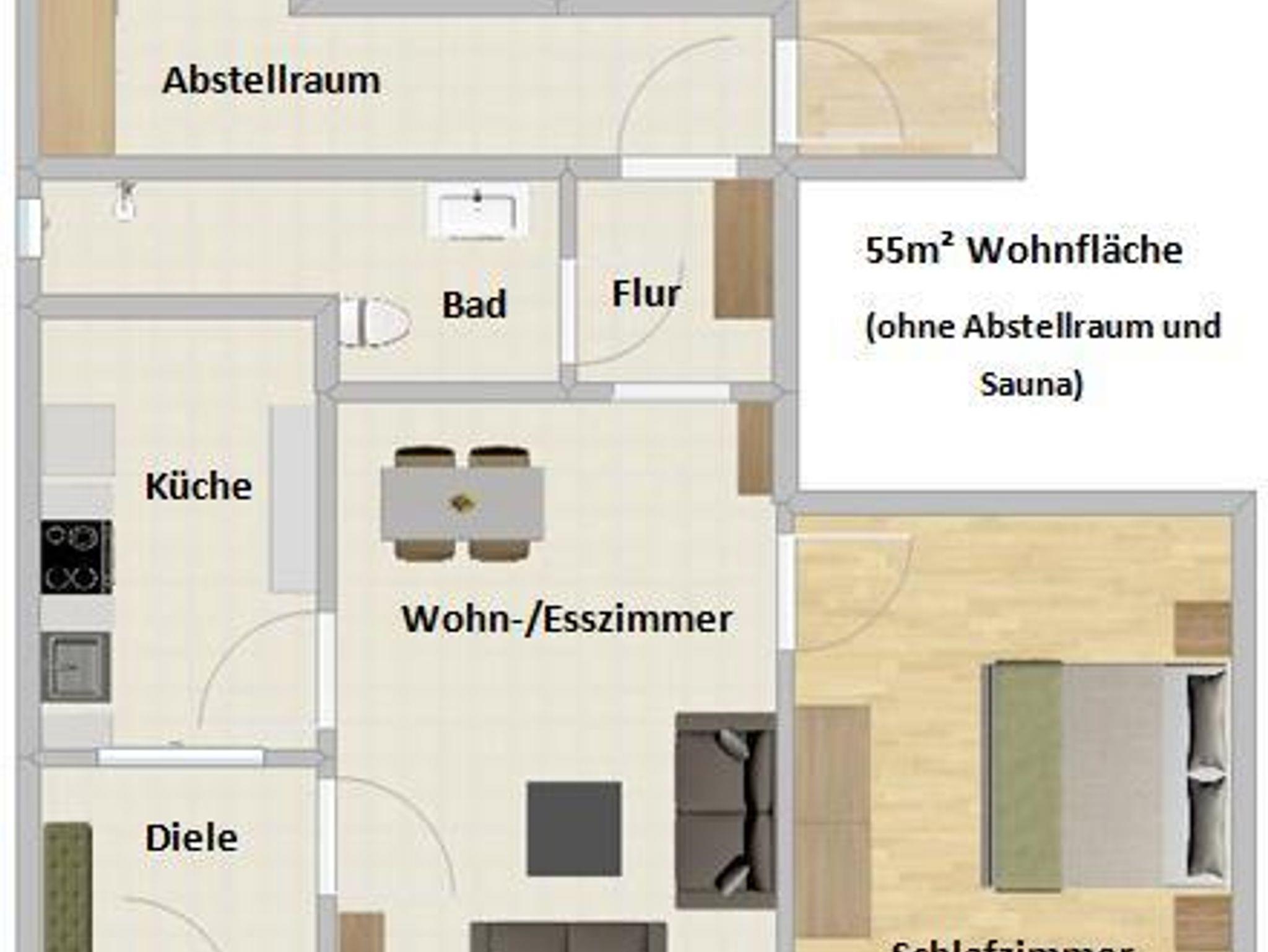 Zusätzlich zur Wohnung gibt es einen Abstellraum, der viele nützliche Geräte für Sie bereit hält, wie zum Beispiel eine Waschmaschine, ein Bügeleisen, sowie ein Bügelbrett.