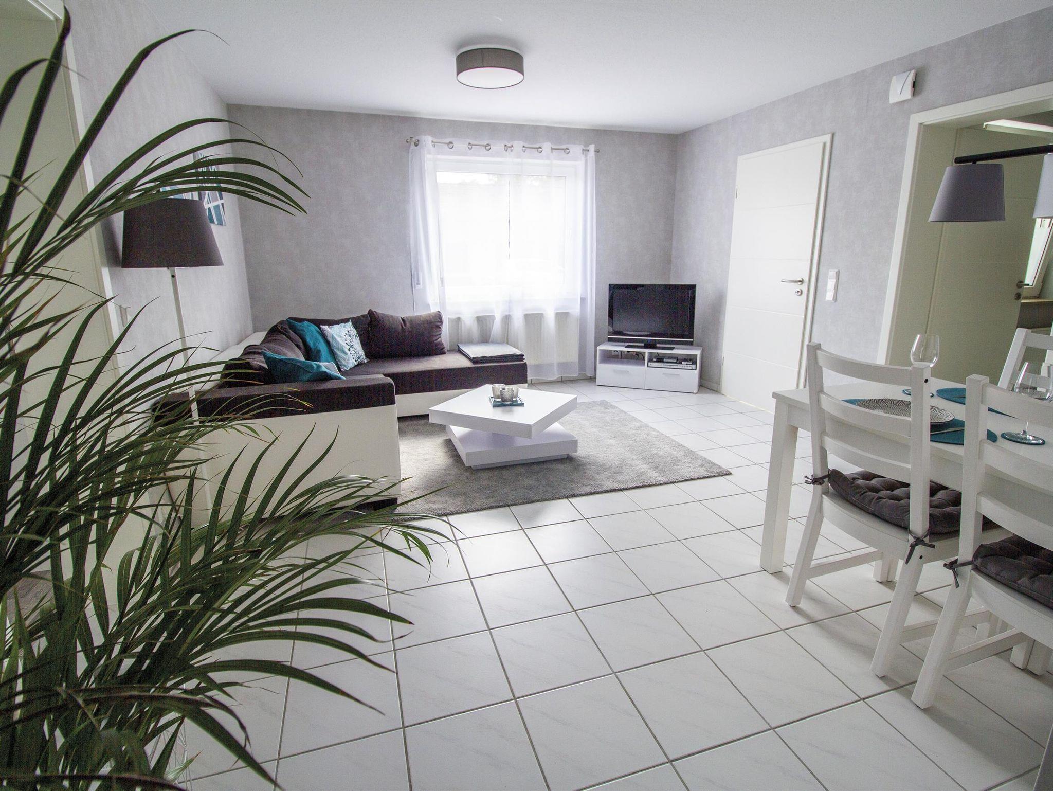 Ihr Urlaubsdomizil hat einen hellen Eingangsbereich, ein gemütliches Wohnzimmer mit Couch und Essecke, eine separate, voll ausgestattete Küche, ein großzügiges Schlafzimmer mit Doppelbett und einem neuen Badezimmer mit Dusche.