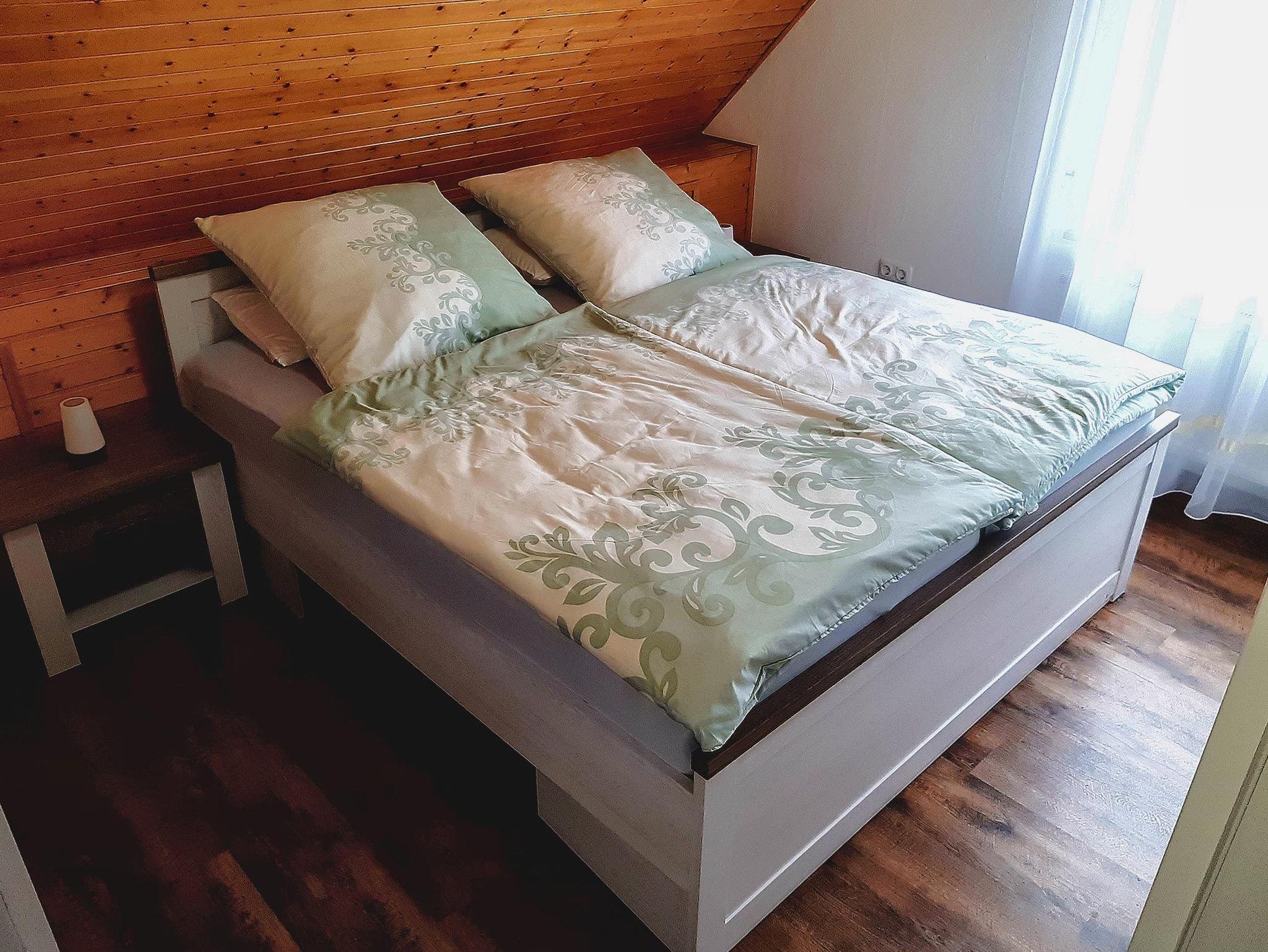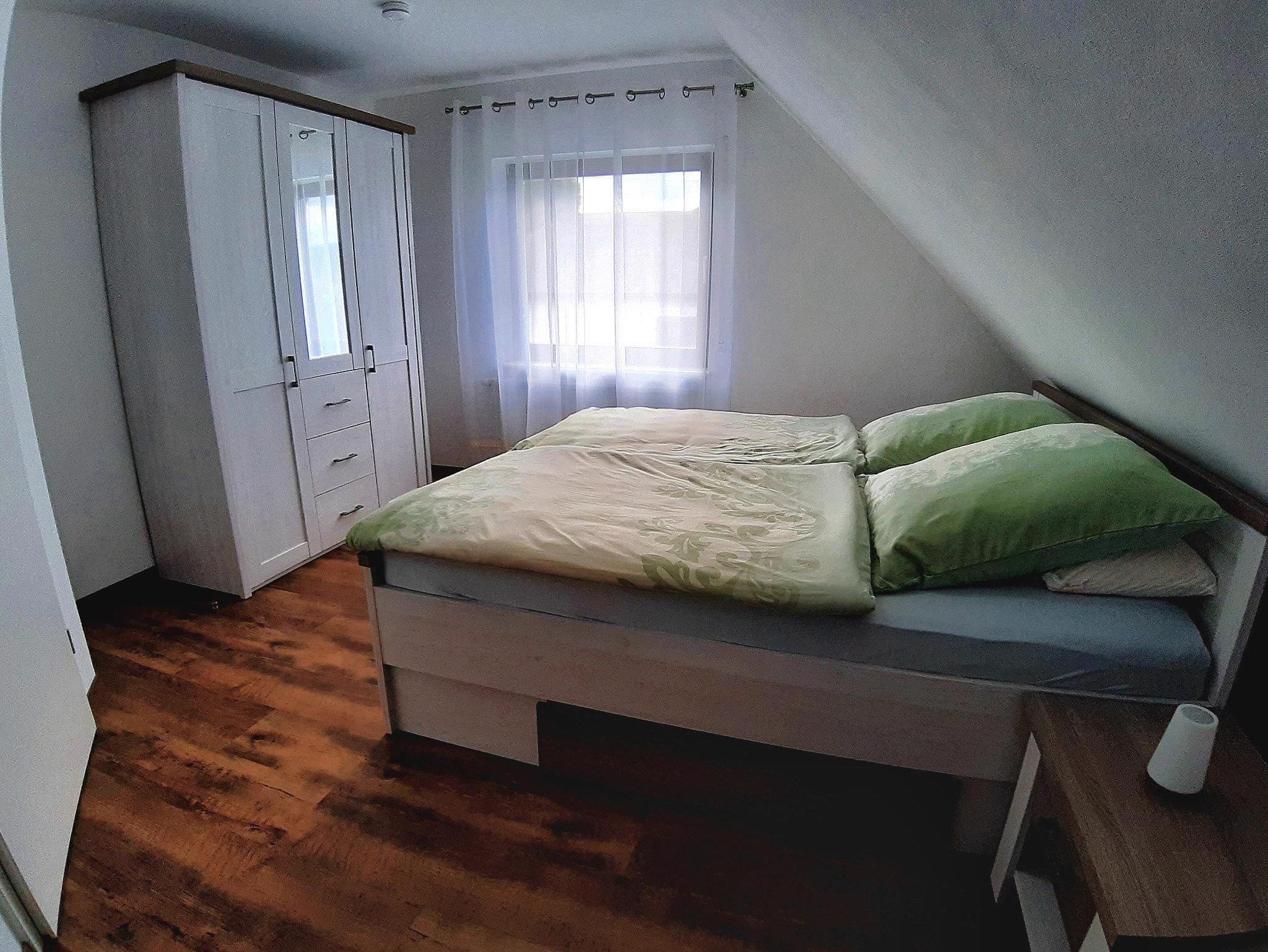 Schlafzimmer-2 ist mit einem Doppelbett, 2 Nachttischen und einem Schrank ausgestattet. Hochwertige Matratzen bieten angenehmen Komfort.