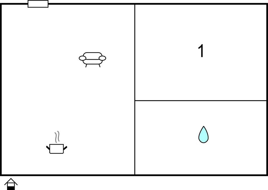 Opholdsstue/køkken - 1 Soveplads. (Sofa, madras eller lignende).