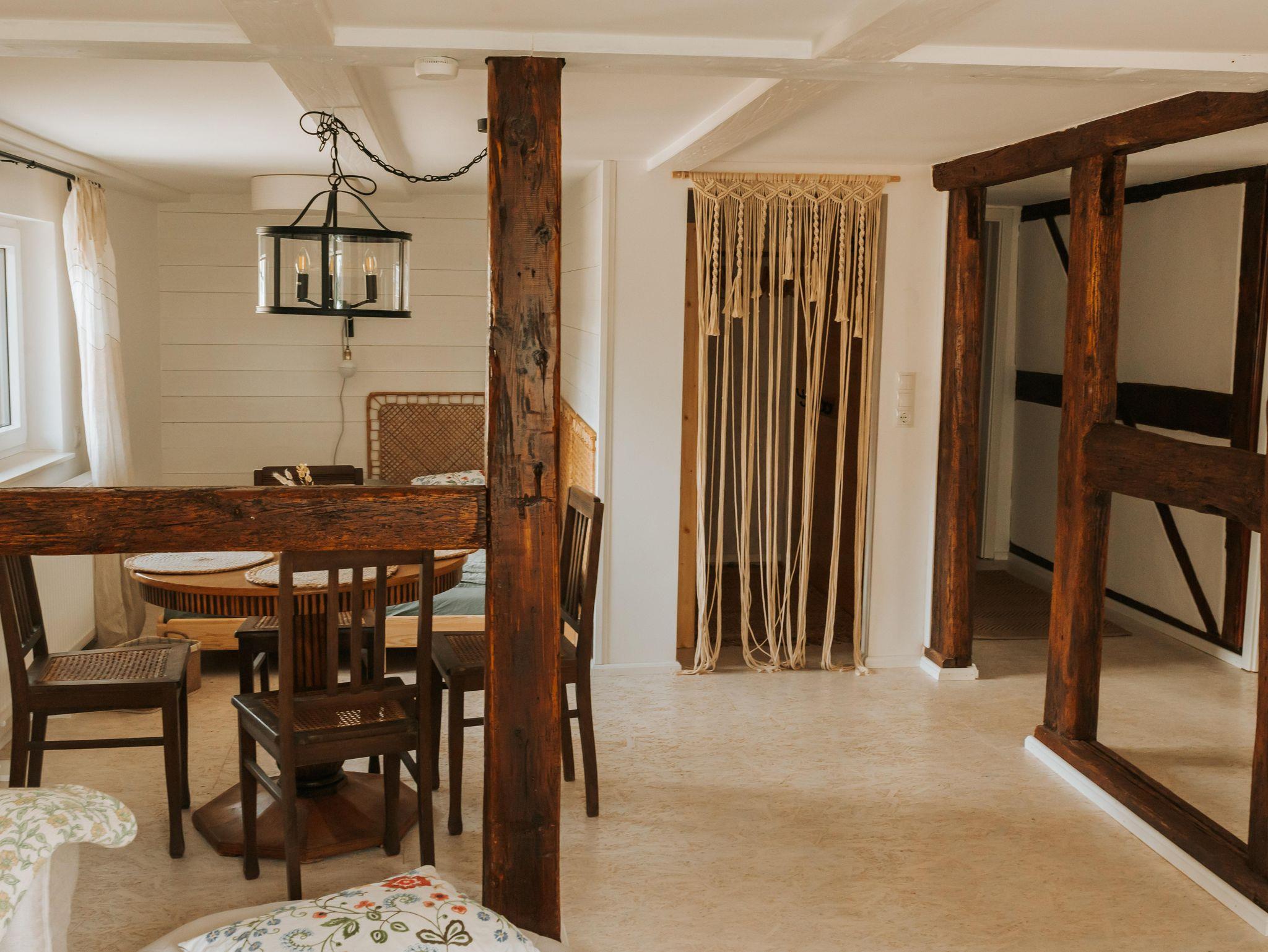 Unsere Ferienwohnung, die im Juli dieses Jahres fertiggestellt wurde, kombiniert moderne Annehmlichkeiten mit charmanten alten Fachwerkelementen. Sie bietet Platz für bis zu 4 Personen und ein zusätzliches Babybett.