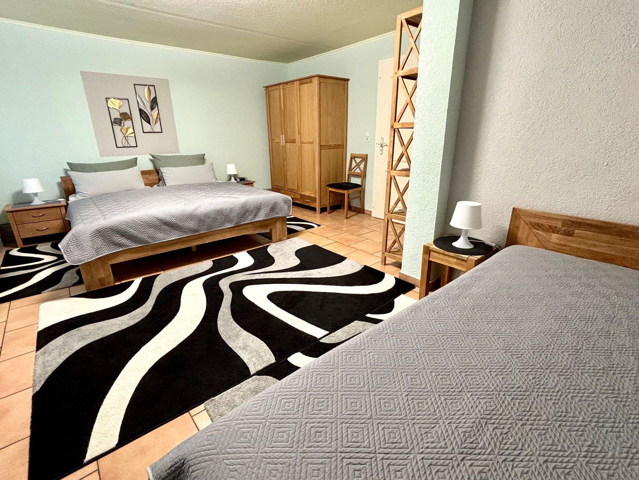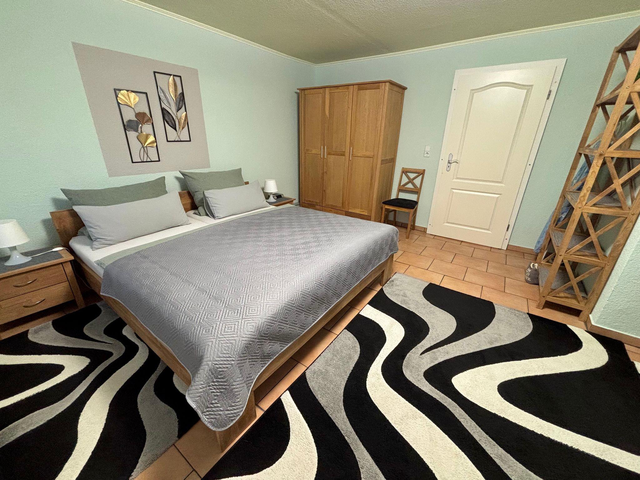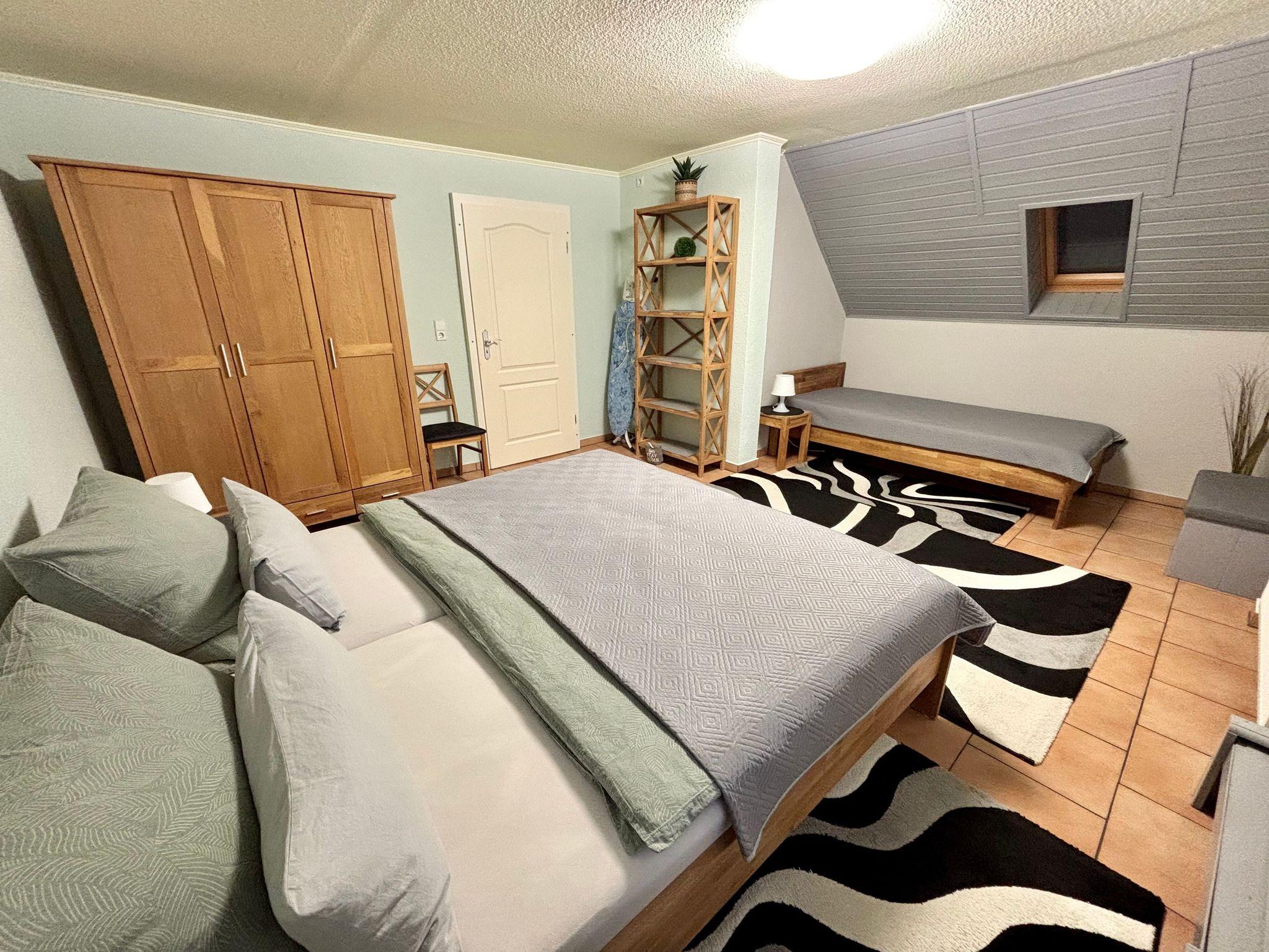 Die Ferienwohnung „Franz“ ist ca. 57 m² groß und befindet sich im 2. Obergeschoß des 3-Familienhauses. Die Wohnküche ist ca. 15 m² groß und beinhaltet eine voll ausgestattete Küche. In ihr befindet sich ebenfalls ein gemütlicher Essplatz sowie ein SAT-TV und ein CD-Player. Im großzügig gestalteten Schlafzimmer (ca. 29 m²) finden Sie ein Doppelbett, ein Einzelbett und einen 3-türigen Kleiderschrank.