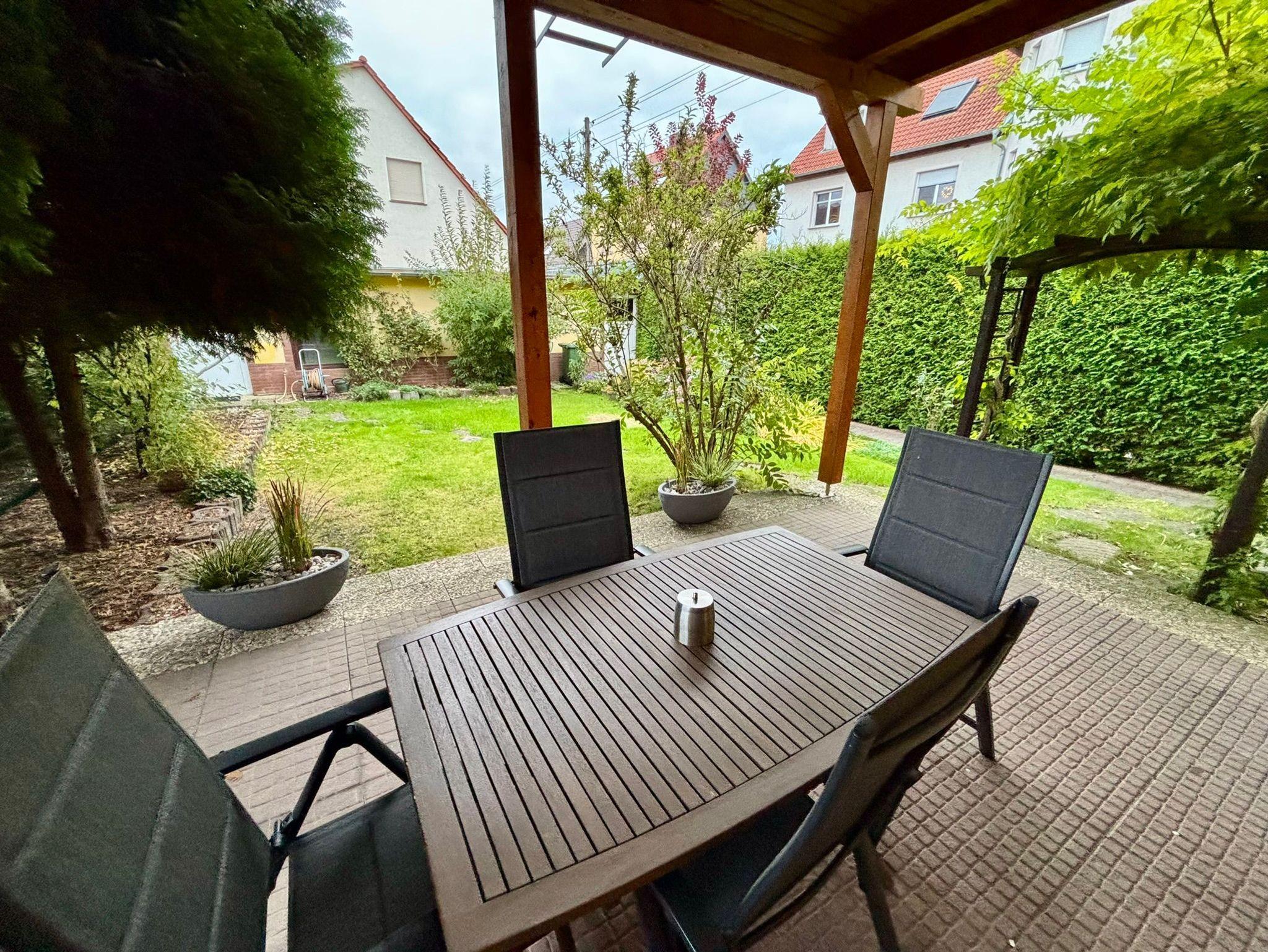 Die Außenanlage ist gepflegt und bietet mit überdachter Terrasse, privatem Garten mit Blumenbeeten und einem Innenhof viele Möglichkeiten zum Verweilen im Freien. Fahrräder können sicher im abschließbaren Innenhof untergestellt werden.