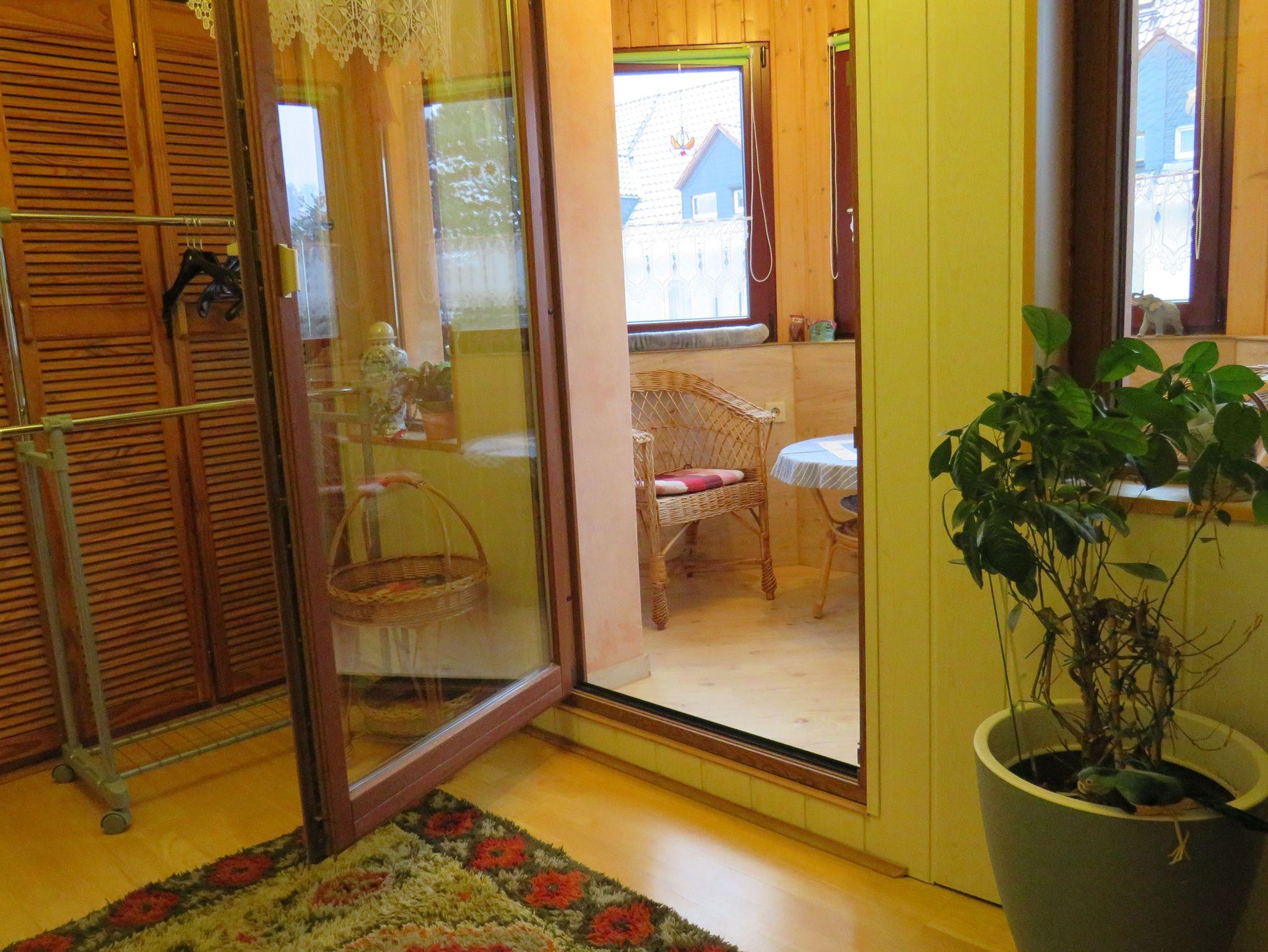Sie hat einen separaten Eingang über eine Außentreppe mit einem kleinen Balkon, auf dem es sich 2 Personen gemütlich machen können.