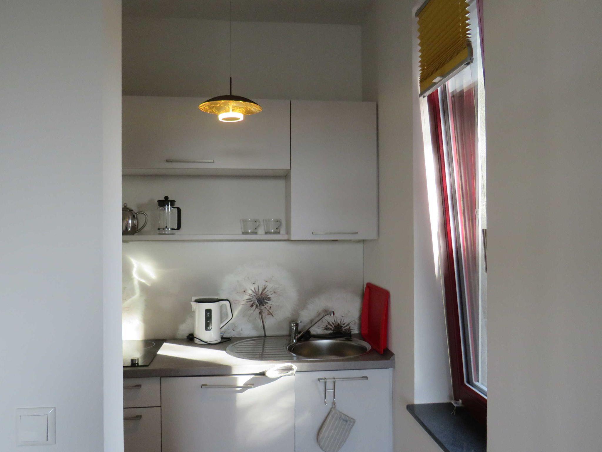 In der Küchenzeile können Sie sich gern an Kaffee, Tee und Wasser für die ersten drei Tage bedienen.