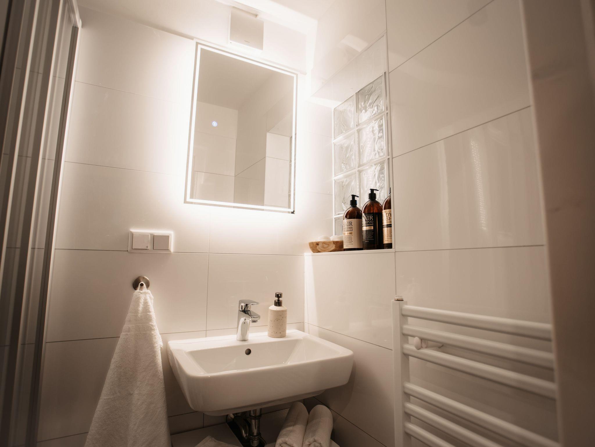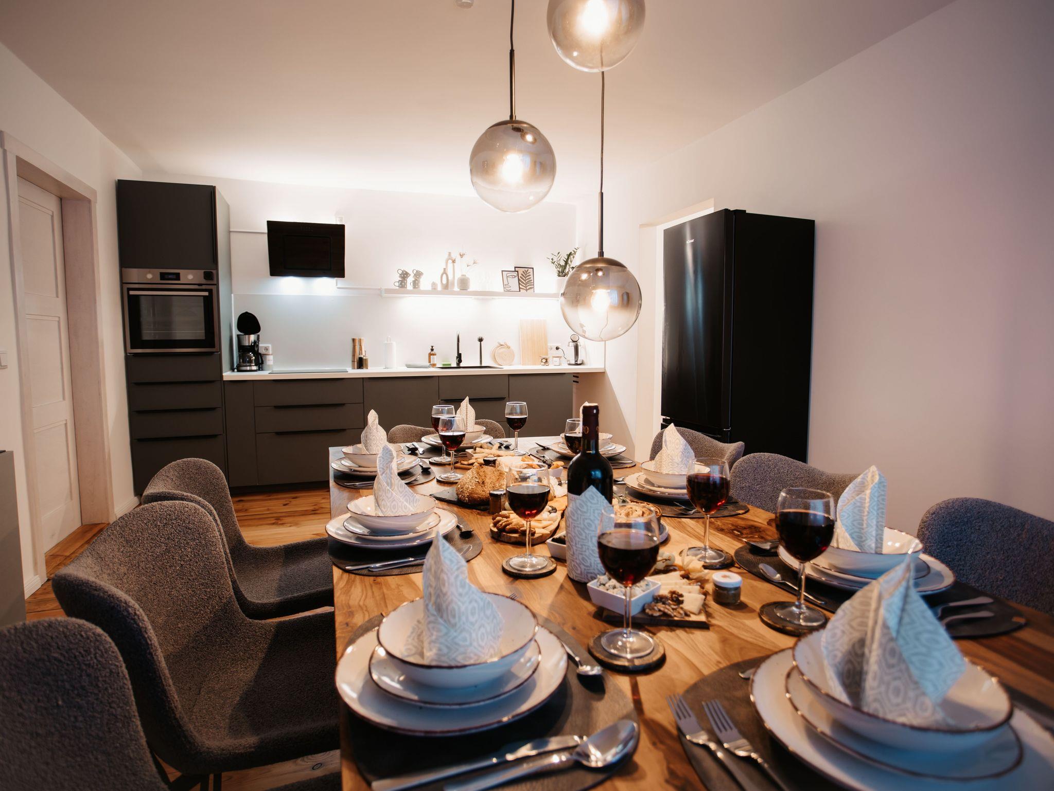 Das Apartment ist mit hochwertigen Möbeln designed, mit einem extra Saunazimmer ausgestattet und erstreckt sich über 2 Etagen. Es stehen Ihnen zwei kostenlose Parkplätze, sowie kostenfreies WLAN zur Verfügung.