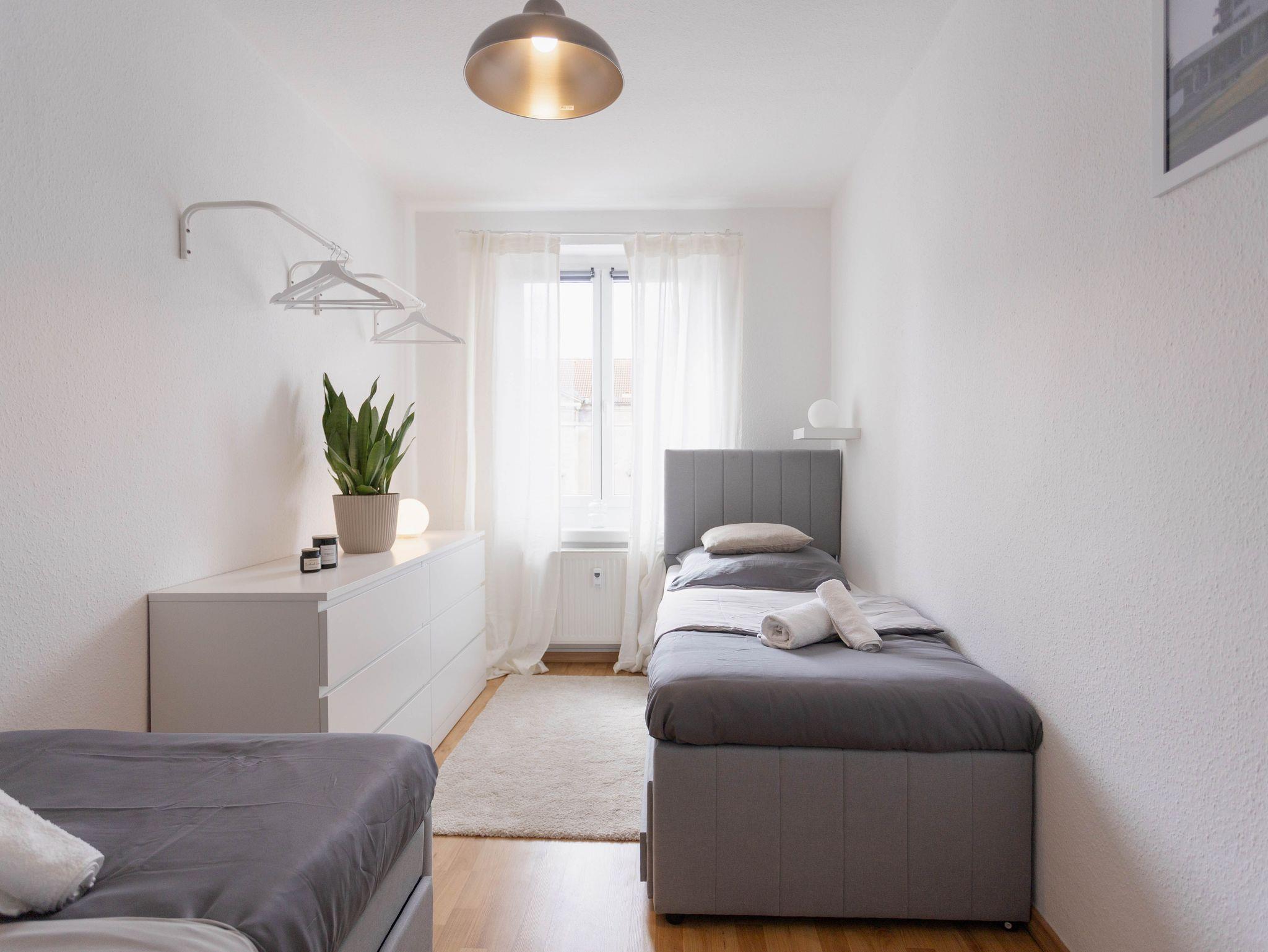 Die Ferienwohnung Fried ist eine zentral gelegene Unterkunft in Dessau, welche nur 1 Fußminute vom Bauhaus Museum, 3 min vom Shopping Center und 5 min vom Hauptbahnhof entfernt ist. Alle Sehenswürdigkeiten, sowie Restaurants, Cafés und Bars haben Sie direkt vor der Haustür. Das Apartment ist mit hochwertigen Möbeln ausgestattet und bietet Schlafplätze für 8 Personen. Es steht Ihnen ein kostenfreier Parkplatz, sowie kostenfreies WLAN zur Verfügung. Hausiere sind bei uns herzlich Willkommen!