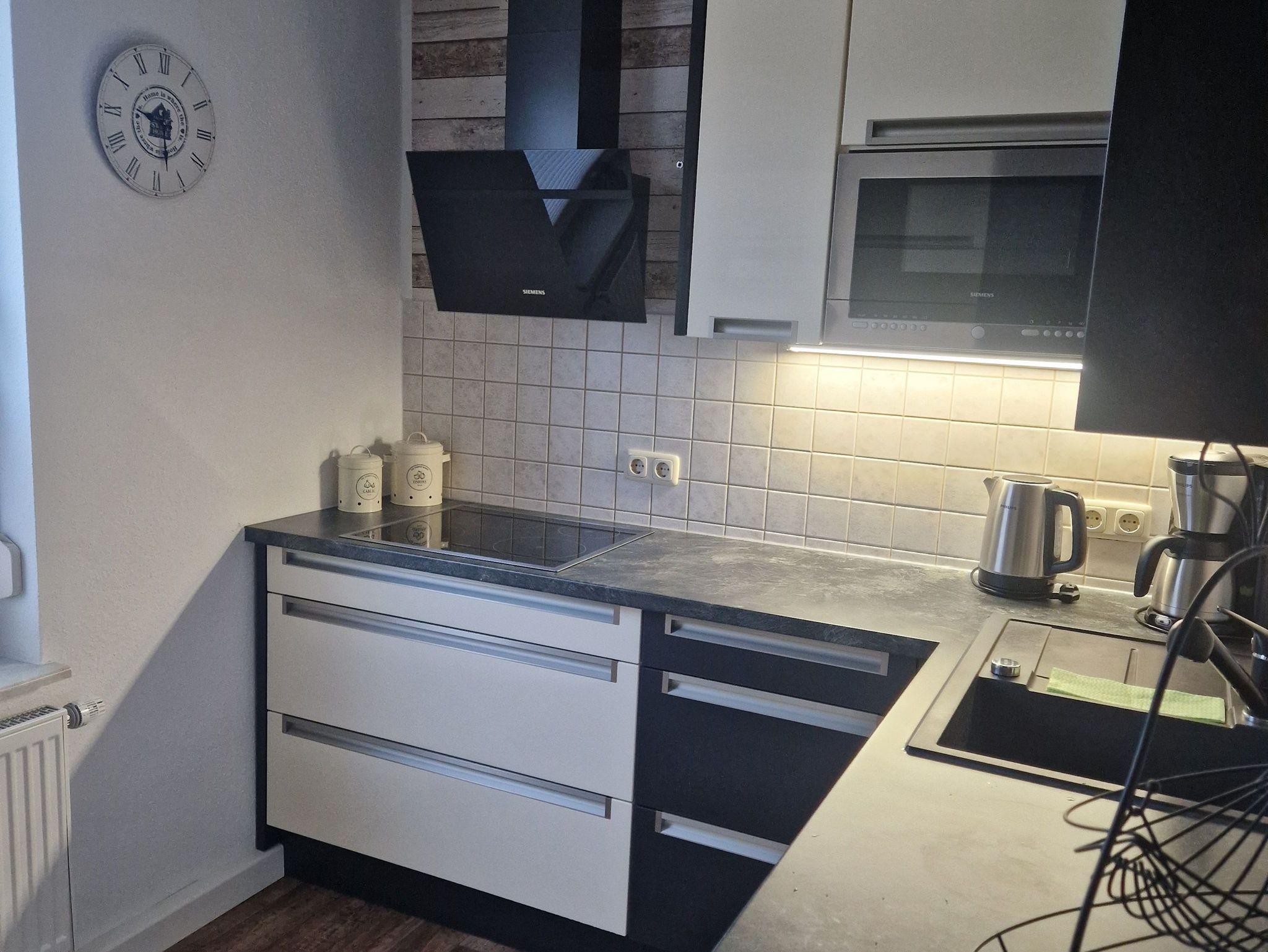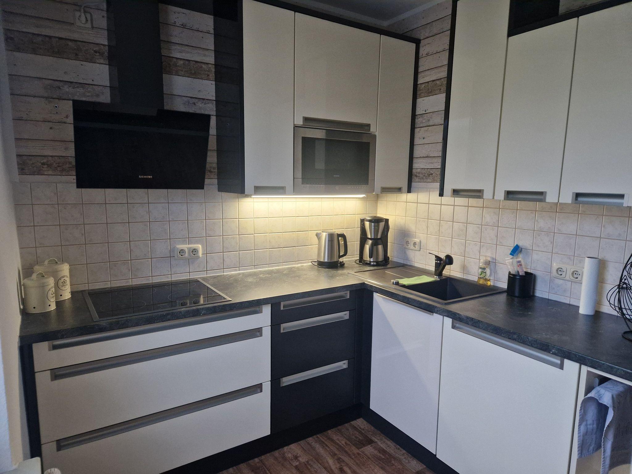 Unsere Ferienwohnung bietet euch eine Vollausgestatte Küche mit Geschirrspüler, Backofen, Induktionskochfeld.