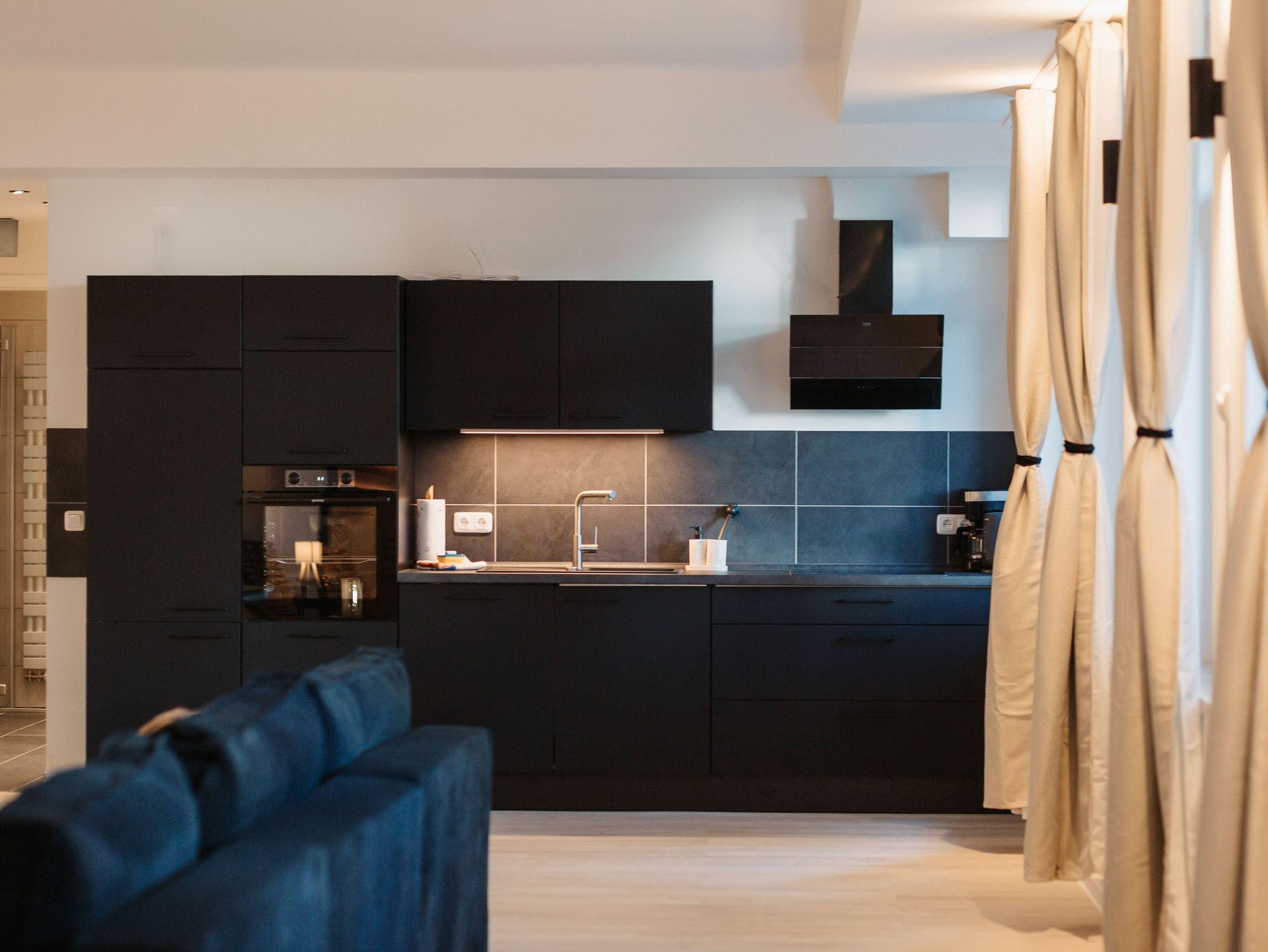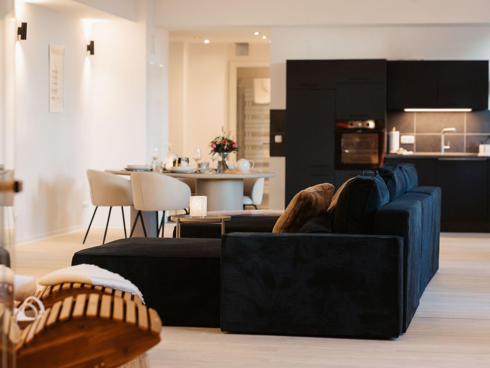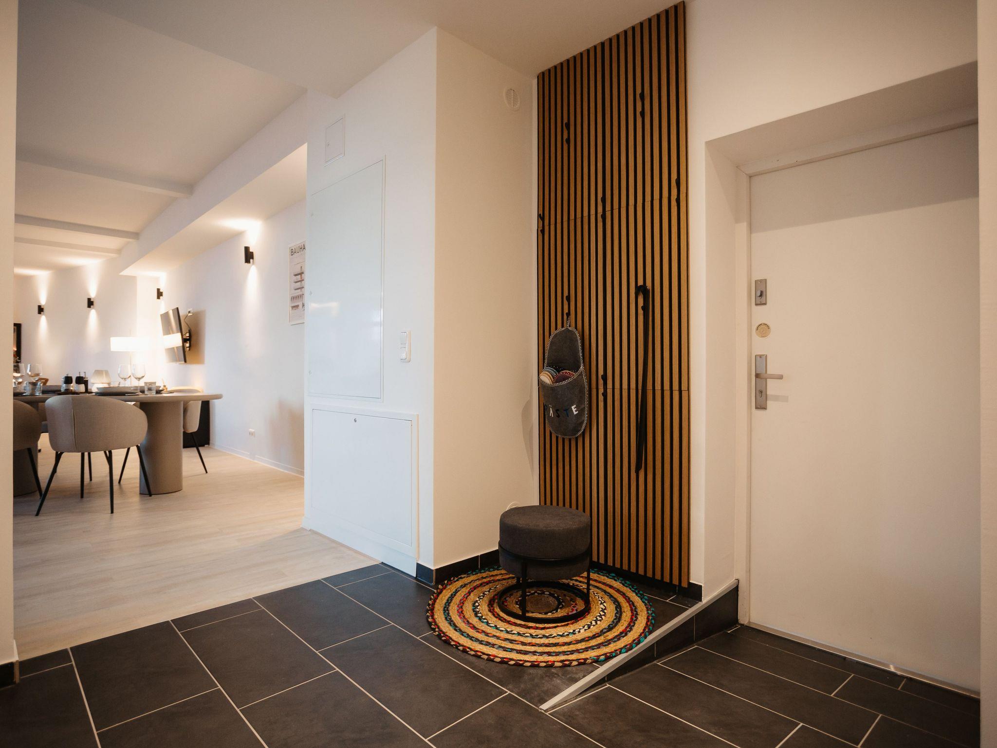 Das Apartment ist mit hochwertigen Möbeln designed, mit einer privaten Sauna und Garten ausgestattet und. Es steht Ihnen ein Parkplatz, sowie kostenfreies WLAN zur Verfügung.