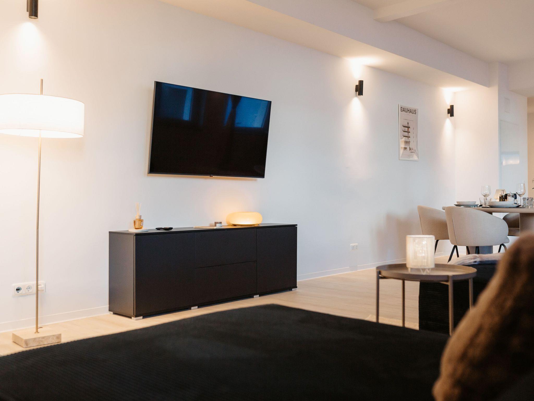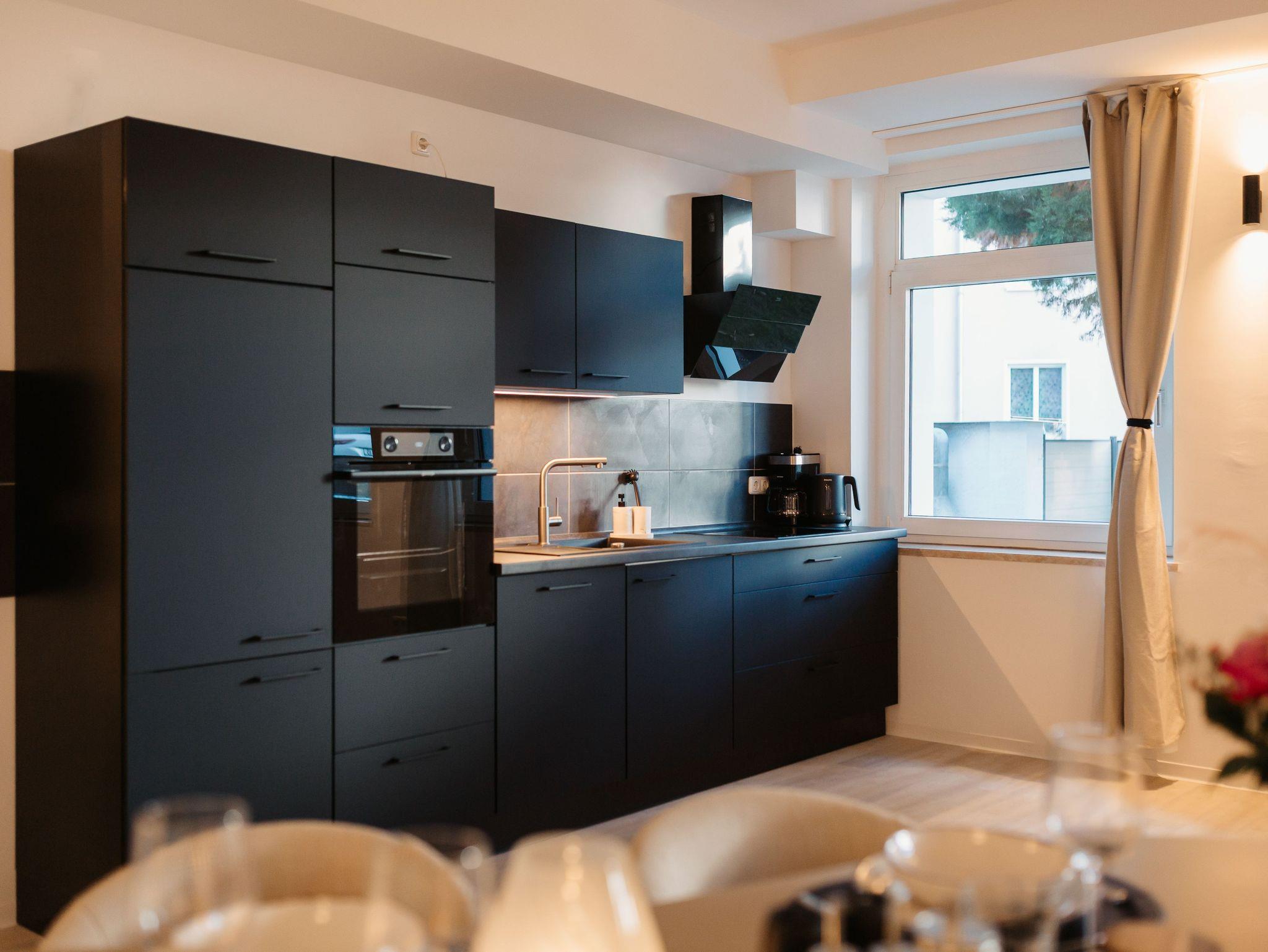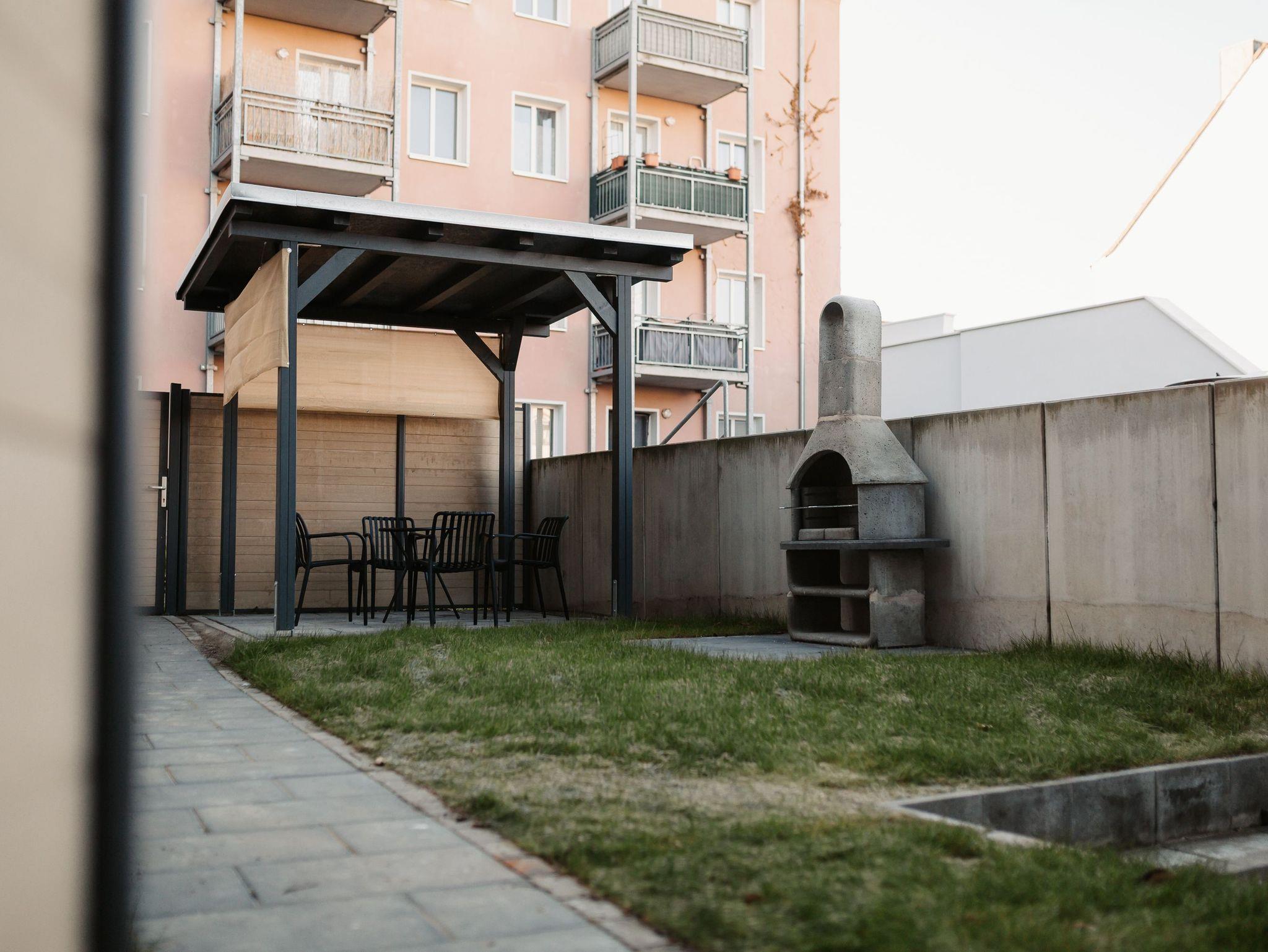 Das Apartment ist mit hochwertigen Möbeln designed, mit einer privaten Sauna und Garten ausgestattet und. Es steht Ihnen ein Parkplatz, sowie kostenfreies WLAN zur Verfügung.