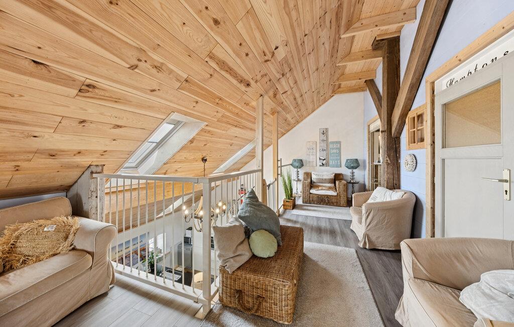 Velkommen til jeres stilfulde beachhouse, en kærligt indrettet ferielejlighed i en fredet gård fra det 19. århundrede. Beliggende direkte ved floden Leda og omgivet af vidstrakt natur venter jer her et sted fuld af ro, charme og afslapning. Den rummelige lejlighed ligger i den tidligere staldbygning på den historiske bondegård og er blevet nænsomt renoveret. Lyse farver, maritime elementer og kvalitetsmøbler skaber en hyggelig atmosfære, hvor I kan føle jer hjemme. Her oplever I Østfrisland fra sin smukkeste side. I det store, fuldt udstyrede køkken kan I lave mad efter lyst og behov, mens der i stuen venter brætspil og afslappede aftener i sofaen.