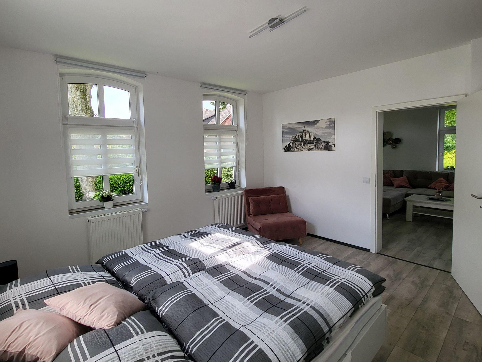 Ein Doppelzimmer und ein Wohnzimmer mit Schlafcouch (1-2 Pers.), komplett ausgestattete Küche mit Essbereich und Geschirrspüler, Dusche/WC, Waschmaschine.