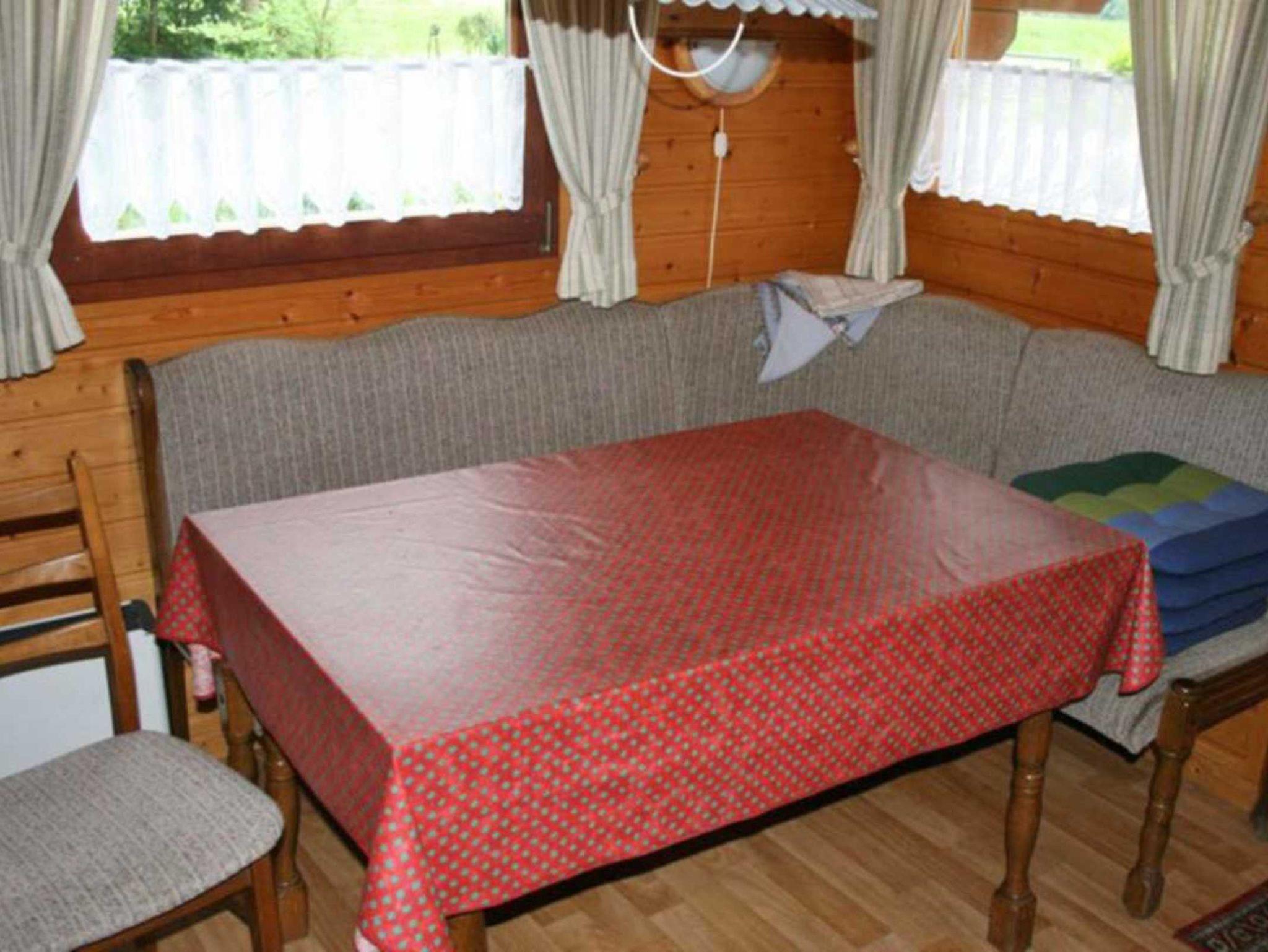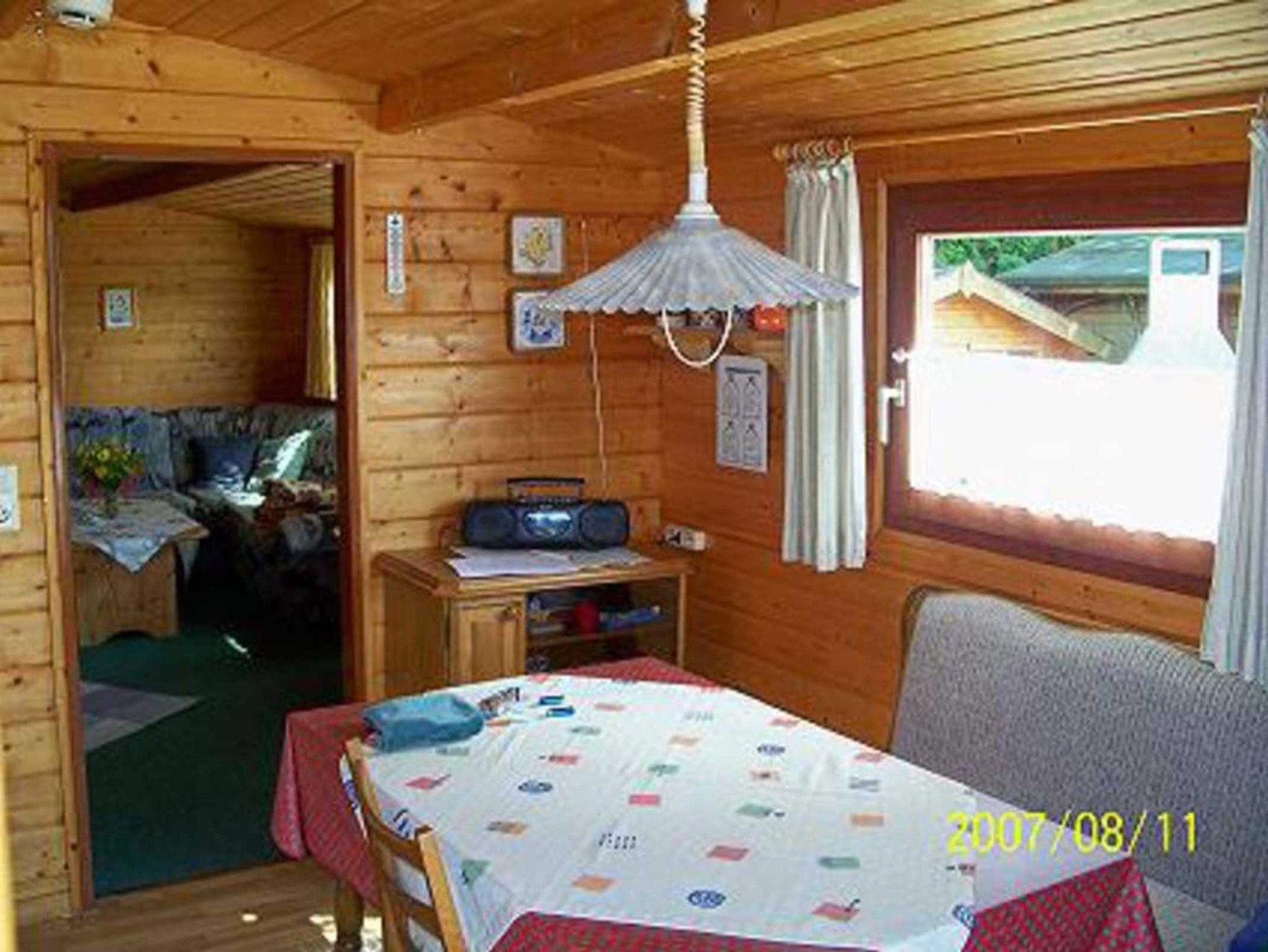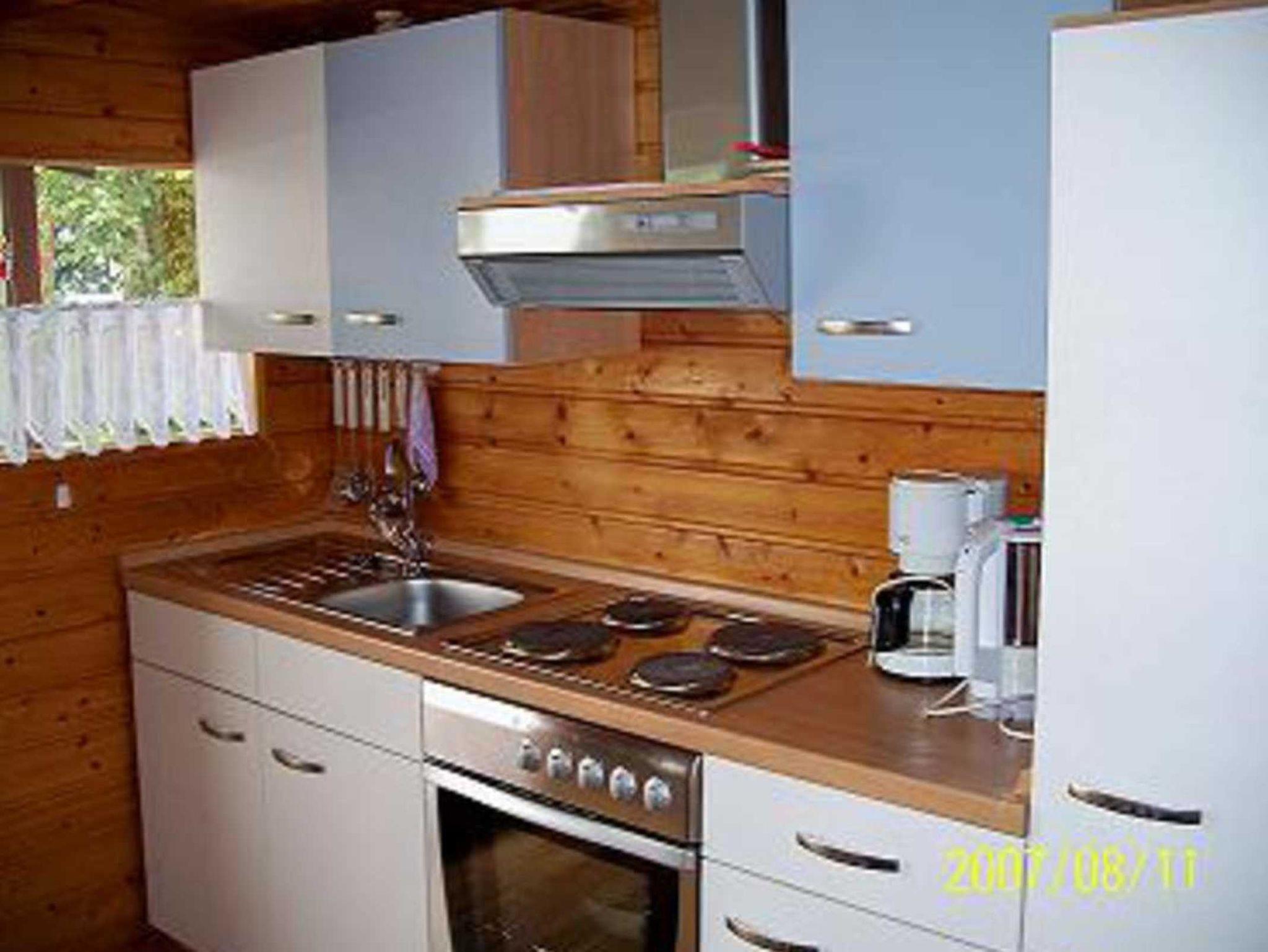 Das Holzhaus ist wie folgt ausgestattet: Küche, Wohnzimmer, zwei Schlafzimmer, TV, Dusche/WC, DVD-Player, Radio mit CD, Waschmaschine, Gefrierschrank.
