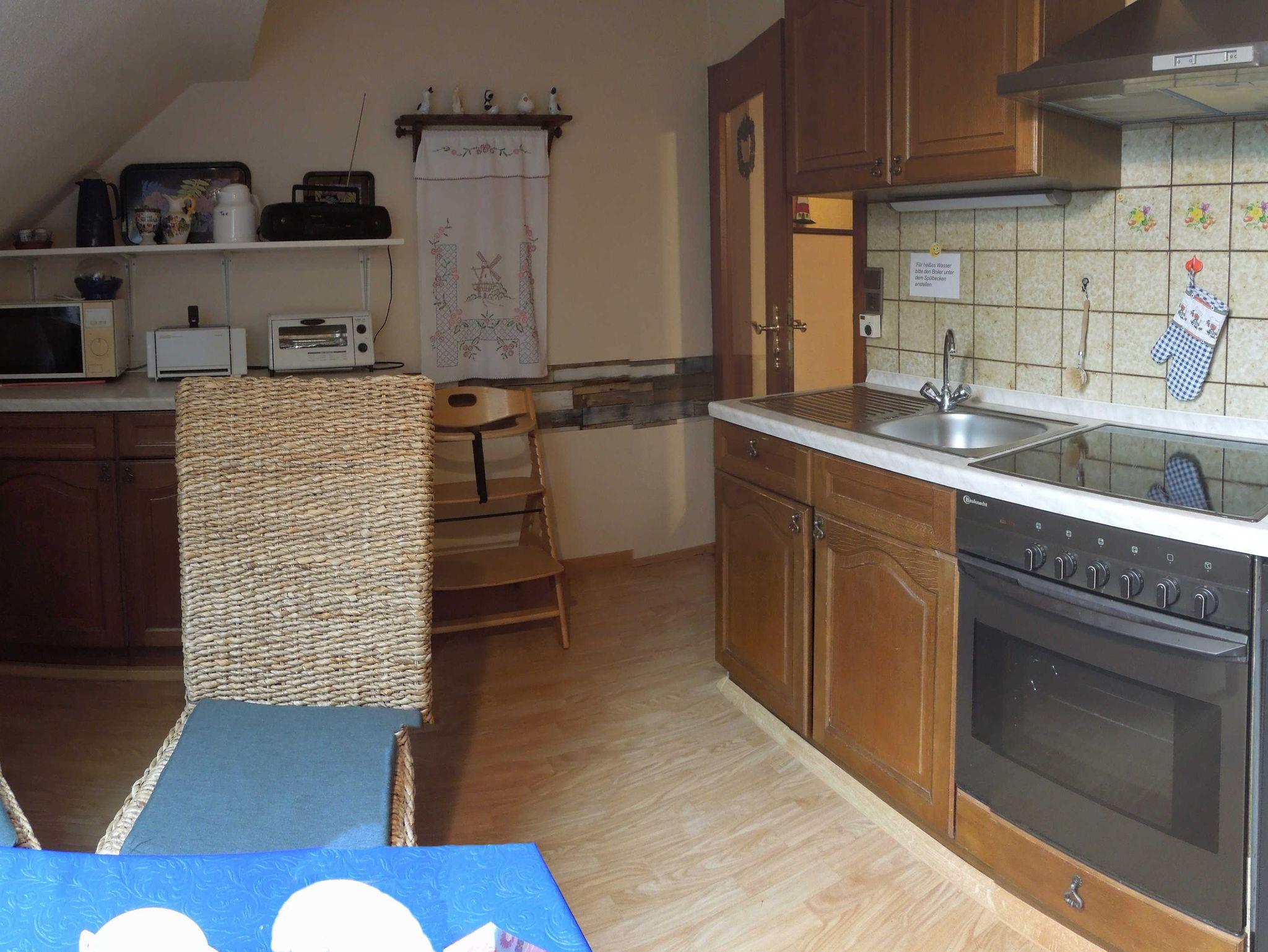 Vollständig eingerichtet Küche mit Essbereich, Mikrowelle,Backofen Spülmaschine, Kühlschrank mit Eisfach, Toaster, Kaffeemaschine usw.