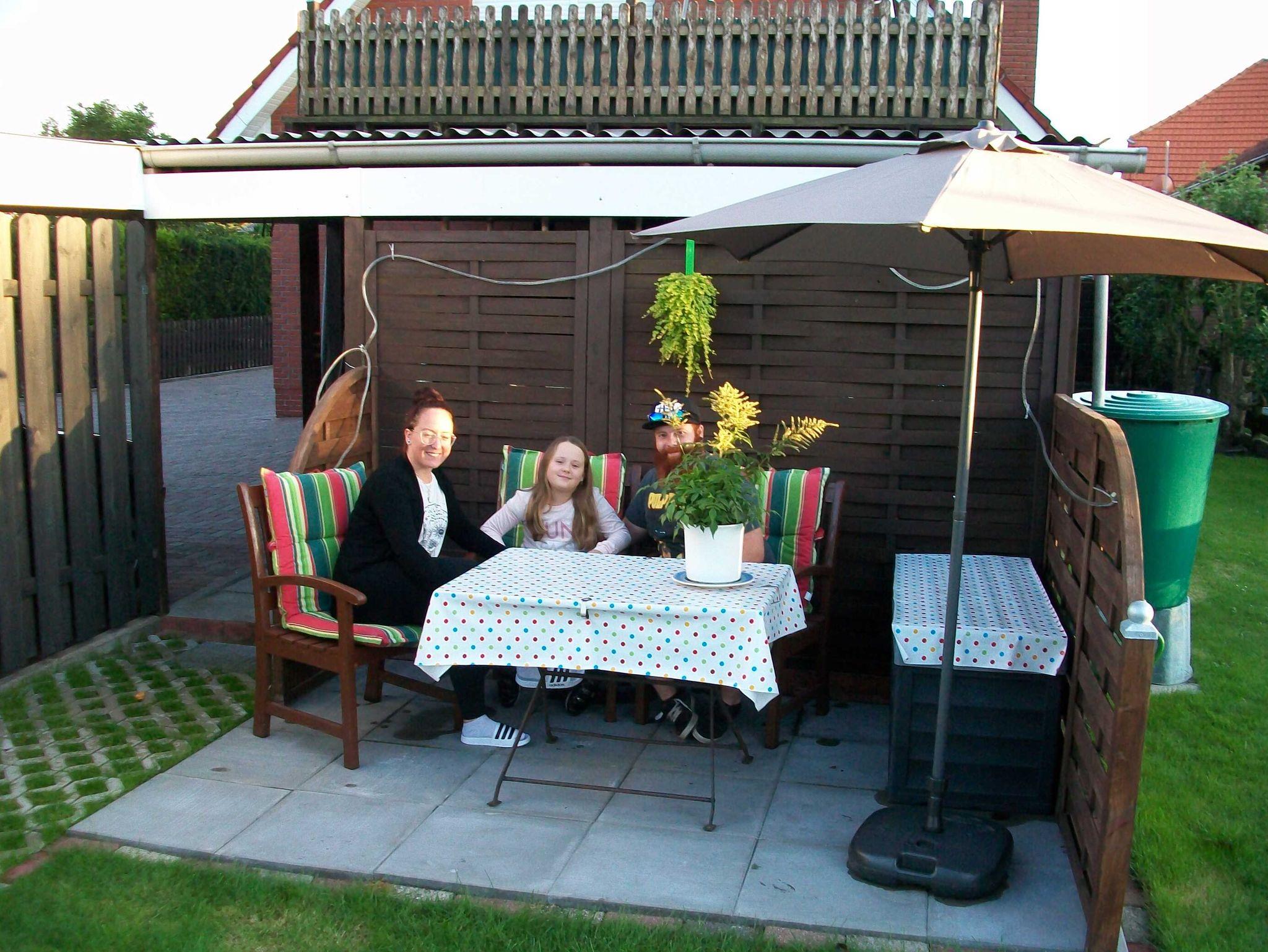 Separate Terrasse mit Sitzbereich und Grillmöglichkeit.