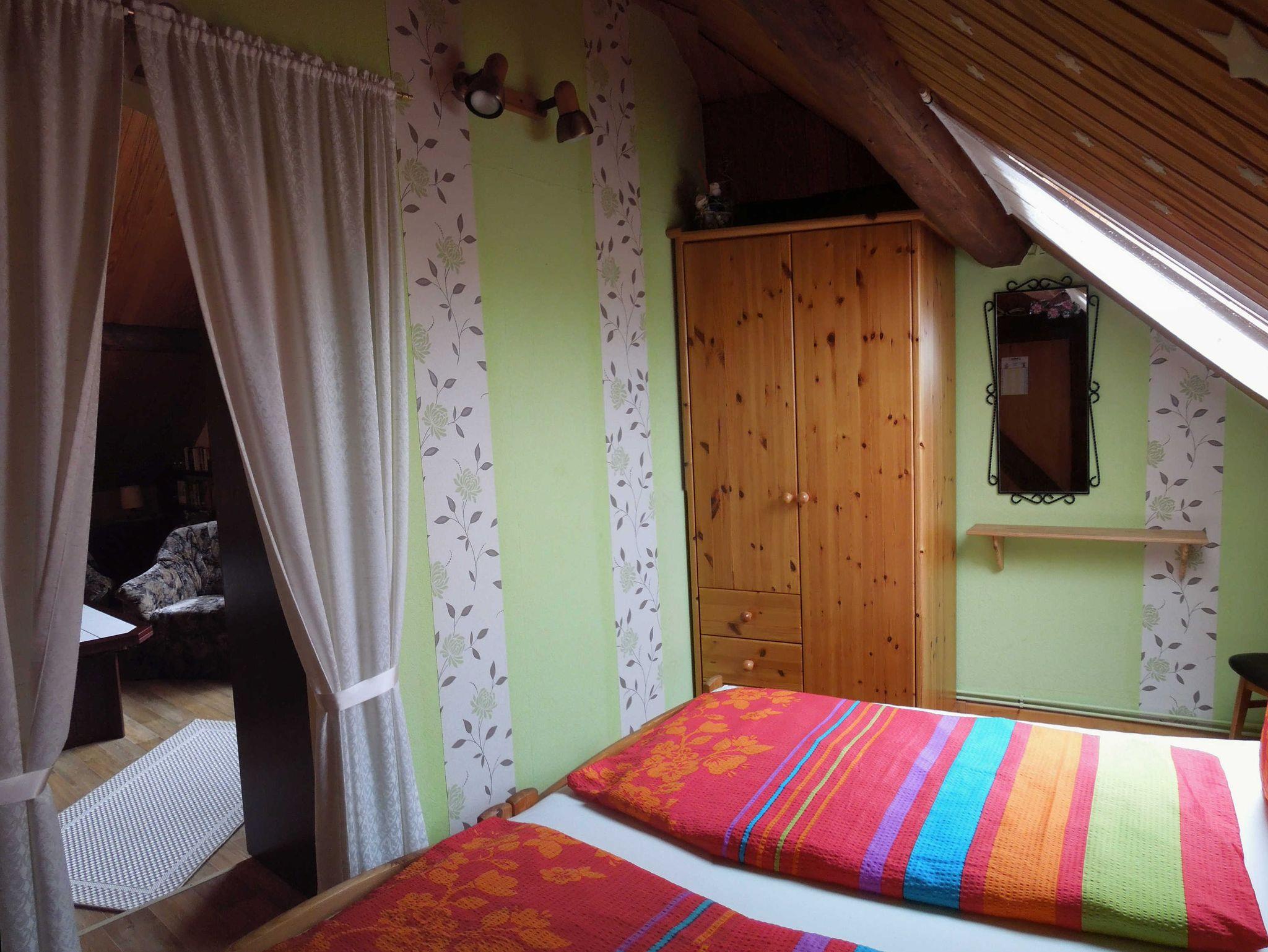 Gemütliche Oberwohnung mit seperatem Eingang. Wohnzimmer mit Schlafcouch und mit SAT-TV, DVD und Internet.