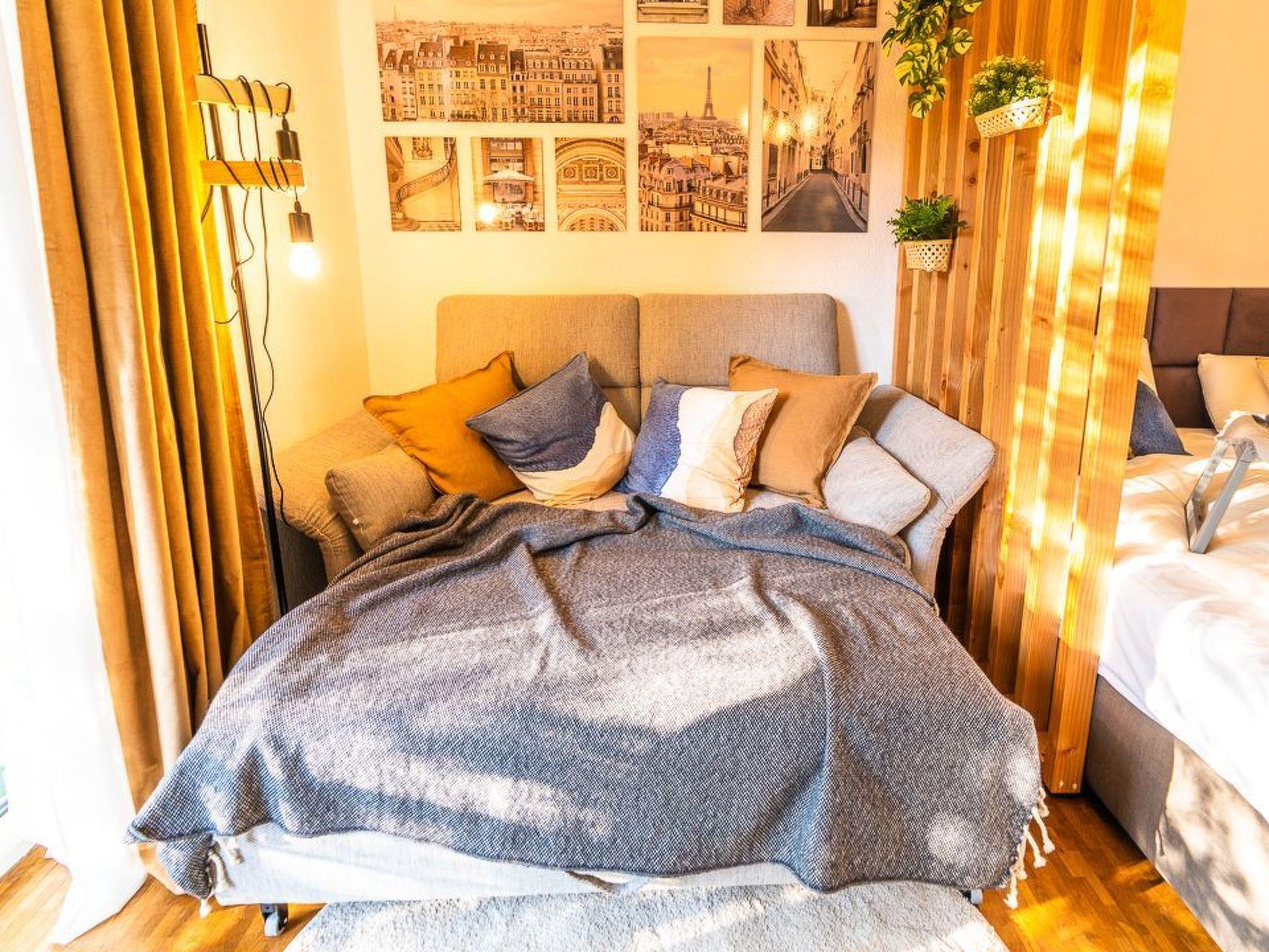 Discover our charming studio in Detmold, ideal for couples looking to explore the Teutoburg Forest. Our cosy studio offers the perfect blend of functionality and comfort, ideally located to enjoy both nature and the nearby town centre. Equipped with a high-quality queen-size bed and an additional sofa bed, we offer you not only a restful night's sleep, but also a cosy place to relax.