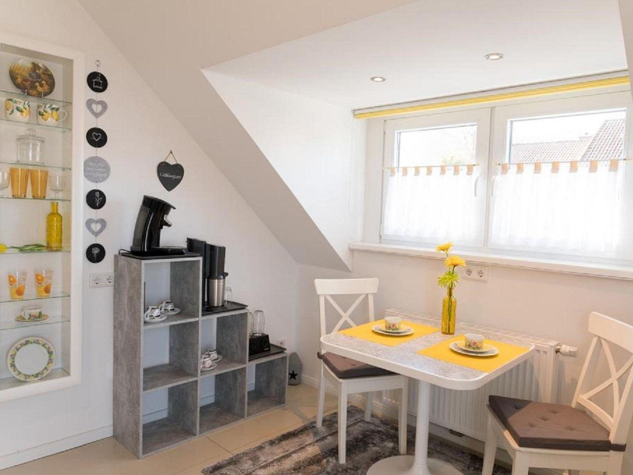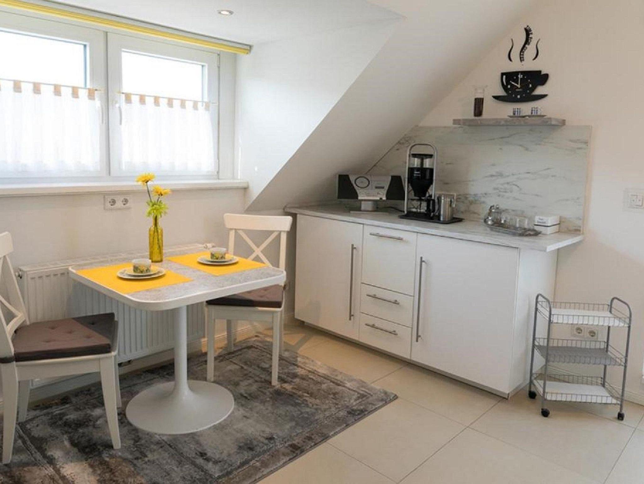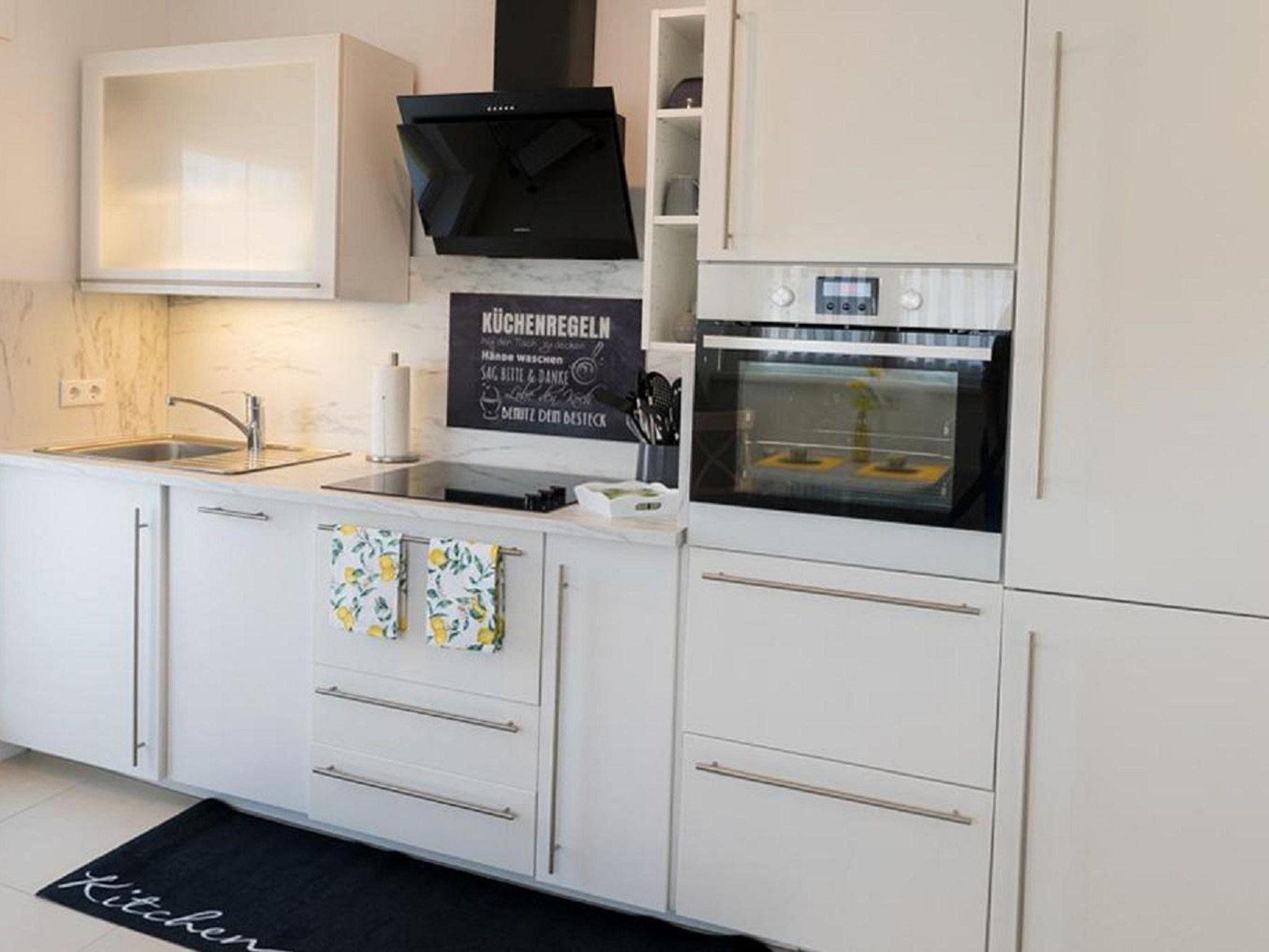 Die gut ausgestattete Küche bietet eine Kaffeemaschine, Tee-Bar, Sodastream, Backofen, Mikrowelle, Herd, Spülmaschine und Kühl-Gefrierkombination. Ein Fensterplatz lädt zum Frühstücken ein. Eine gemütliche Kuschelecke mit Sitzgelegenheit und Futon-Bett für eine zusätzliche Schlafmöglichkeit befindet sich im Eingangsbereich.