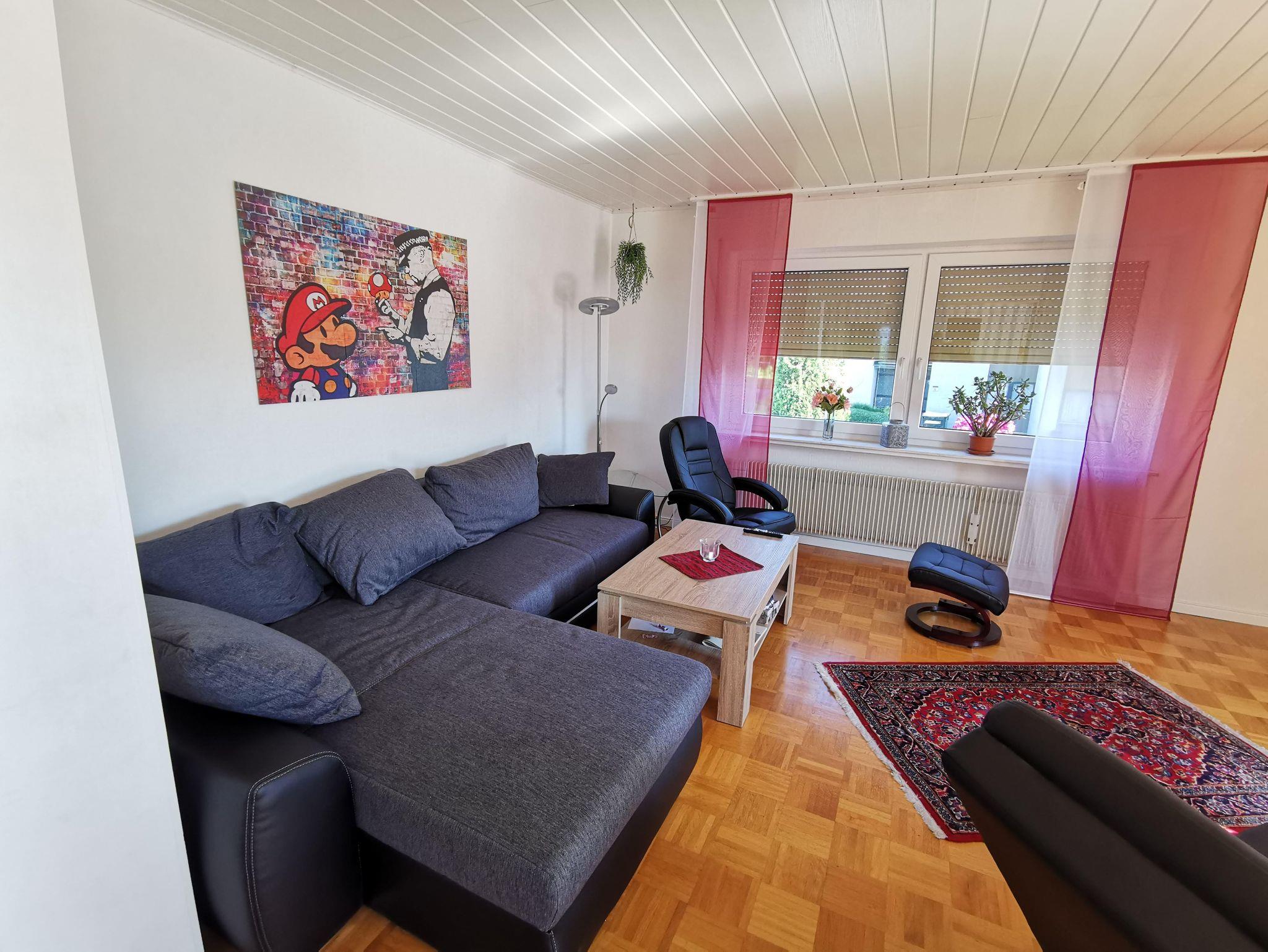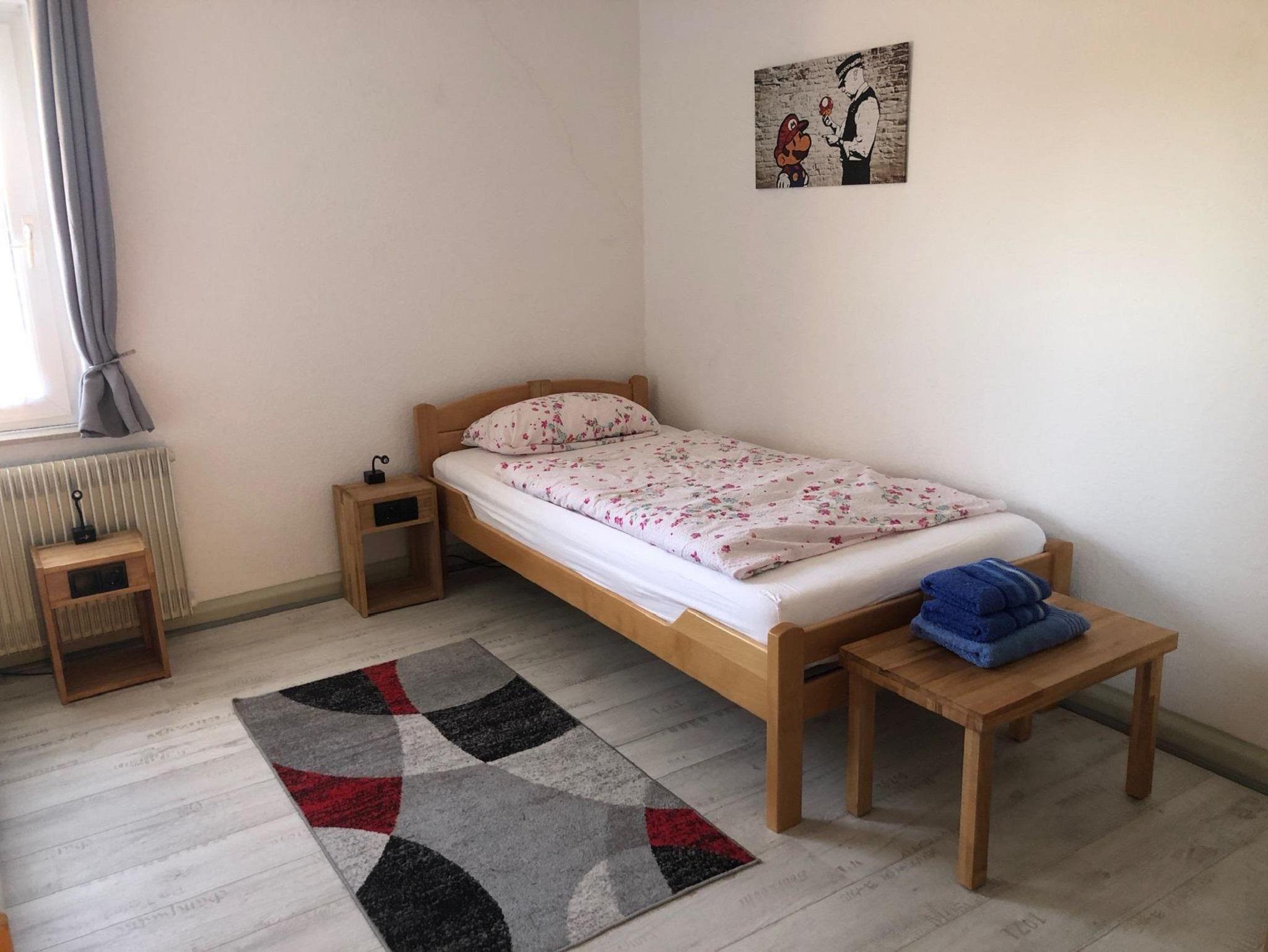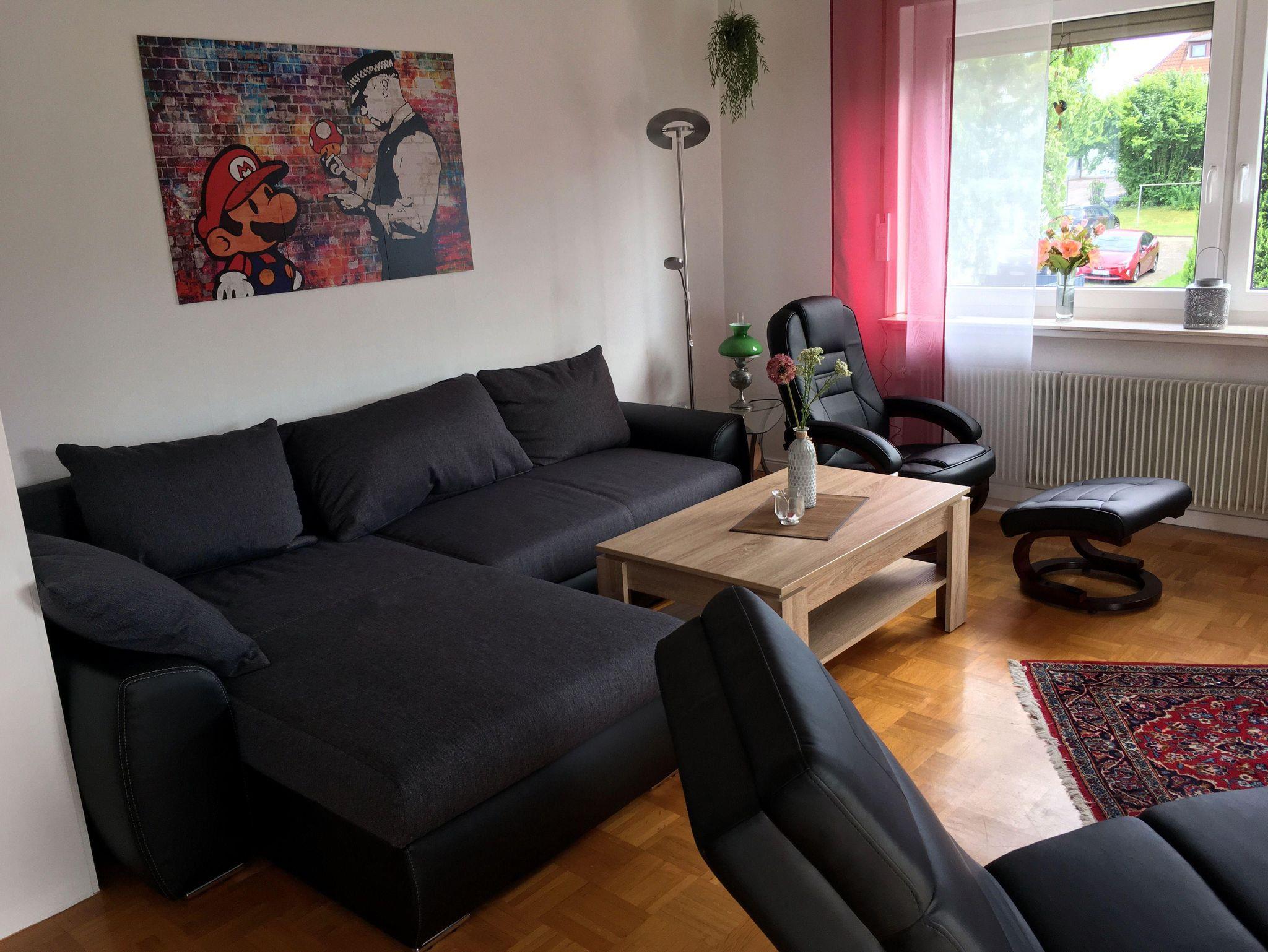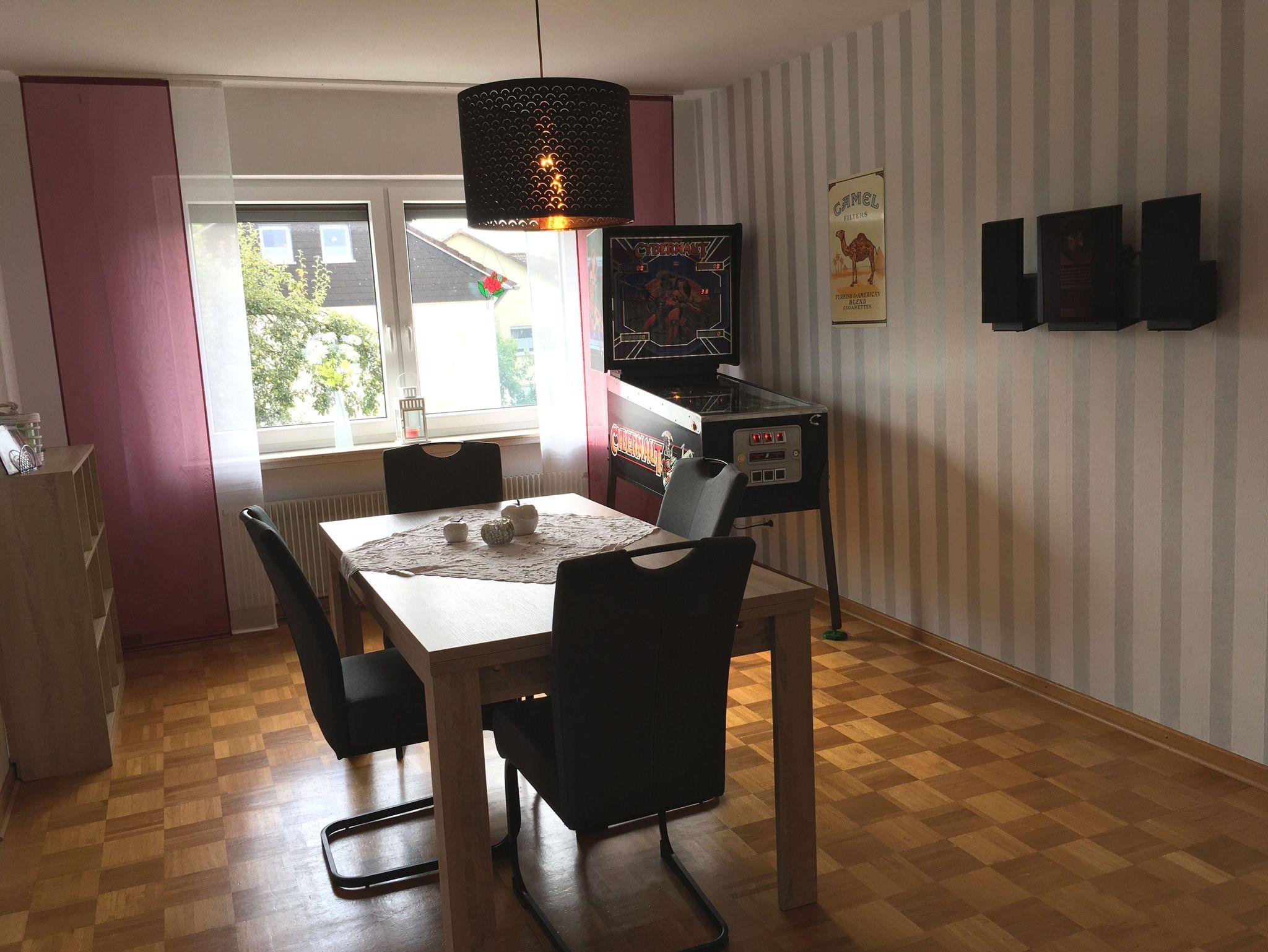 Die gemütliche Wohnung im 1. OG liegt in ruhiger Lage und bietet eine gute Verkehrsanbindung (ÖPNV ca. 250 m). Ausgestattet mit einem Wohnzimmer inkl. 55 Zoll Sat und IP-TV, Stereoanlage, Internet-PC und einer Schlafcouch für 2 Personen. Kostenloses WLAN ist verfügbar. Das Esszimmer bietet Platz für 6 Personen. Ein Flipperautomat aus den 80ern und eine gut ausgestattete Küche runden das Angebot ab.