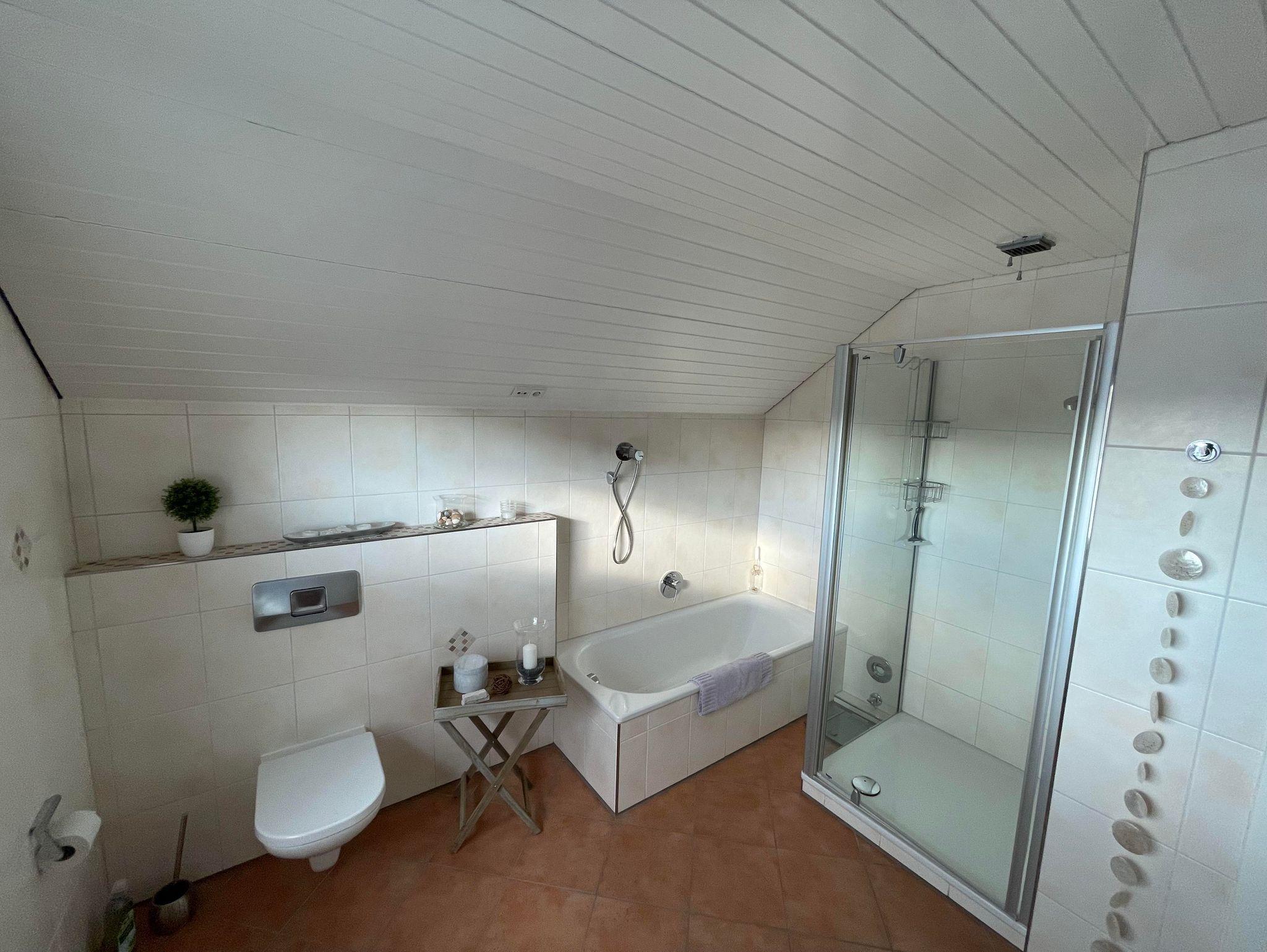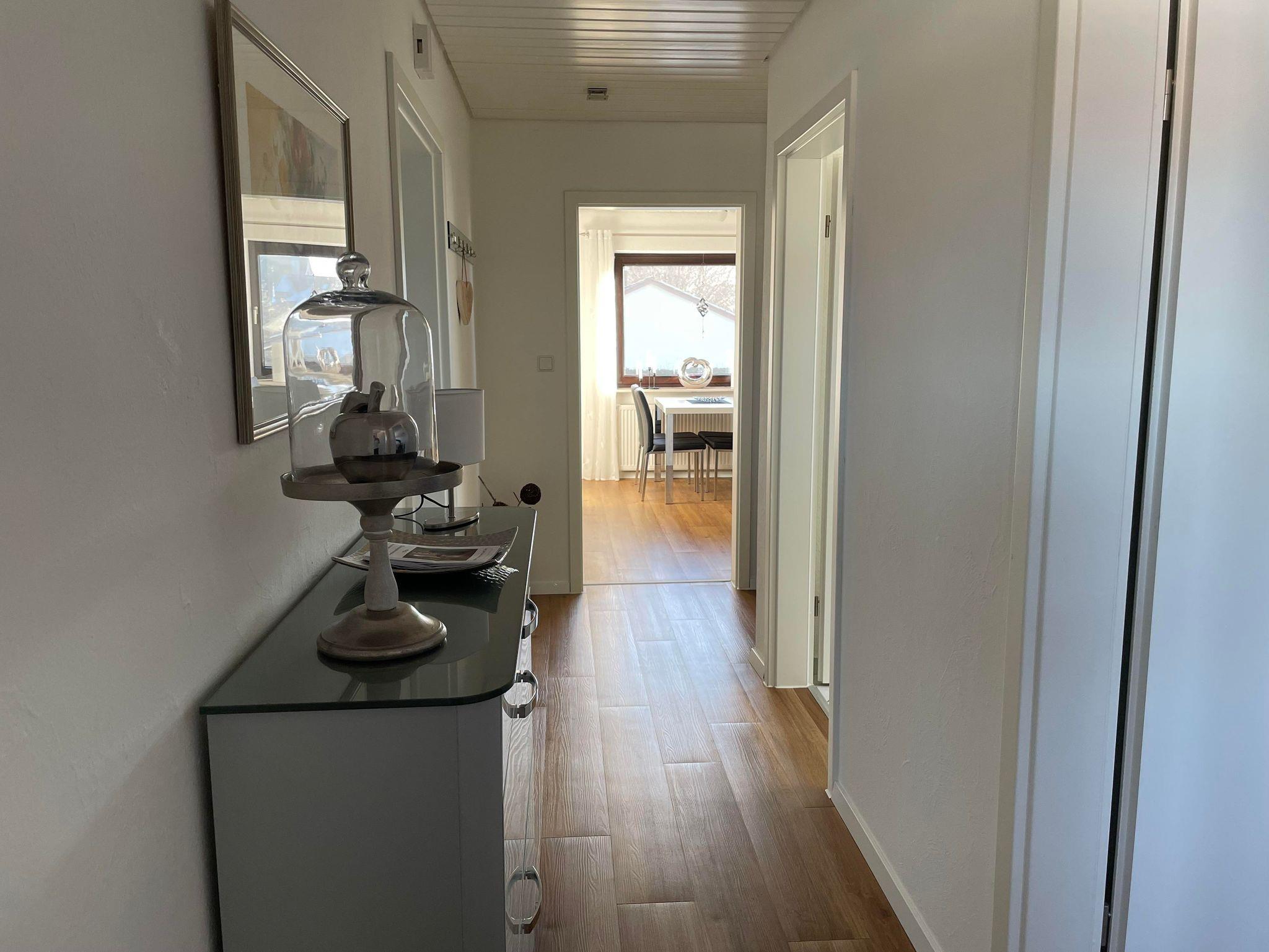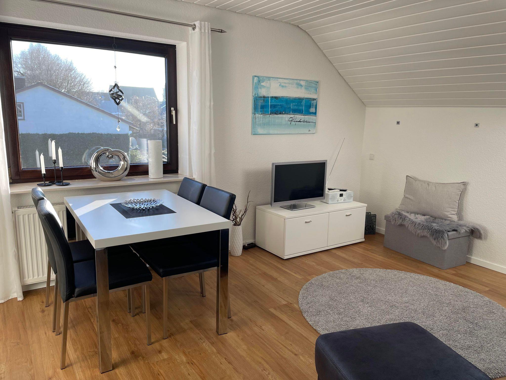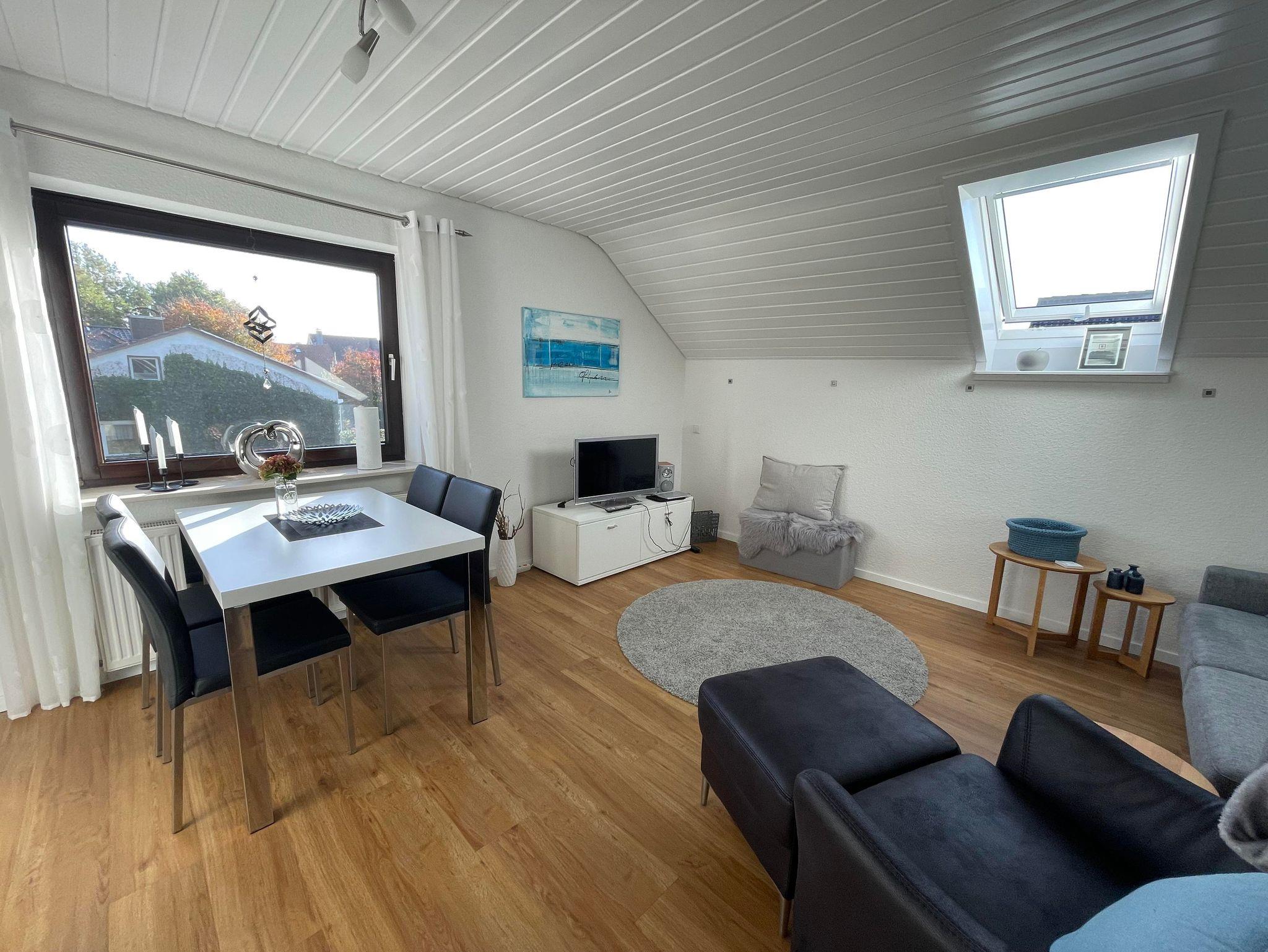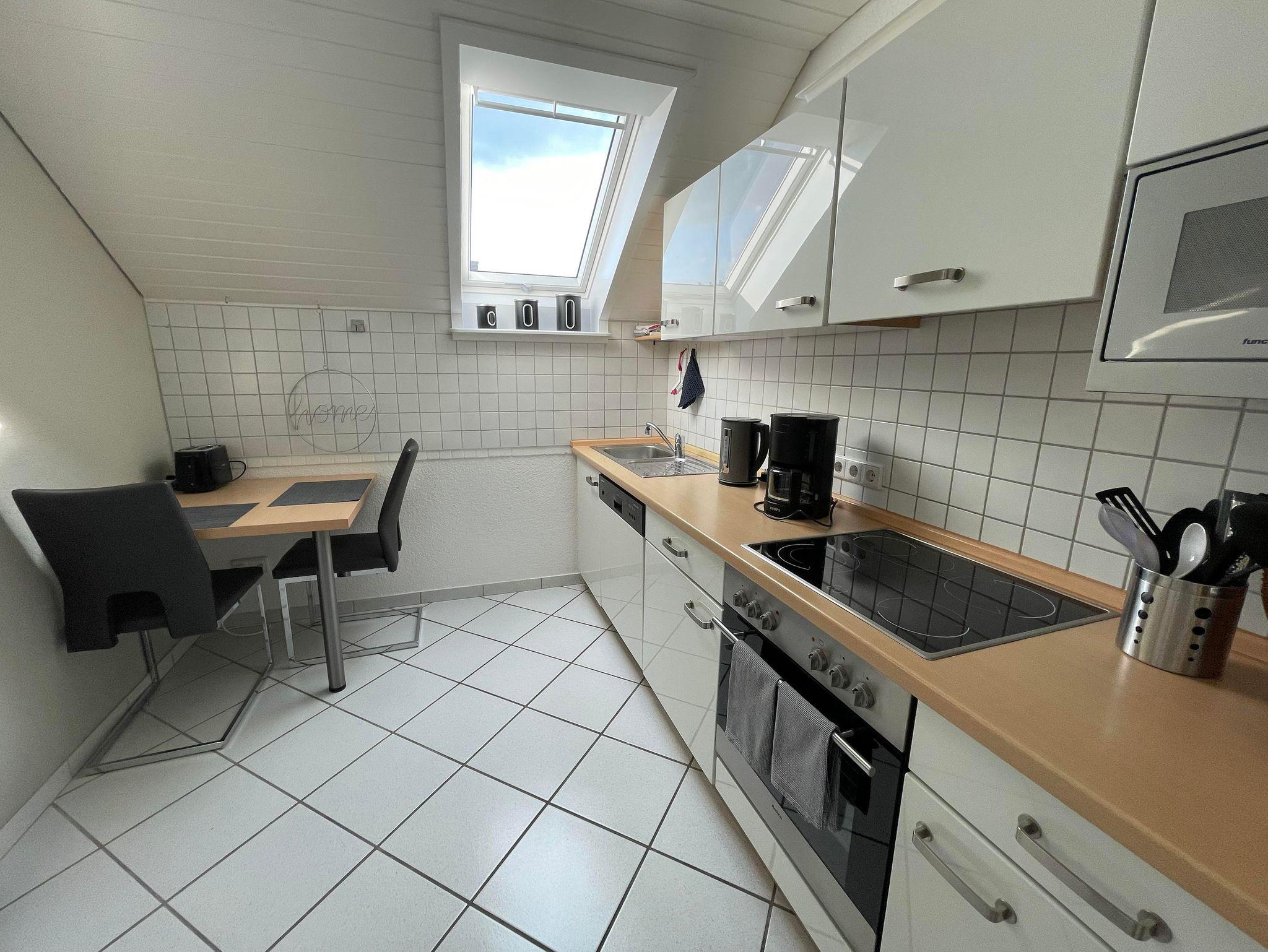 Herzlich willkommen in unserer gemütlichen Ferienwohnung! Auf rund 55 qm erwartet Sie eine moderne und einladende Ausstattung, die Ihnen alles bietet, was Sie für einen angenehmen Aufenthalt brauchen. Die Wohnung eignet sich perfekt für bis zu vier Personen. In der stilvollen, weißen Hochglanz-Küche können Sie nach Herzenslust kochen. Sie ist voll ausgestattet mit einer Spülmaschine, Mikrowelle, Cerankochfeld, Elektrobackofen, Kühlschrank und separatem Gefrierfach. Ein kleiner Essbereich für zwei Personen lädt zu gemeinsamen Mahlzeiten ein. Natürlich stehen Ihnen auch ausreichend Geschirr, Besteck und Küchenutensilien zur Verfügung. Im geräumigen Badezimmer können Sie sich in der bodengleichen Dusche erfrischen oder ein entspannendes Bad in der Badewanne genießen. Das Wohnzimmer ist der perfekte Ort zum Relaxen – mit einer hochwertigen Schlafcouch für zwei Personen, einem bequemen Fernsehsessel, einem Esstisch für vier Personen und modernster Unterhaltungstechnik: Flachbildfernseher mit Internetzugang, Stereoanlage mit digitalen Sendern und kostenloses WLAN. Für eine erholsame Nachtruhe sorgt das großzügige Boxspringbett (2 x 2 m). Selbstverständlich gibt es auch ausreichend Stauraum für Ihre Kleidung. Ein Stellplatz direkt vor dem Haus steht Ihnen kostenlos zur Verfügung, und auch Ihre Fahrräder können sicher untergestellt werden. Wir wünschen Ihnen einen rundum entspannten Aufenthalt!