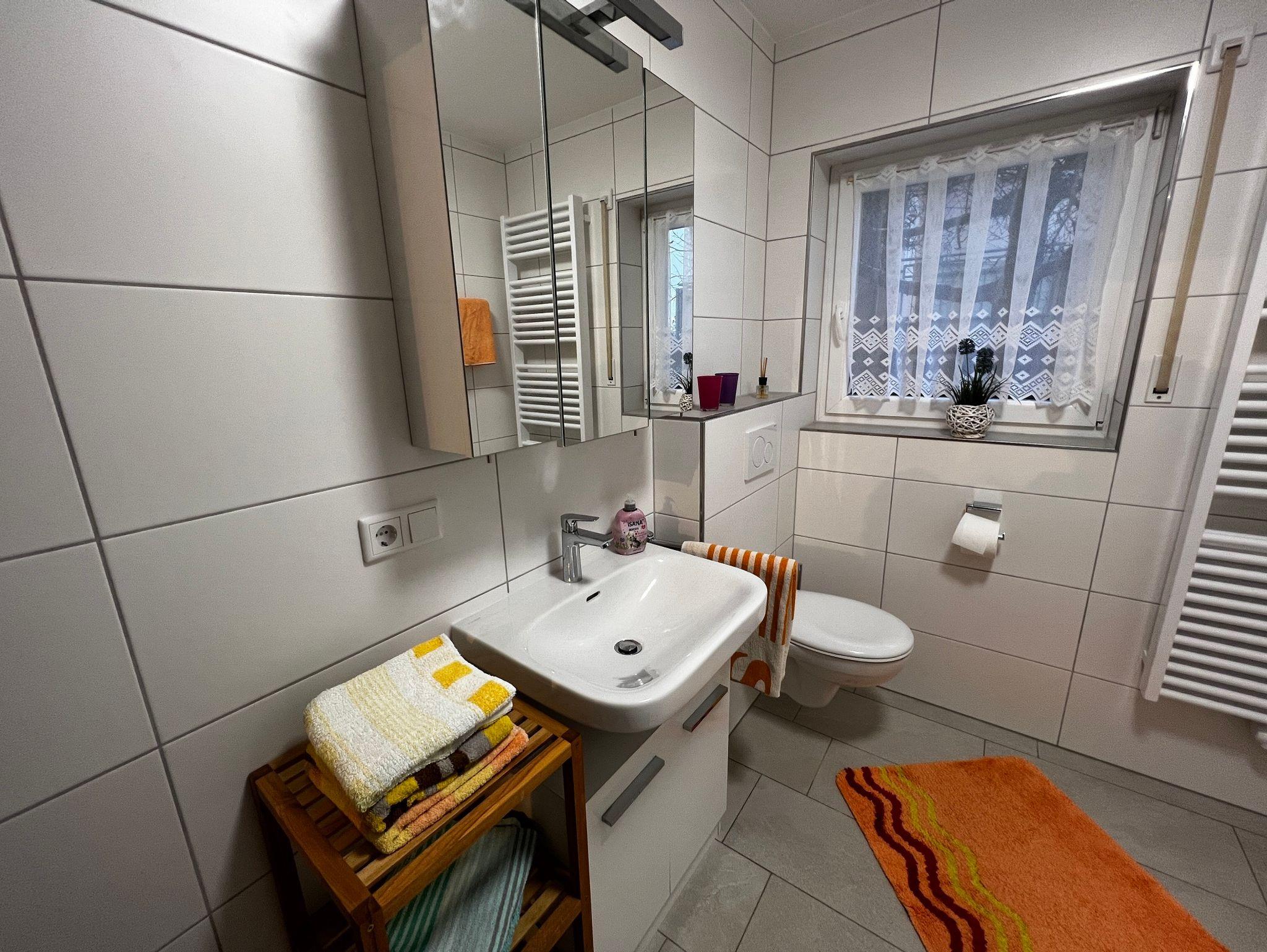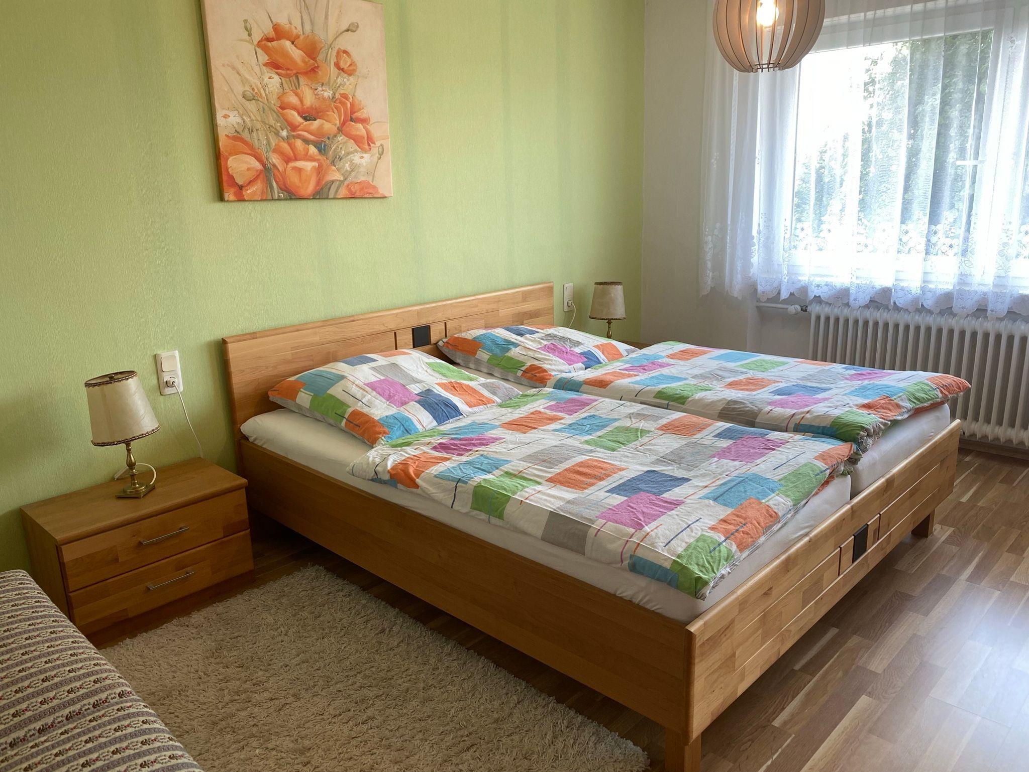 Liebe Gäste, die 95 qm Ferienwohnung liegt idyllisch an einem Südhang oberhalb des Maines mit Blick auf den Steigerwald. Der schöne Garten mit Terrasse und kleinen Teich lädt zum Entspannen und Relaxen ein. Die Wohnung ist ausgestattet mit 3 Schlafzimmern. Ein Schlafzimmer mit Doppelbett und zwei Schlafzimmer mit jeweils einem Einzelbett (140/ 90cm). Die Küche ist komplett ausgestattet (Kaffeemaschine, Wasserkocher, Toaster, Mikrowelle usw). Im Esszimmer sind Sitzplätze für bis zu fünf Personen. Im Wohnzimmer finden Sie einen Flat-TV und eine gemütliche Sofalandschaft vor. Das Badezimmer mit Dusche und WC verfügt zusätzlich noch über einen Haartrockner. Handtücher und Handseife legen wir gerne für Sie bereit. Die große Terrasse in unserem liebevoll bepflanzen Garten ist das Highlight. Die Südterrasse ist mit komfortablem Gartenmobiliar bestückt. Hier können Sie bei einem Frühstück entspannt in den Tag starten, oder den Tag bei einer Grillrunde ausklingen lassen. Der Grill stellen wir Ihnen bei Anfrage gerne bereit. Ebenso können Sie gerne kostenfrei drei Räder von uns ausleihen und damit durch die Weinberge fahren. Für Gäste, welche eigene Räder mitbringen, bieten wir eine kostenfreie Unterstellmöglichkeit. Für Ihren PKW haben wir einen Stellplatz auf unserem Grundstück reserviert. Die Nutzung des WLANs ist inklusive. Bitte haben Sie dafür Verständnis, dass das Rauchen nur im Außenbereich gestattet ist. Wir freuen uns auf Sie. Fränkische Grüße und bis bald!