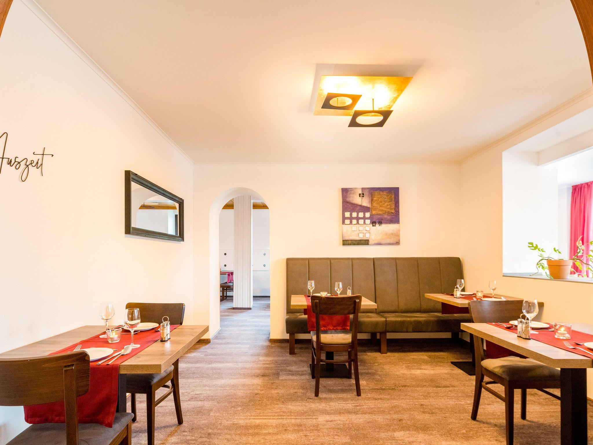 Preiswerte Halbpension in gemütlich ausgestatteten Gästezimmern mit Du/WC, TV und Balkon, inklusive Hallenbadbenutzung (4,5 x 12 m, 30°). Sauna gegen Aufpreis.