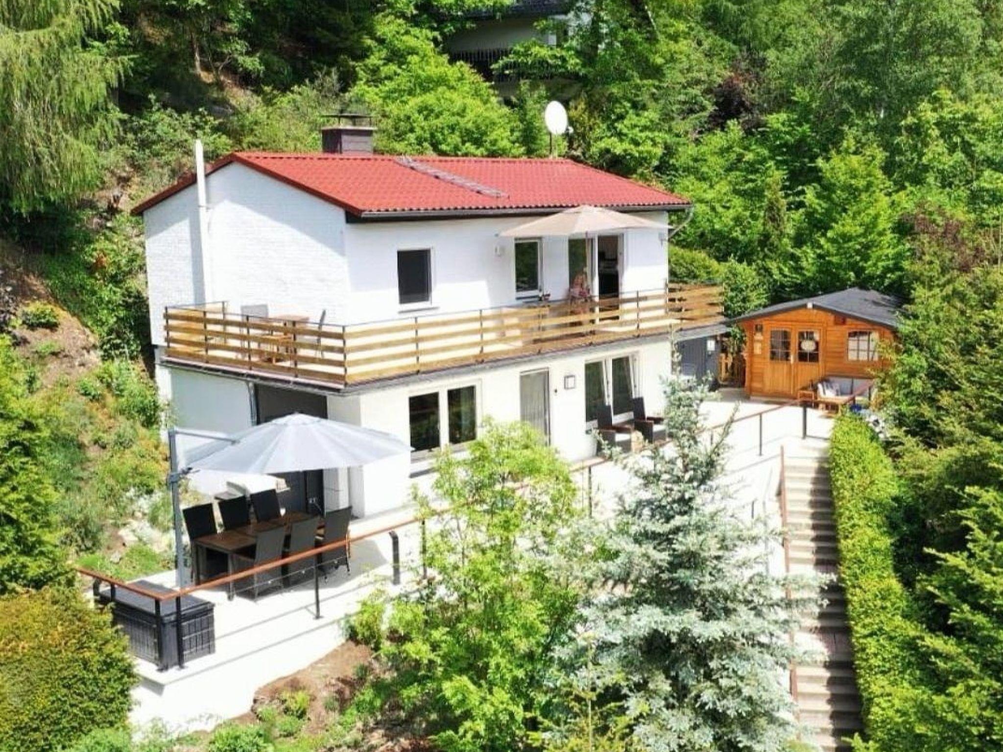 Our high-quality 4-star holiday home impresses with its romantic location directly on the mountain with a fantastic view. On sunny days you can enjoy the sun all day long on our large terrace. The house is divided into two separate, very chic and cosy flats. The upper flat can accommodate up to 6 people while the lower flat can be booked for up to 4 people. Each flat has its own seating area on the large terrace with a large dining table for six chairs, cosy chair cushions, its own sun loungers and parasols as well as a charcoal barbecue.
