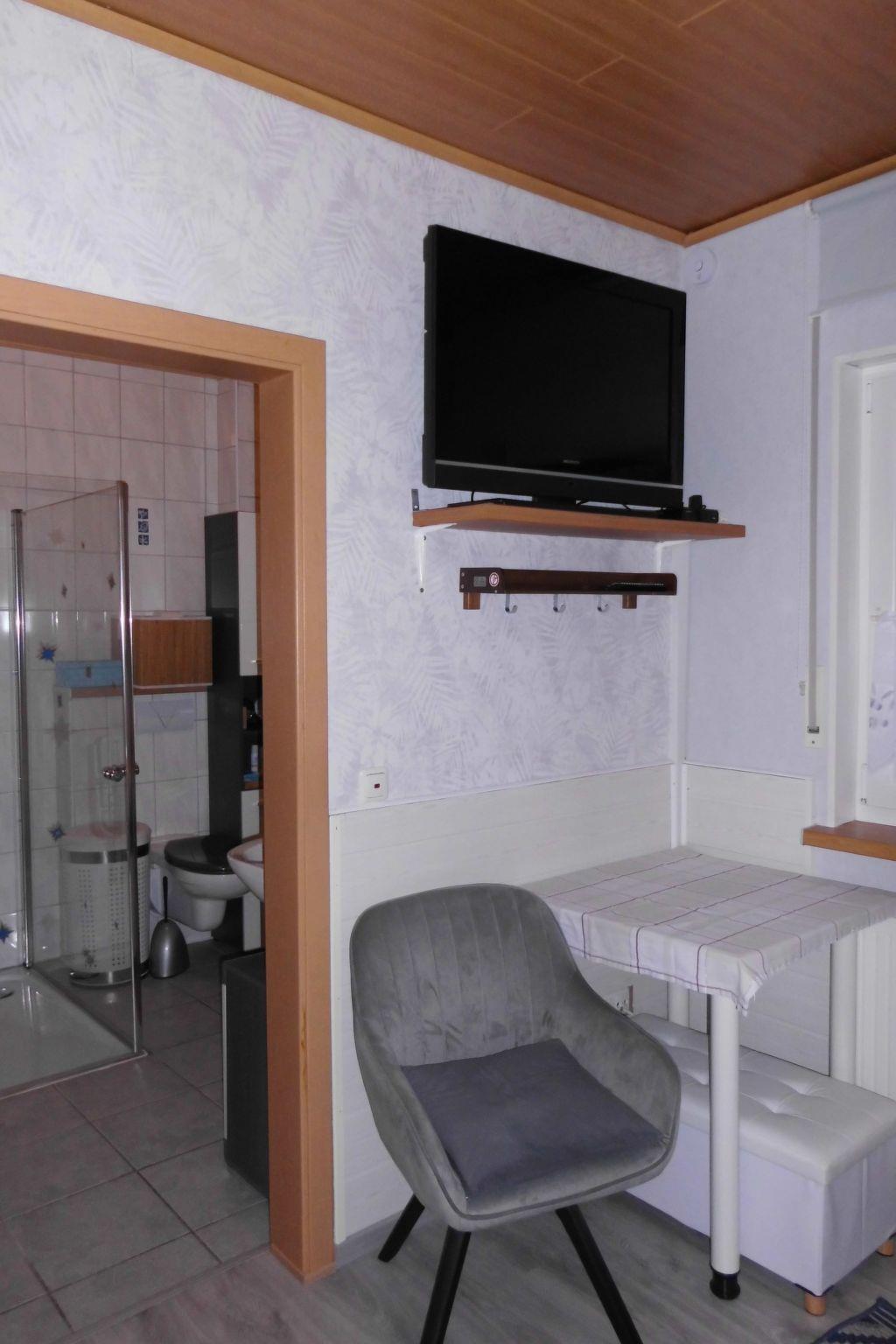 The modern interior leaves nothing to be desired. A fully equipped fitted kitchen with oven, dishwasher, microwave and much more, as well as a table and comfortable chairs, guarantees that you can cater for yourself just like at home. The bedroom is furnished with a double bed, large TV and plenty of storage space, while the barrier-free bathroom has a shower, raised toilet, hairdryer and bathrobes for your comfort. For entertainment and information, there is a small Smart TV in the kitchen, complemented by a radio and plenty of brochures about the region.