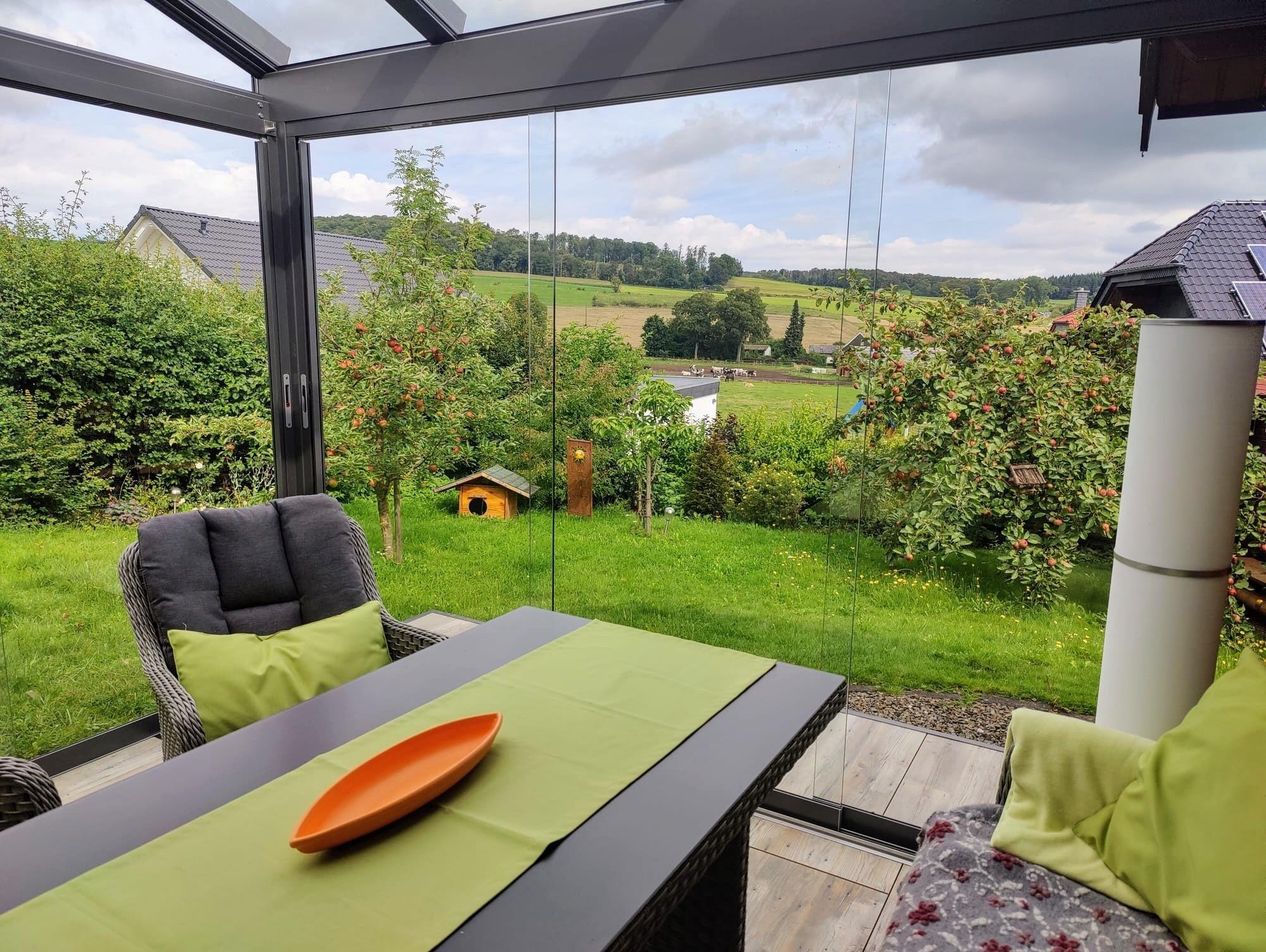 Freuen Sie sich auf eine ruhige Lage abseits von Lärm und Hektik in der idyllischen Natur in der Nähe vom Diemelsee. Umgeben von Wäldern und Wiesen bietet das schöne Holzhaus Ihnen auf kompakten Raum eine heimelige Atmosphäre. Erholen Sie sich vom Alltag und entspannen Sie sich bei einem dampfenden Kaffee im schönen Wintergarten mit Blick auf die Landschaft. Durch die komplette Verglasung des Kaltwintergartens sitzen Sie quasi im Garten und können den Ausblick genießen. Ein Infrarotstrahler sorgt auch bei etwas kälteren Temperaturen für Wärme.