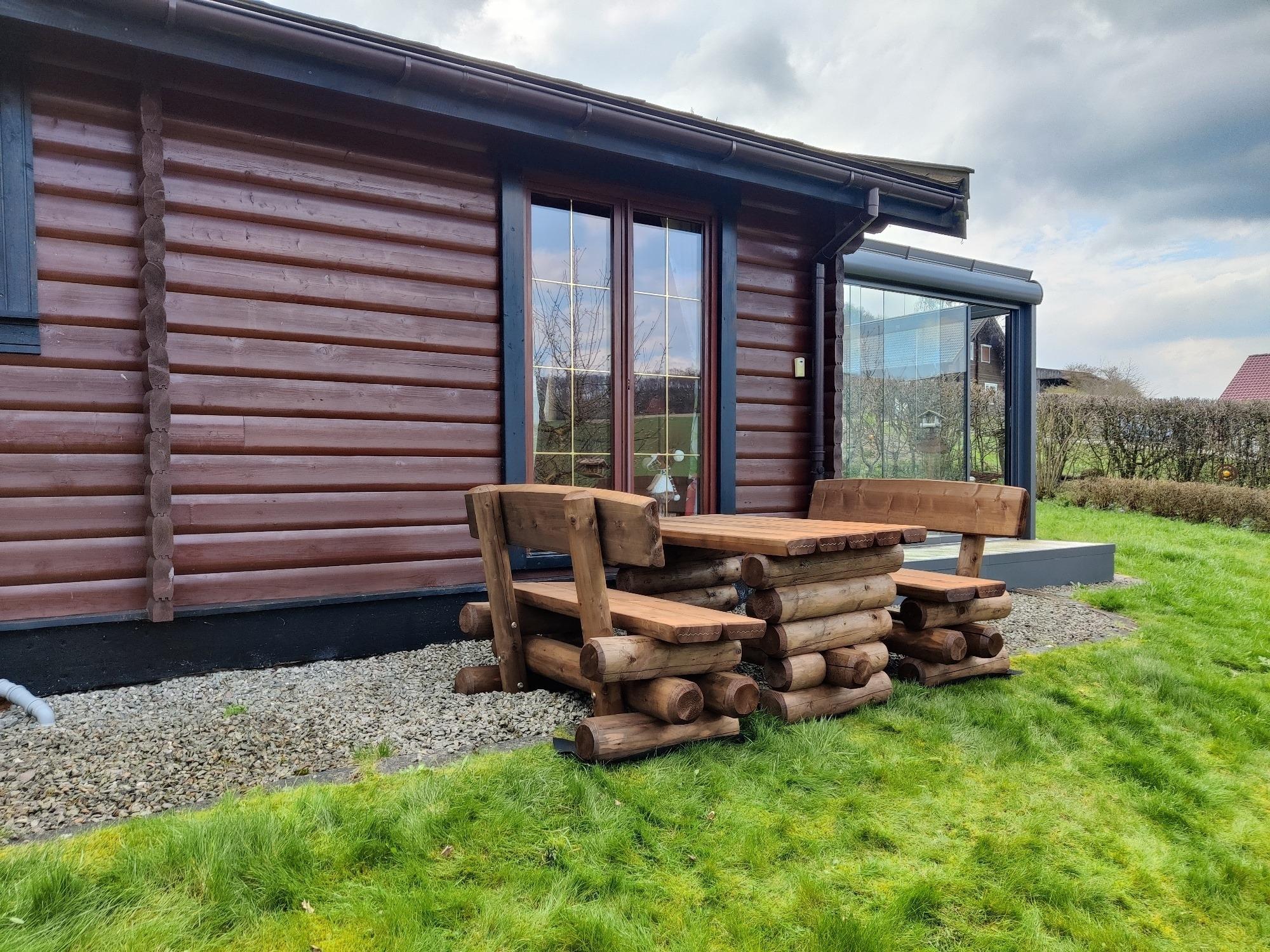 Herzlich Willkommen in unserem gemütlichen Holzblockhaus mit Garten und einem wunderschönen Wintergarten in