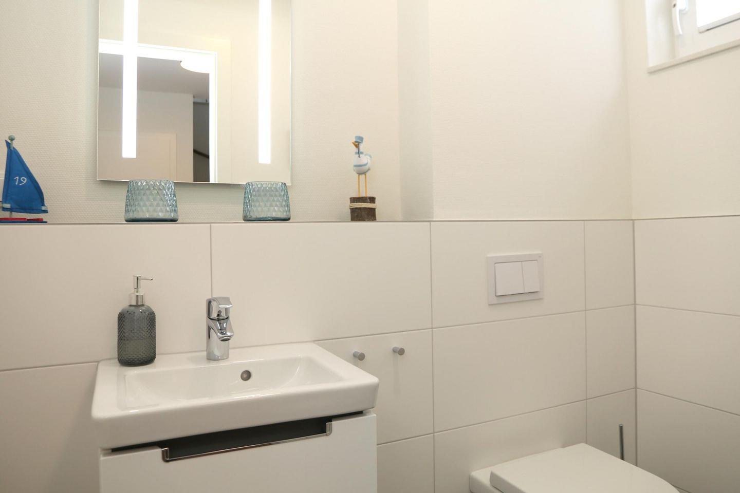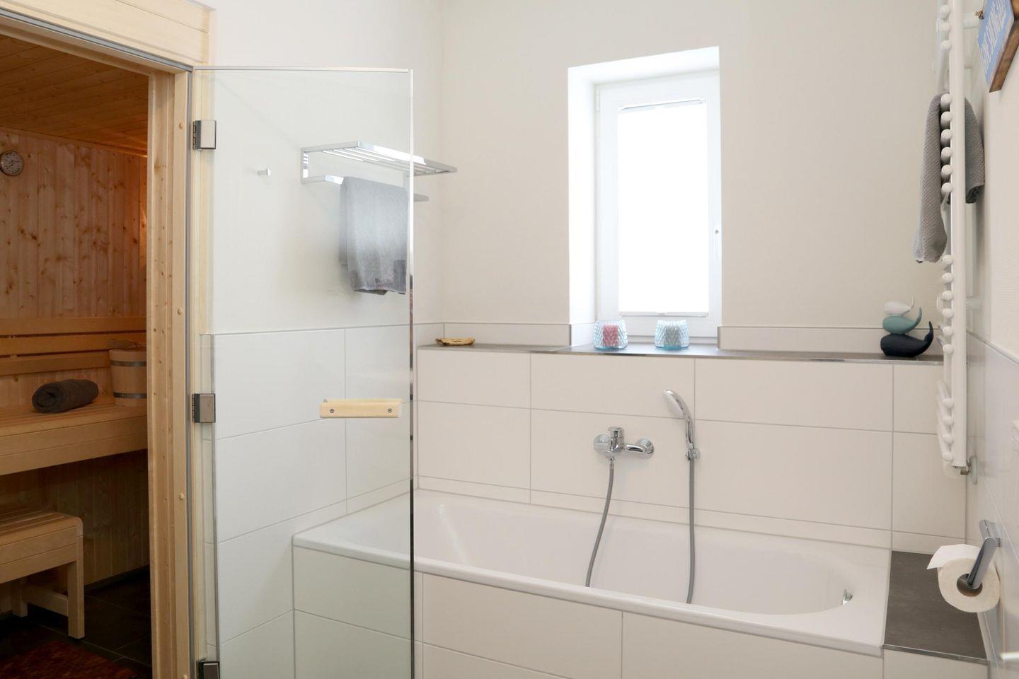 Das großzügige Bad ist dein ganz persönlicher Spa-Bereich – mit privater Sauna, bodentiefer Wellnessdusche und Badewanne. Aromatische Aufgüsse helfen dir, vom Alltagsstress abzuschalten. Ein zusätzliches Gäste-WC bietet Komfort für den Urlaub zu zweit oder mit Freunden.