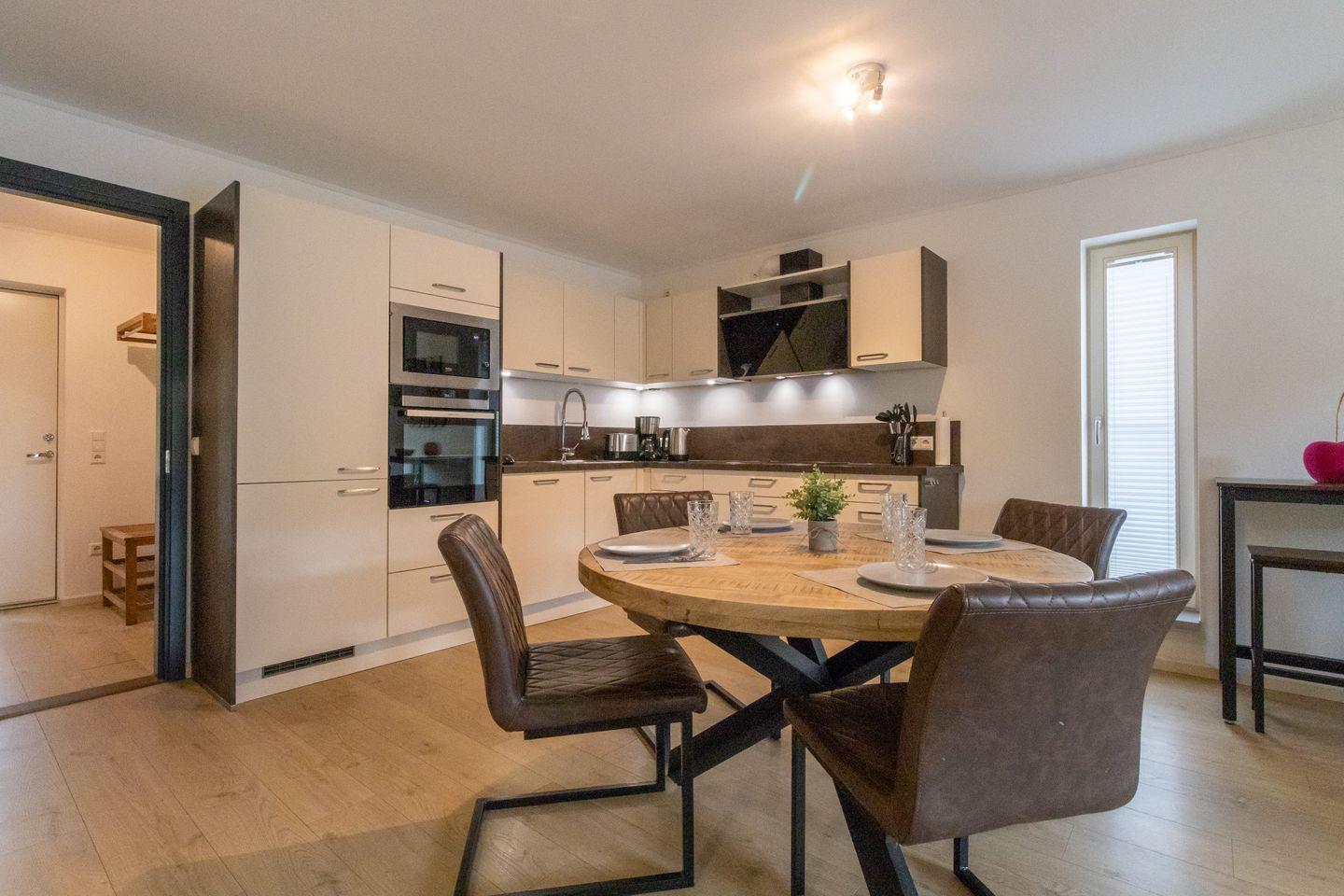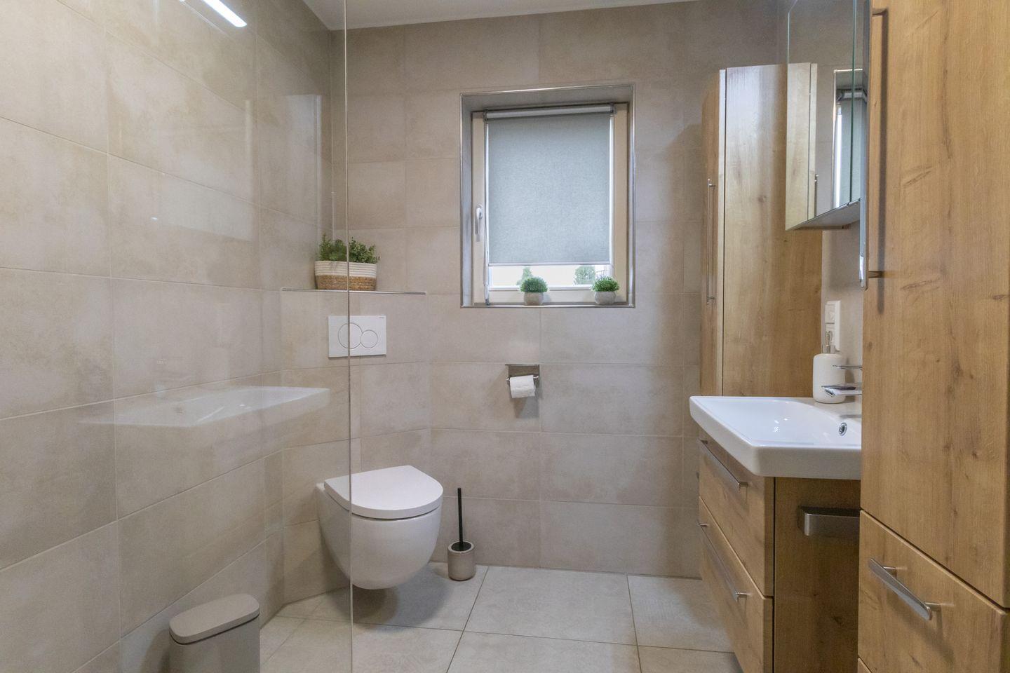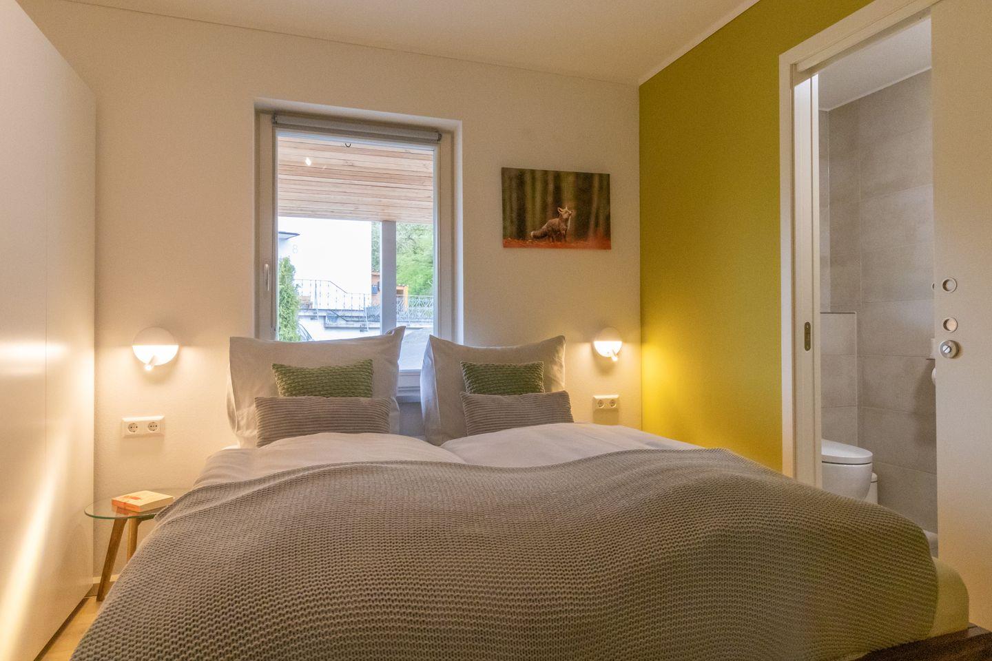 Gleich zwei moderne Badezimmer mit Dusche, WC und Waschtisch stehen euch zur Verfügung – ideal, wenn ihr mit mehreren Personen reist. Die stilvolle Ausstattung in hellen Farben sowie die Fußbodenheizung sorgen für ein angenehmes Wohlfühlklima.