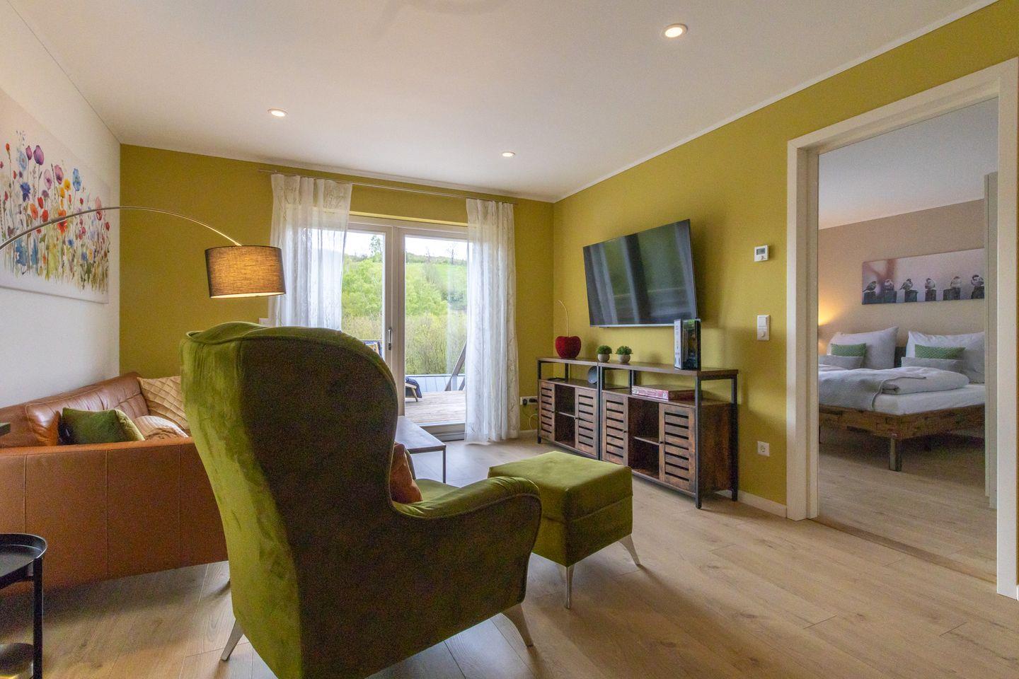 Die geräumige Erdgeschosswohnung „Waldblick“ bietet 90?m² Wohnfläche, eine große Sonnenterrasse und zwei Schlafzimmer mit Doppelbetten – ideal für bis zu vier Gäste plus Kleinkind. Genieße Garten, Grillabende, Fußbodenheizung und die Gemeinschaft mit Hund – direkt am Diemelsee.