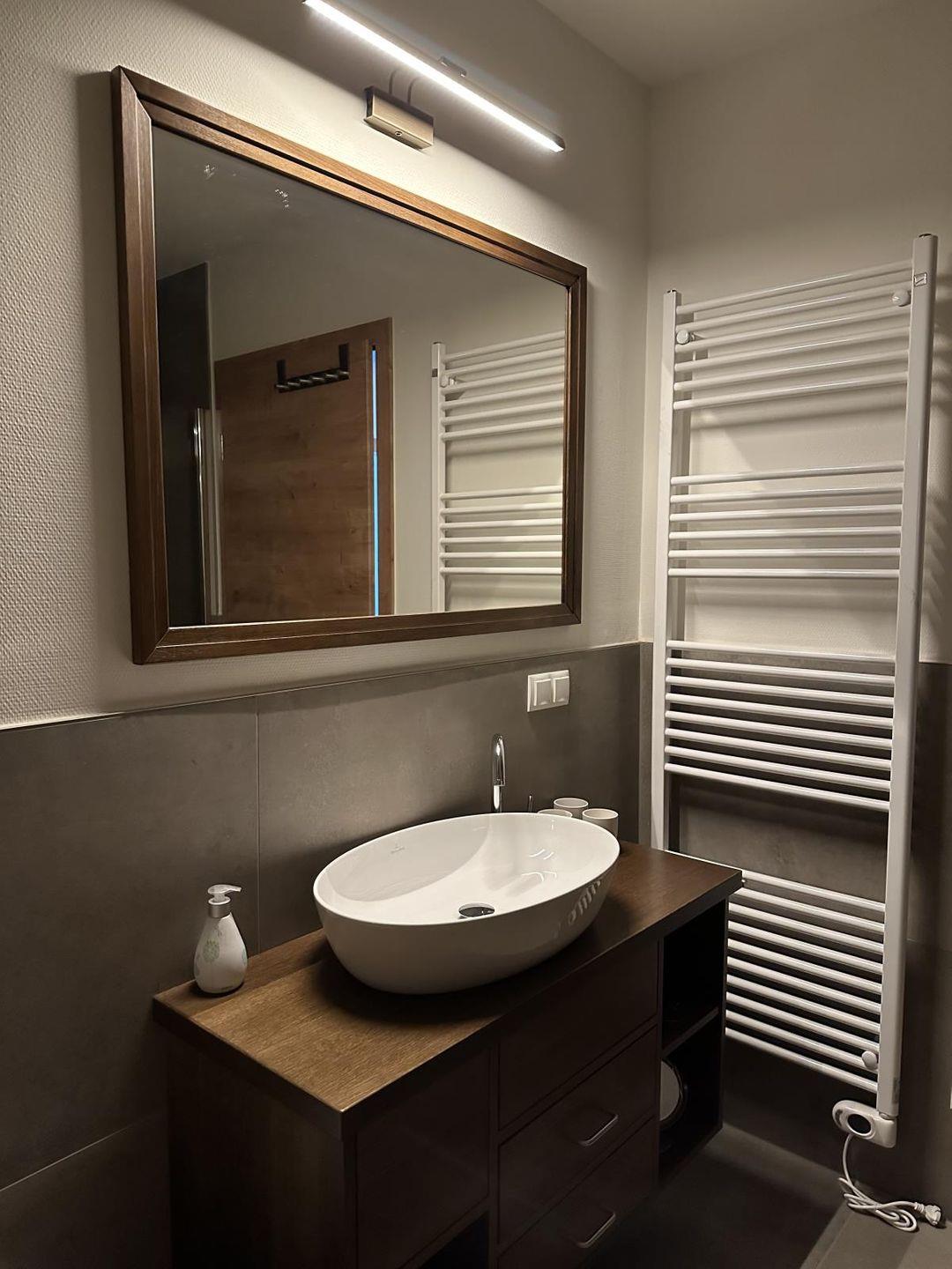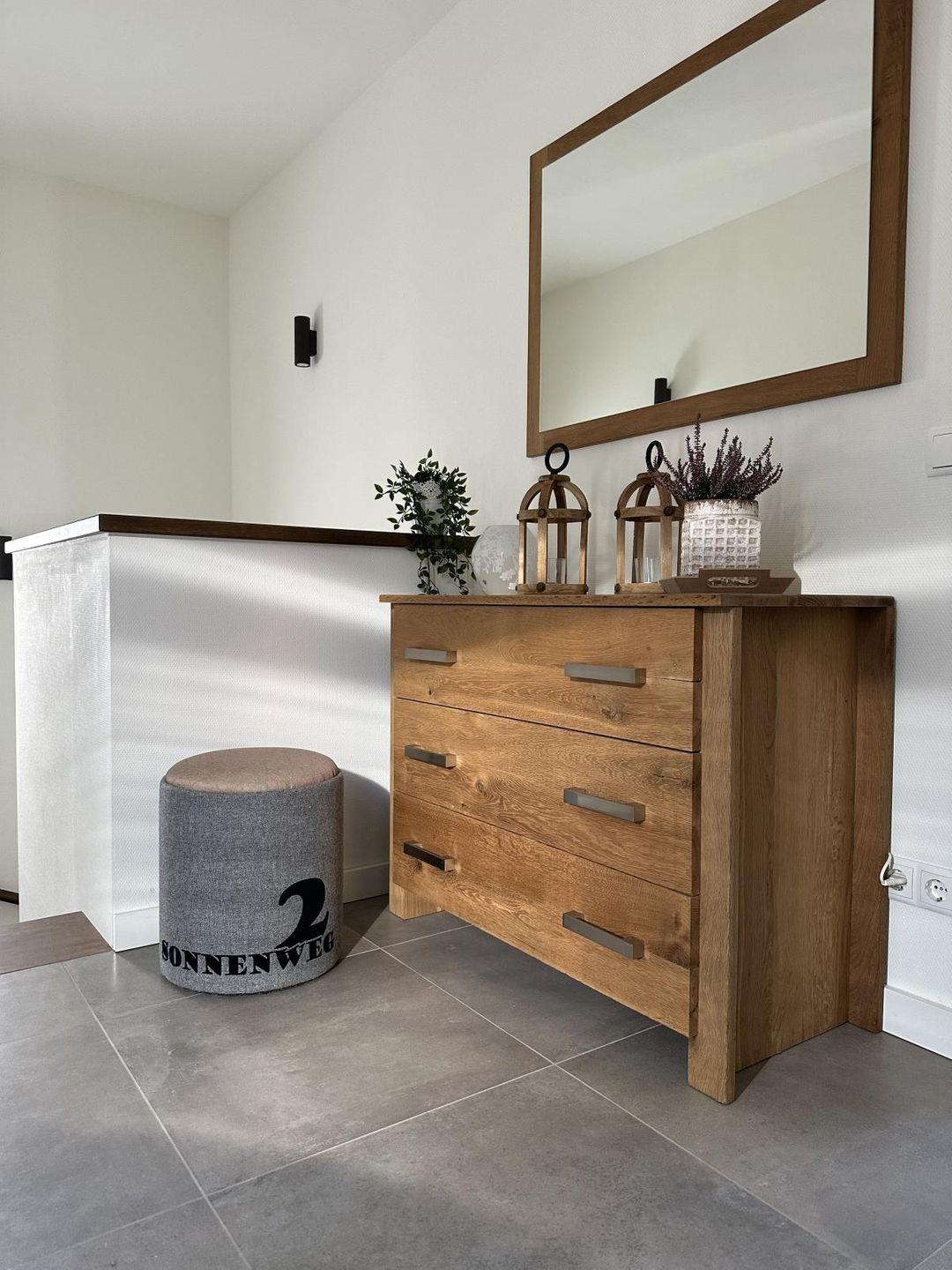 Das moderne Bad überzeugt mit ebenerdiger Dusche, Fußbodenheizung und Tageslicht. Hier startest du entspannt in den Tag oder kommst nach einem Ausflug wohlig zur Ruhe.