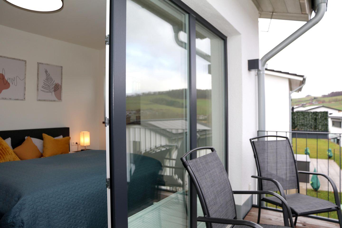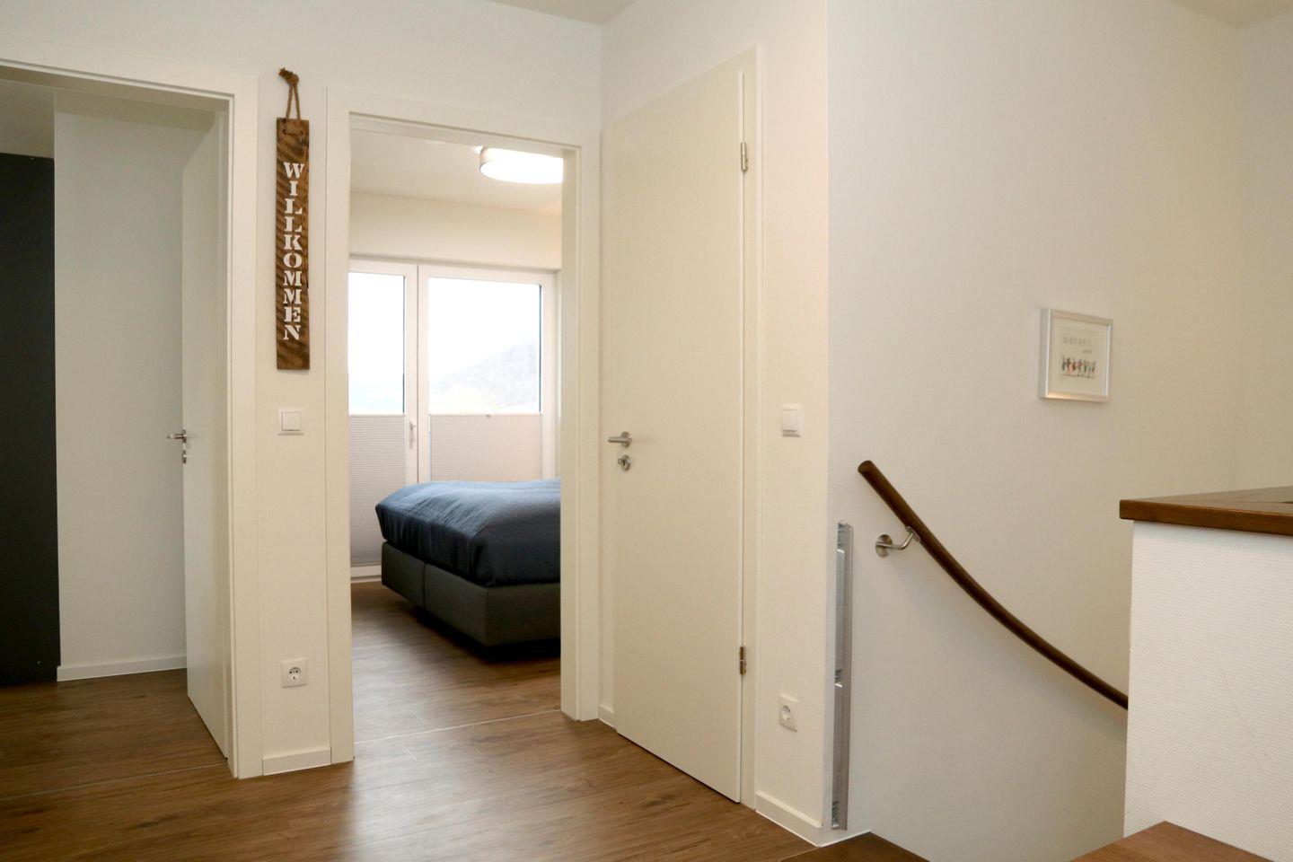 Zwei Schlafzimmer mit hochwertigen Boxspringbetten sorgen für erholsamen Schlaf. Besonders schön: das Schlafzimmer im Obergeschoss mit bodentiefen Fenstern und bezauberndem Panoramablick über den Diemelsee. Verdunkelungsplissees sorgen für ruhige Nächte.