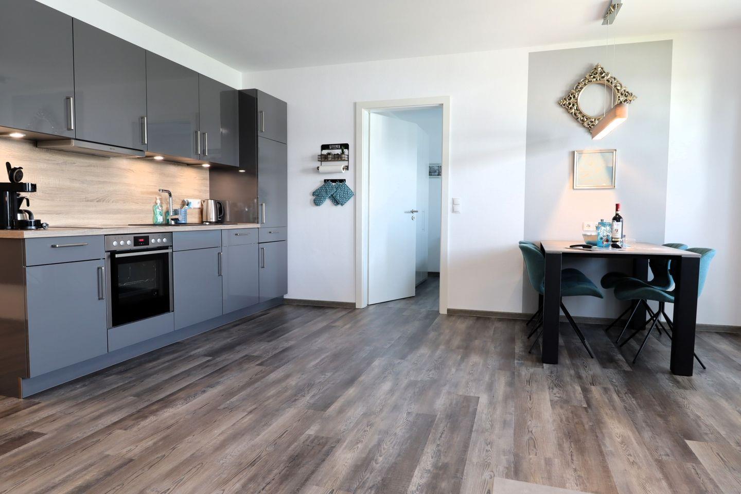 Die Küche ist gut ausgestattet mit Geschirrspüler, Backofen, Kaffeemaschine und allem, was du für die Selbstverpflegung brauchst. WLAN steht kostenfrei zur Verfügung. Dein Auto parkst du direkt vor dem Haus. Ein abschließbarer Kellerraum für Fahrräder ist ebenfalls vorhanden.