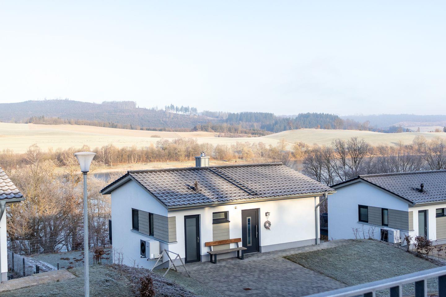 Stilvoll Urlaub machen mit weitem Blick über den Diemelsee: Das KomfortPlus Ferienhaus Diemelblick 17 bietet dir 108 m² Wohnkomfort für bis zu 6 Personen plus Baby. Genieße entspannte Stunden mit Sauna, Dachterrasse, Grill und Elektrokamin