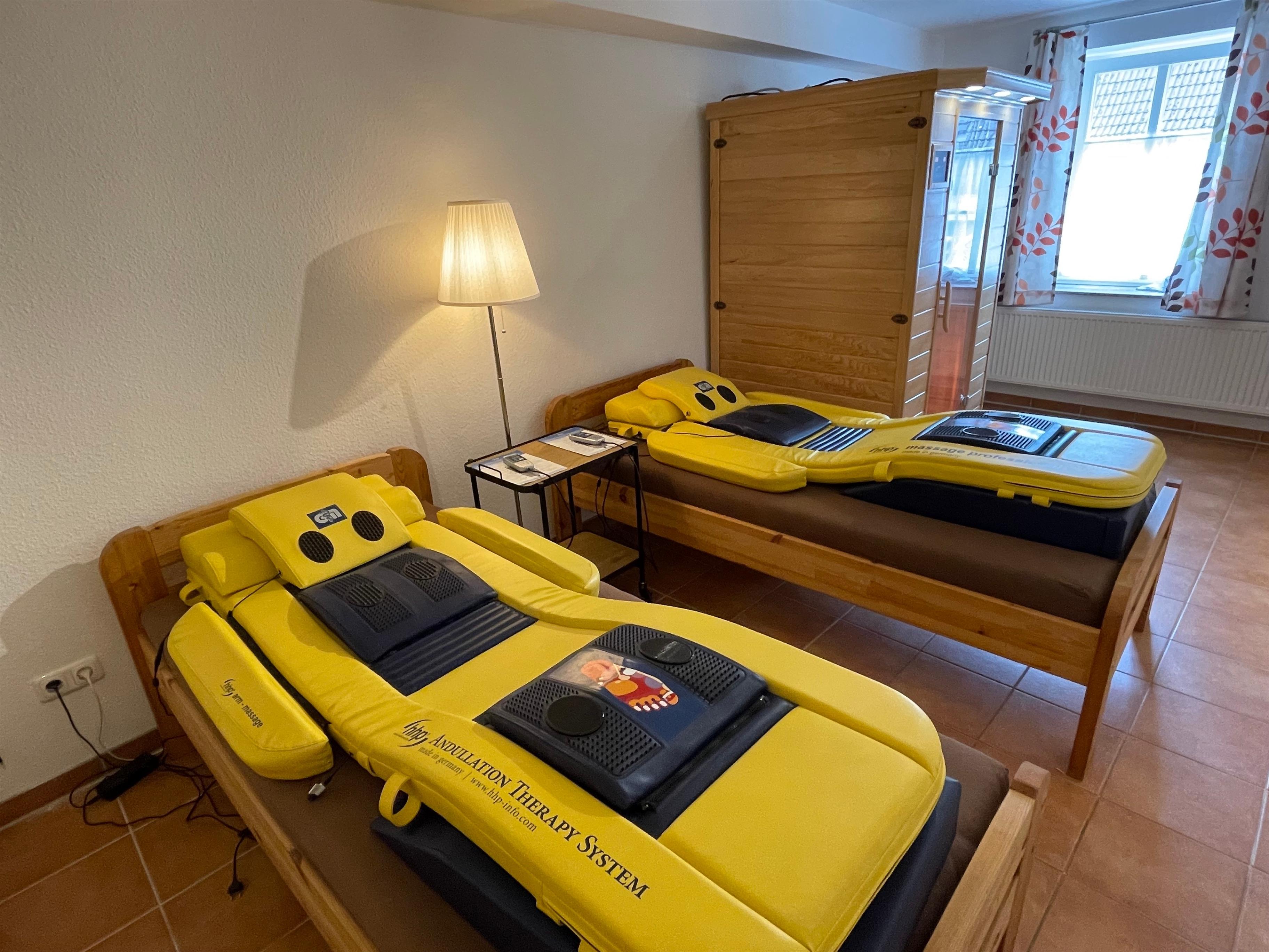 Unser Wellness-Center mit InfraRot-Wärmekabine (Niedertemperatur-Sauna) und hhp-Massageliegen steht den Gästen unserer Luxus-Ferienwohnungen (jede mit eigenem Whirlpool und Kamin) kostenfrei zur Verfügung.
