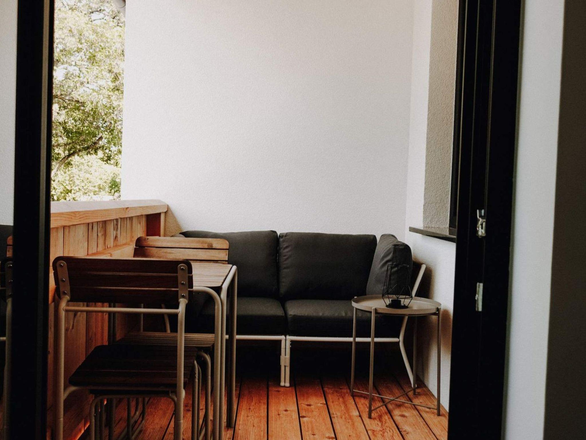 Die Wohnung verfügt über eine begehbare Garderobe und eine Fußbodenheizung, die in der kühleren Jahreszeit für ein angenehmes Raumklima sorgt. Zur Ausstattung gehören außerdem ein Ganzkörperspiegel und ein Besen. Im stilvollen Wohnbereich lädt eine gemütliche Sofaecke zum Entspannen ein, während der angrenzende Essbereich mit einem großen Esstisch genügend Platz für gemeinsame Mahlzeiten bietet. Ein schöner Balkon mit Sofa, kleinem Tisch, zwei Stühlen und einem Hocker bietet einen zusätzlichen Rückzugsort im Freien. Für Unterhaltung stehen Ihnen drei Fernseher (im Wohnzimmer, Schlafzimmer und im Dachgeschoss) sowie kostenfreies WLAN zur Verfügung.
