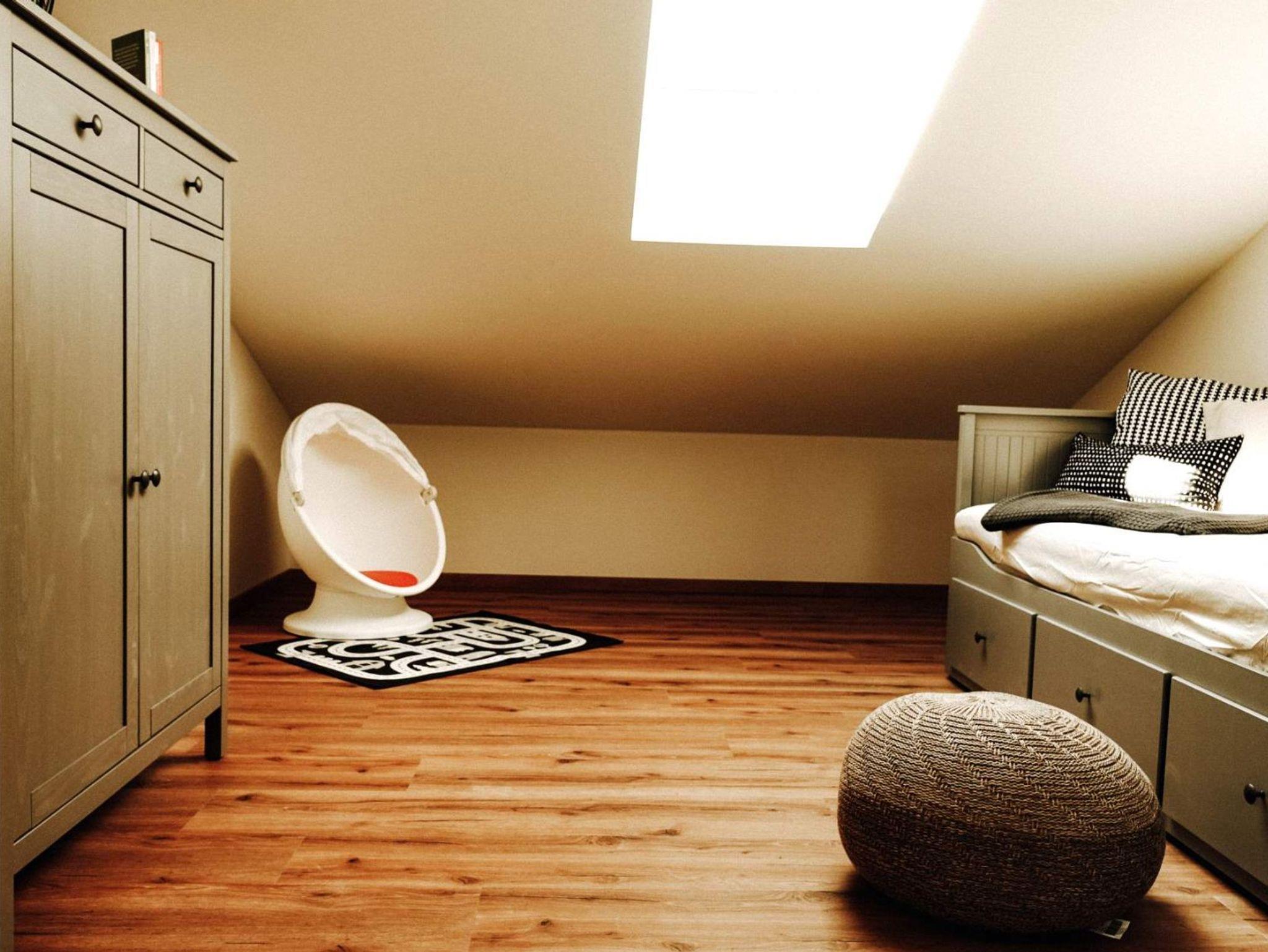 Das Dachgeschoss bietet einen großen Wohnbereich mit bequemen Sesseln und einem zusätzlichen TV. Hier befindet sich auch ein Kinderzimmer mit einem ausziehbaren Bett (160×200 cm) und einer Kommode. Für die Kleinen steht ein Kindersessel bereit. Zusätzlich gibt es zwei weitere ausziehbare Betten (160×200 cm), die weiteren Gästen oder Kindern Platz bieten.