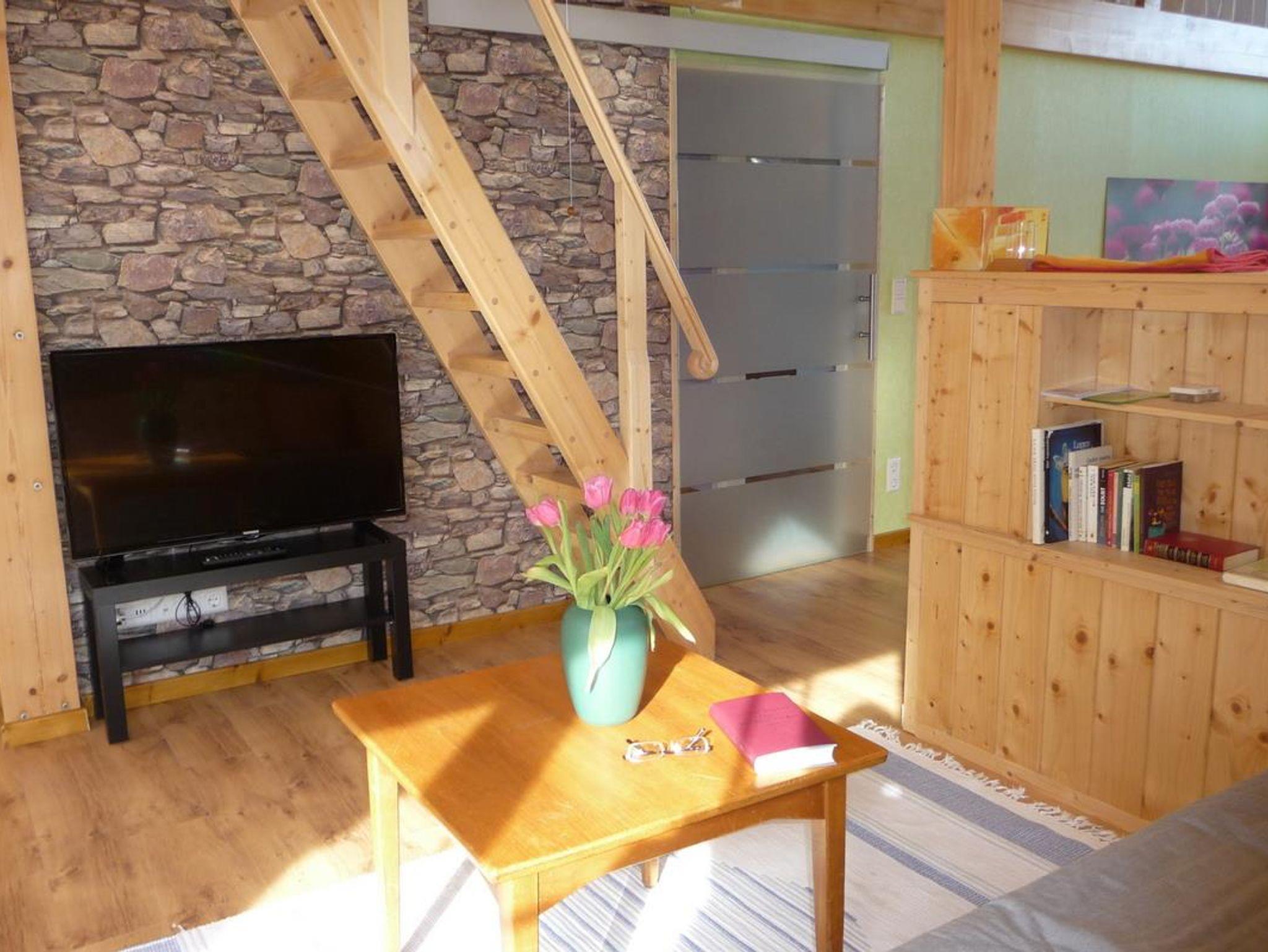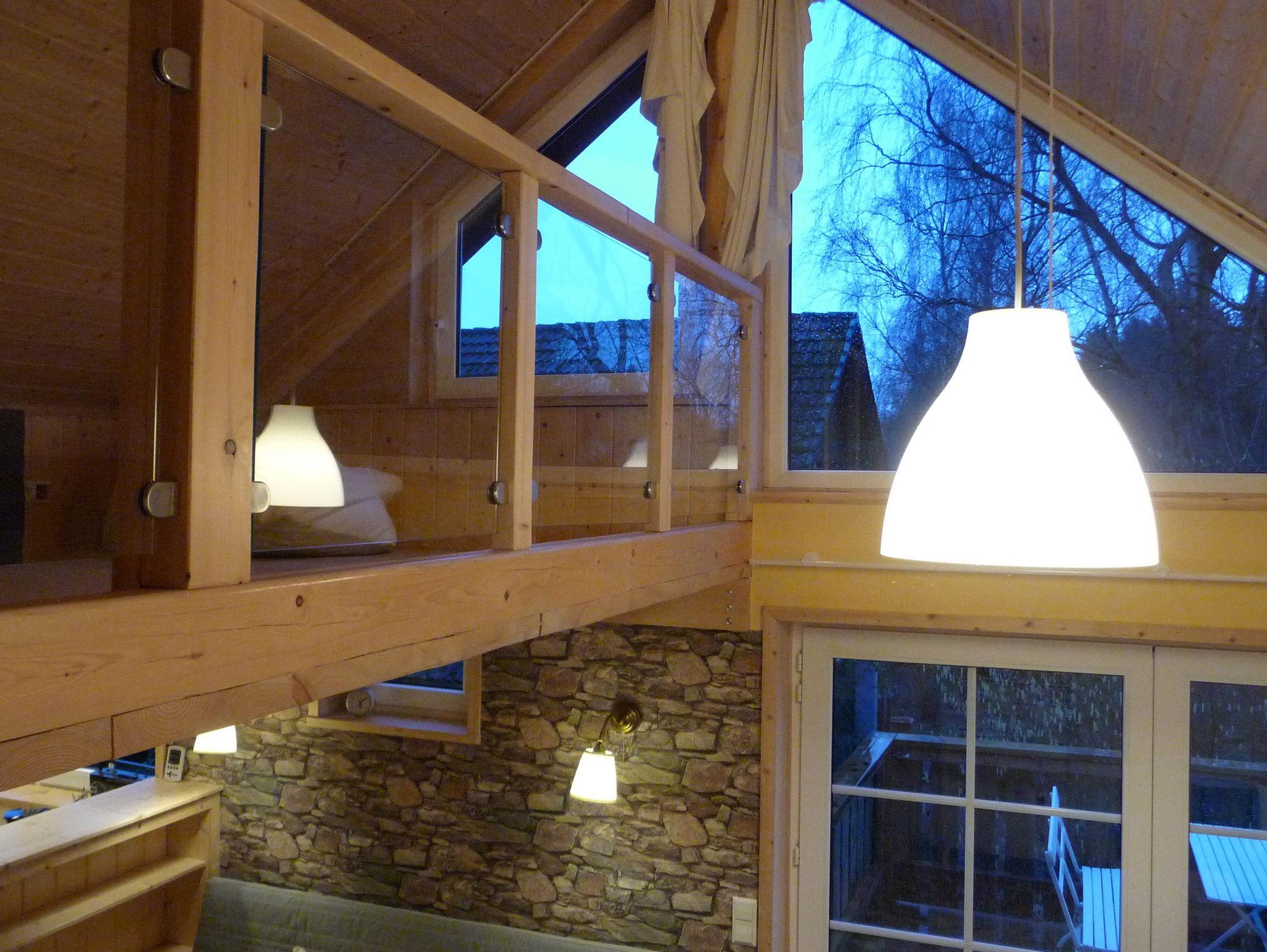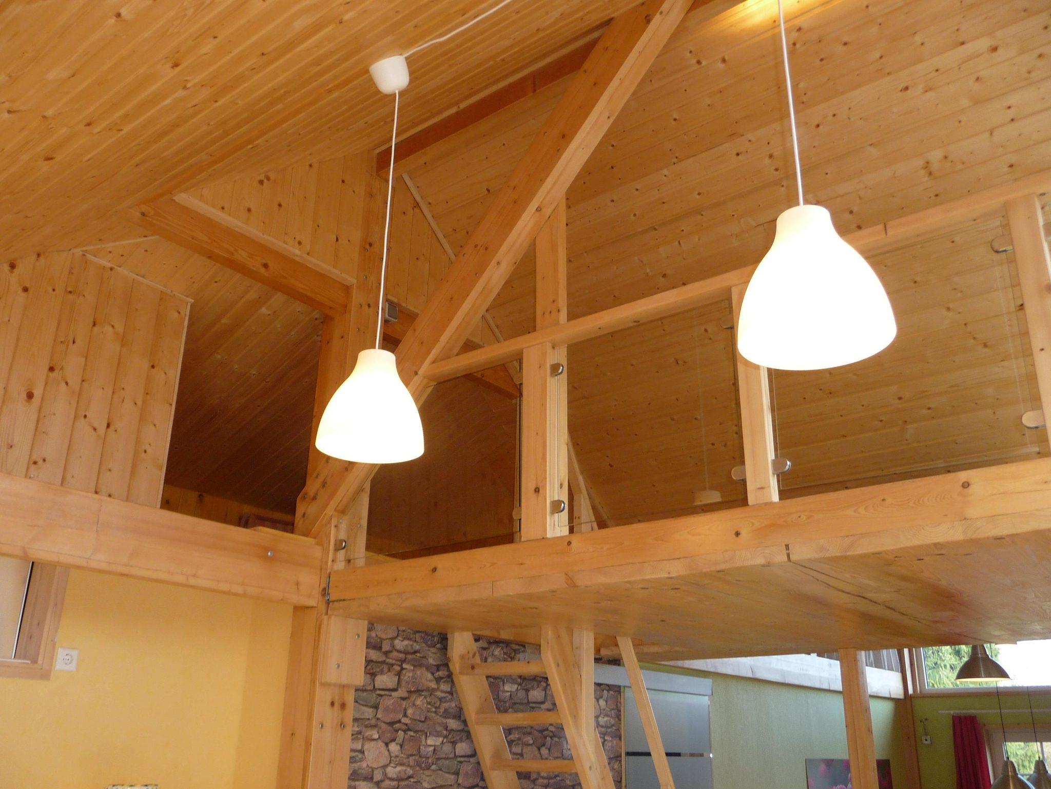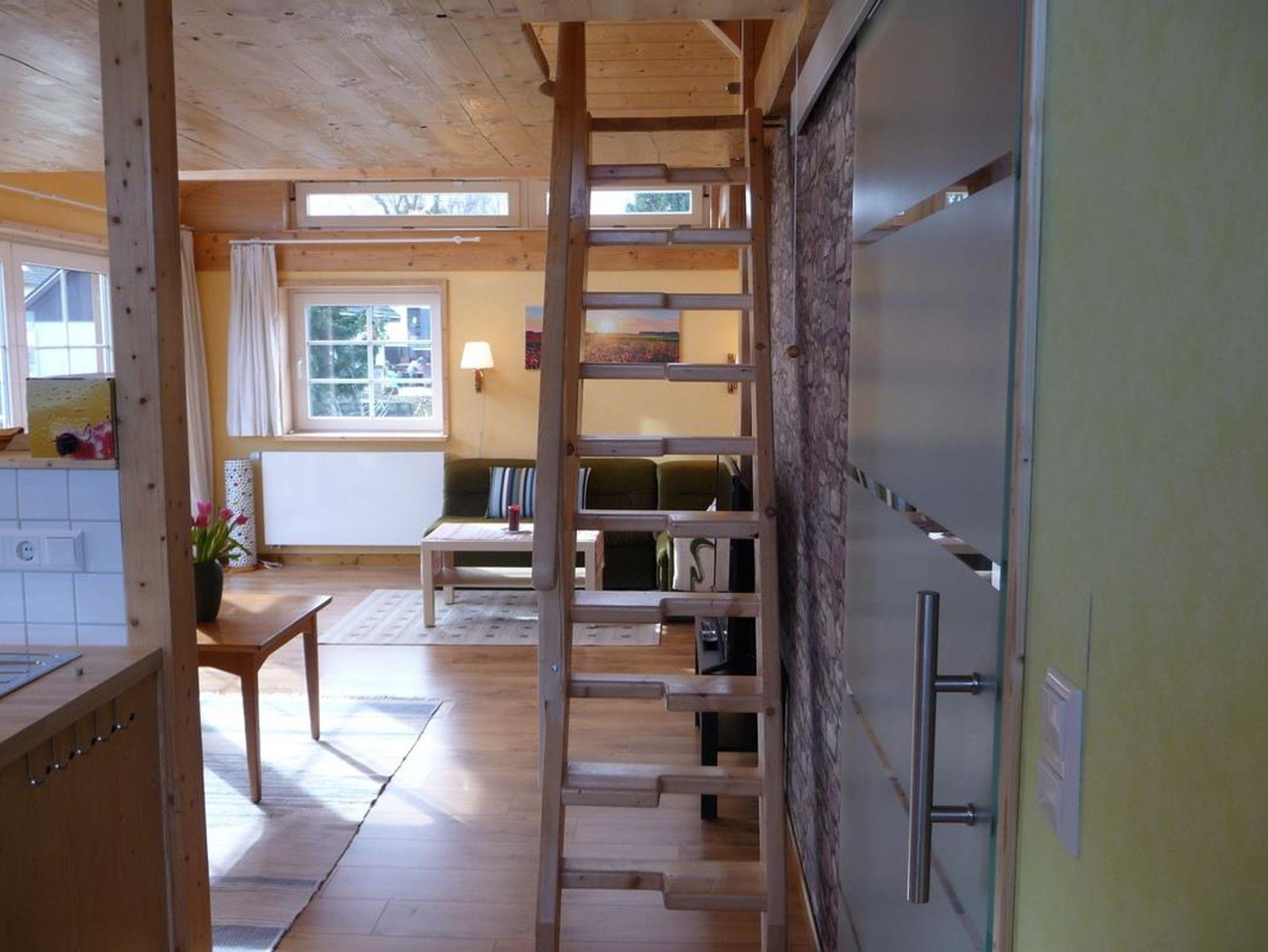 Das moderne, gemütliche Ferienhaus in Holzbauweise liegt im Herzen des Westerwaldes 2km vom Mittelzentrum Dierdorf entfernt und verkehrsgünstig zur 7 km entfernten Autobahn A3. Das 2017 fertiggestellte Ferienhaus auf 90 Quadratmetern thront, auf dicken Holzpfeilern gebaut, hoch über dem Garten. Mit viel Holz außen und innen strahlt das lichtdurchflutete Haus Wärme und Behaglichkeit aus. In der großzügigen und offenen Bauweise kann man sich mit bis zu acht Personen bequem aufhalten, aber dennoch bleiben Rückzugsmöglichkeiten hinter der Wohntheke, auf der Empore oder der Koje überm Wohnzimmer, die man über eine keine Holztreppe erreicht. Das separarte Schlafzimmer bietet ohnehin Entspannungsmöglichkeiten, da es zur Gartenseite und völlig ruhig gelegen ist. In der Wohnküche ist viel Platz zum Kochen. Der große Esstisch lässt sich auf drei Meter Länge ausziehen. Der neun Quadratmeter große Balkon ist nach Süden ausgerichtet und bietet durch die Holzverkleidung der Brüstung entsprechenden Sichtschutz. Dennoch schaut man auf das Grün des Gartens. Im Winter wärmt die Sonne das Haus über die lange Südseite mit den großen Fenstern. Im heißen Sommer spenden die umstehenden Bäume den nötigen Schatten. Kurzum: Im Sommer sind die Räume kühl und durchlüftet, im Winter behaglich warm. Wir betreiben eine kleine Imkerei und Süßmosterei, wovon zwei Bienenstöcke im Garten stehen zur Bestäubung unserer Obstbäume. Den Honig und den Apfelsaft von westerwälder Streuobstwiesen können Sie bei uns immer frisch erwerben.