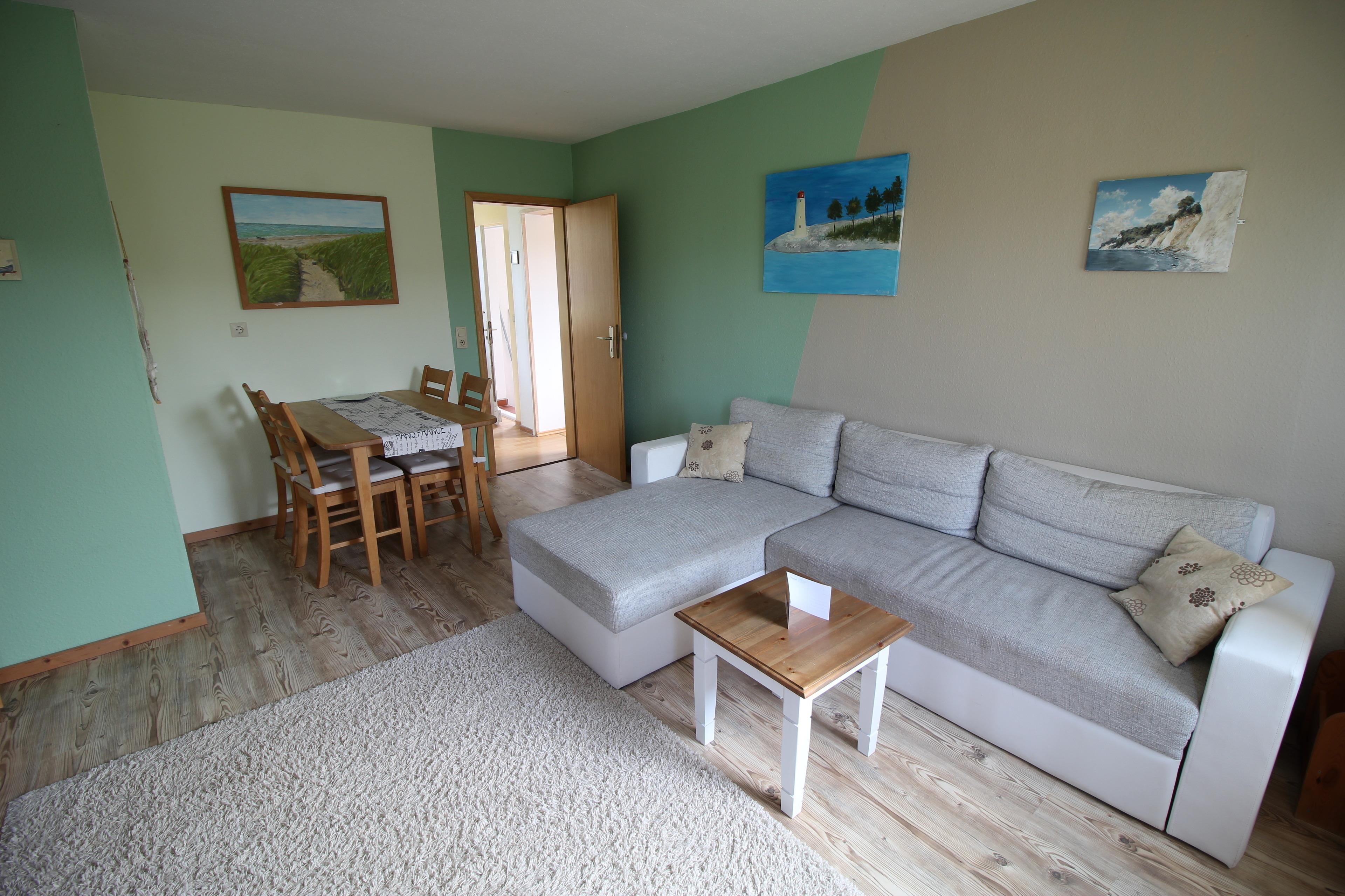 Wohnbereich: In dem gemütlich eingerichteten Wohnraum befindet sich ein Essplatz für 4 Personen, ein SAT-TV und noch eine ausziehbare Schlafcouch für weitere 2 Personen.