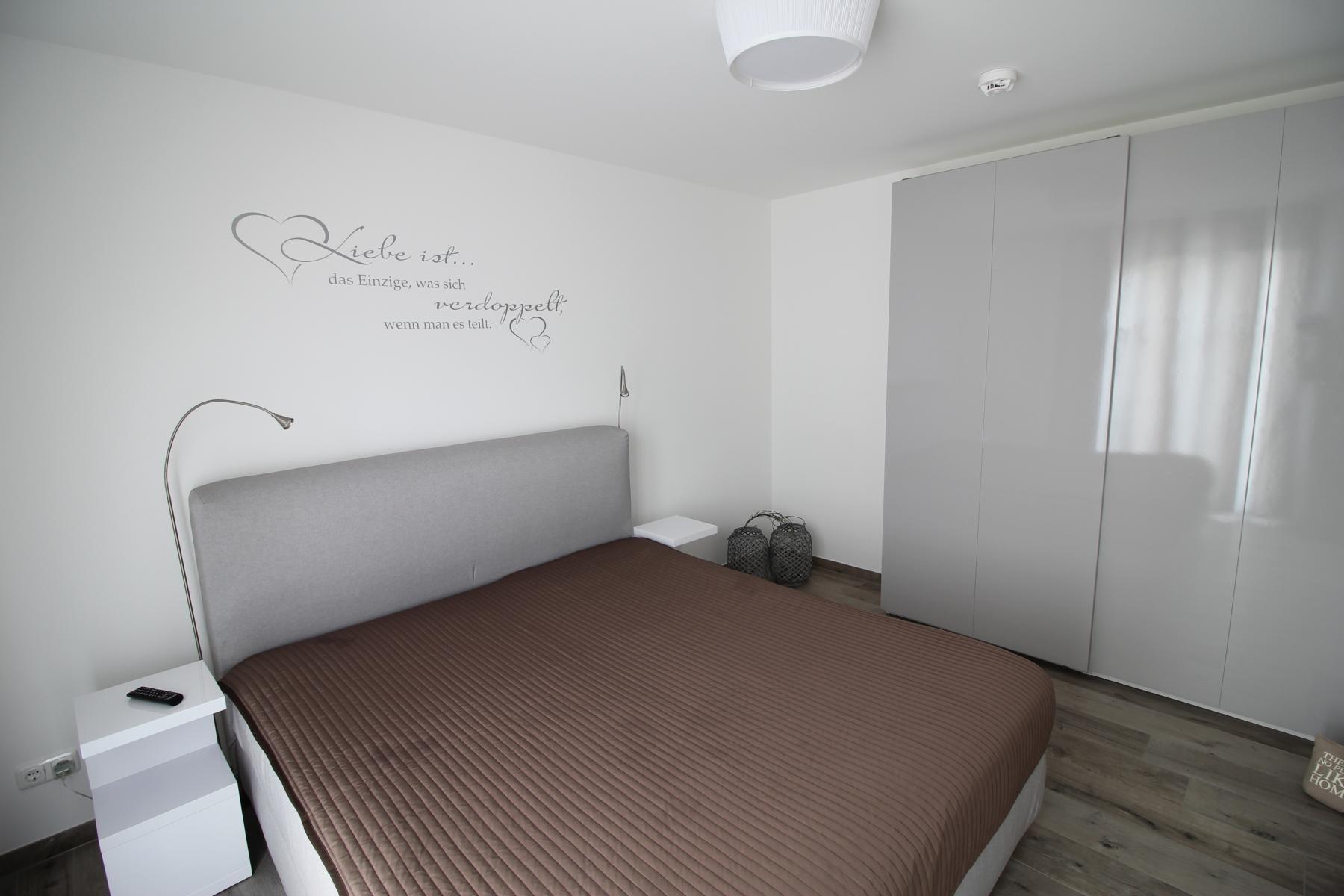 - ein stillvolles Schlafzimmer mit Doppelbett und 43 Zoll SAT-TV