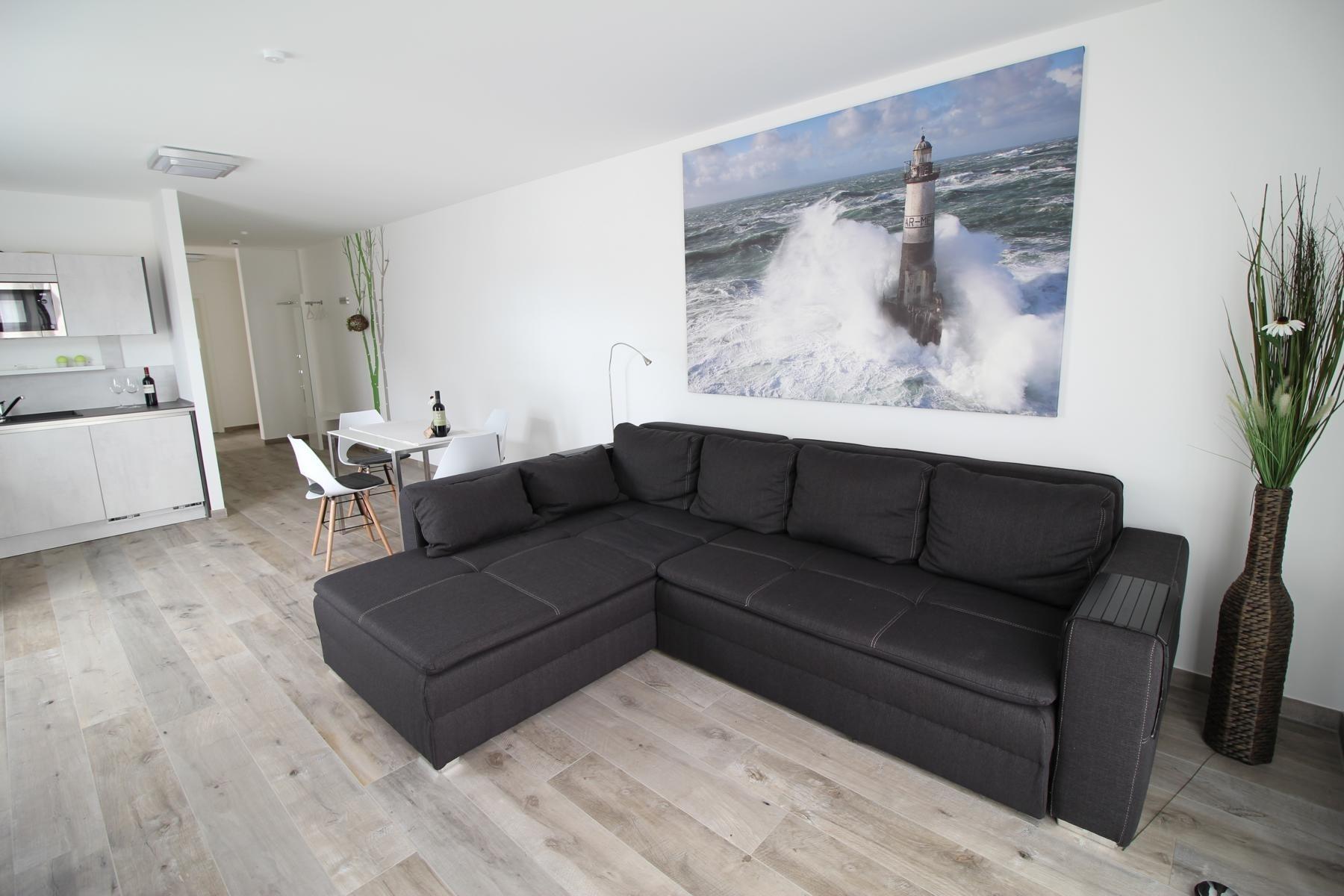 - ein großes Wohnzimmer mit 55 Zoll SAT-TV und großer Eckcouch ( mit Schlaffunktion )