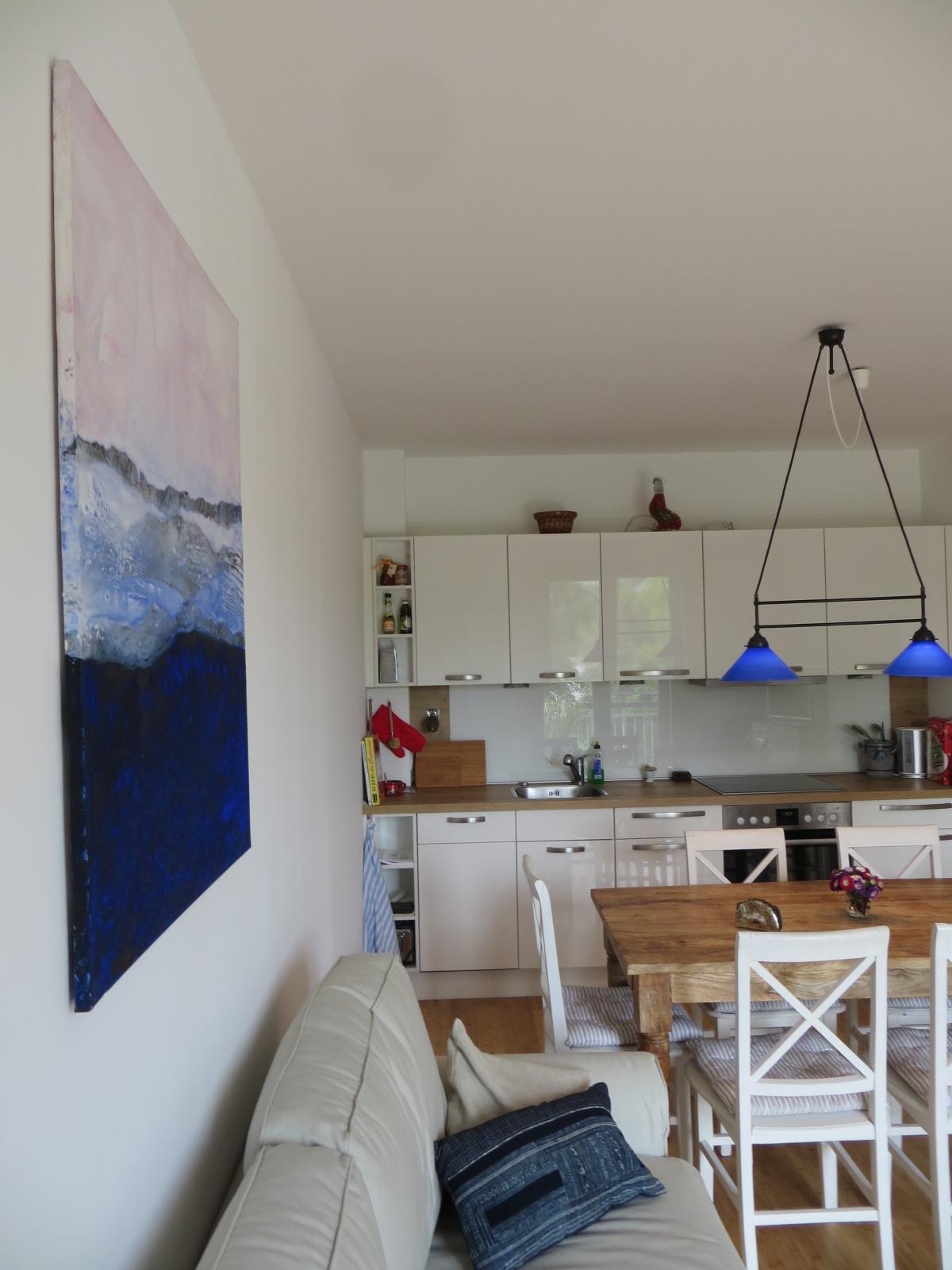 Sie ist im französisch-italienischen Landhausstil mit viel Liebe zum Detail eingerichtet. Einige Originalgemälde geben der Wohnung ein besonderes Flair.