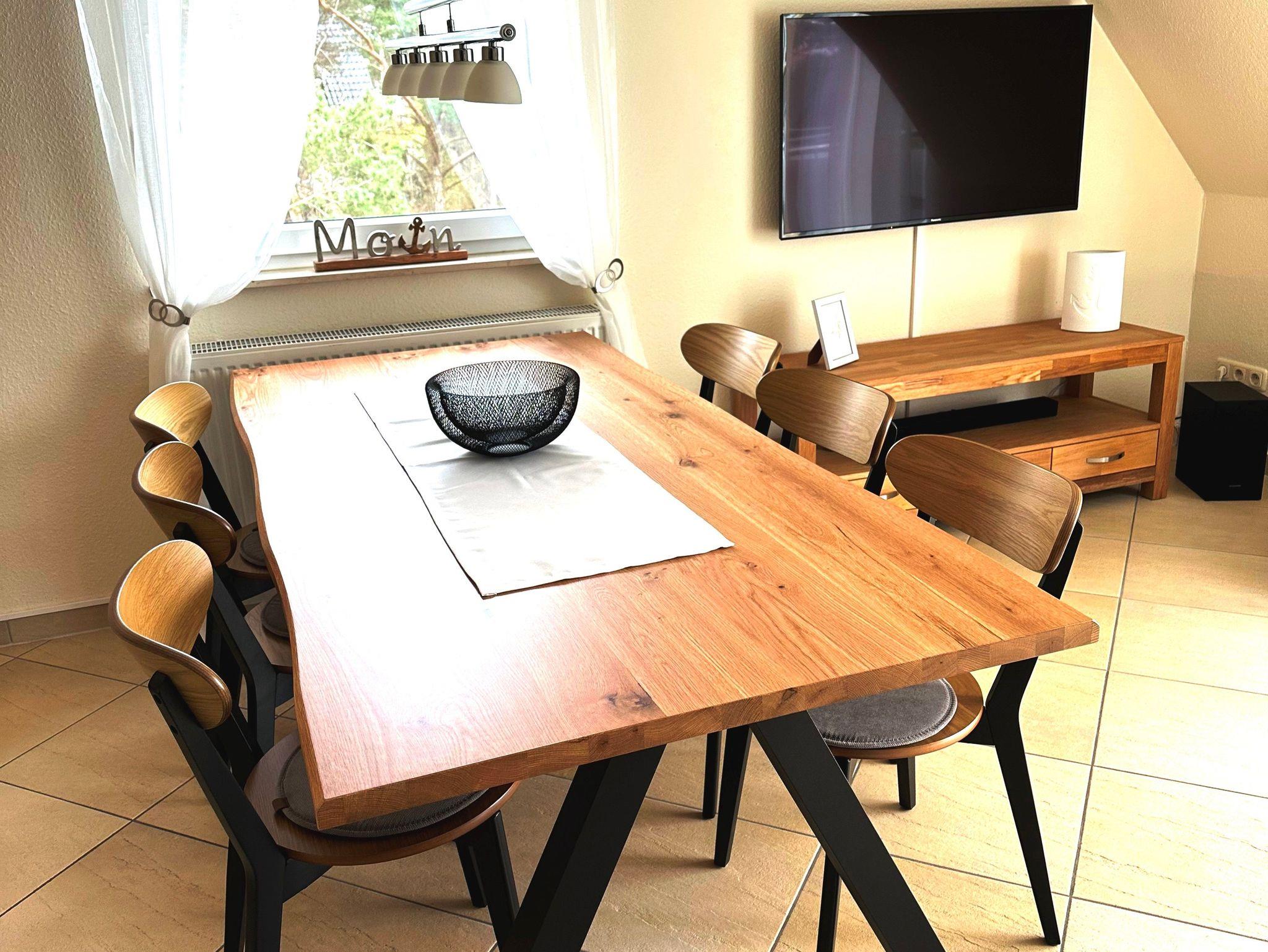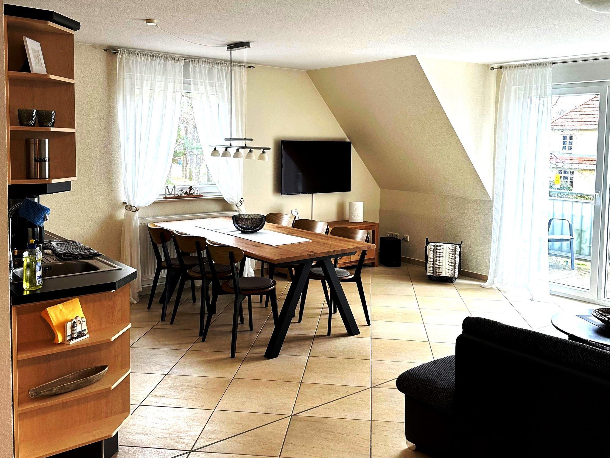 • Räume und Einrichtung: Es erwartet Sie ein Sonnenlicht durchflutetes 3 Raum Appartement mit gemütlicher Sitzecke (als Schlafsofa nutzbar) und einem einladenden Essbereich für 6 Personen. Herz der Wohnung ist der große Wohnraum mit integrierter und hochwertiger Einbauküche.